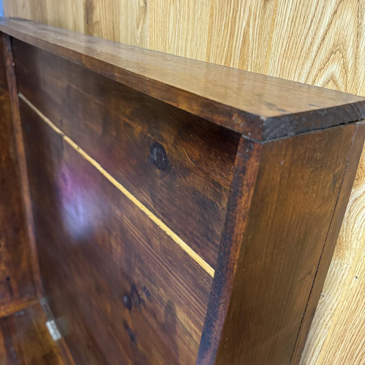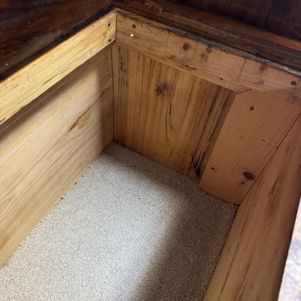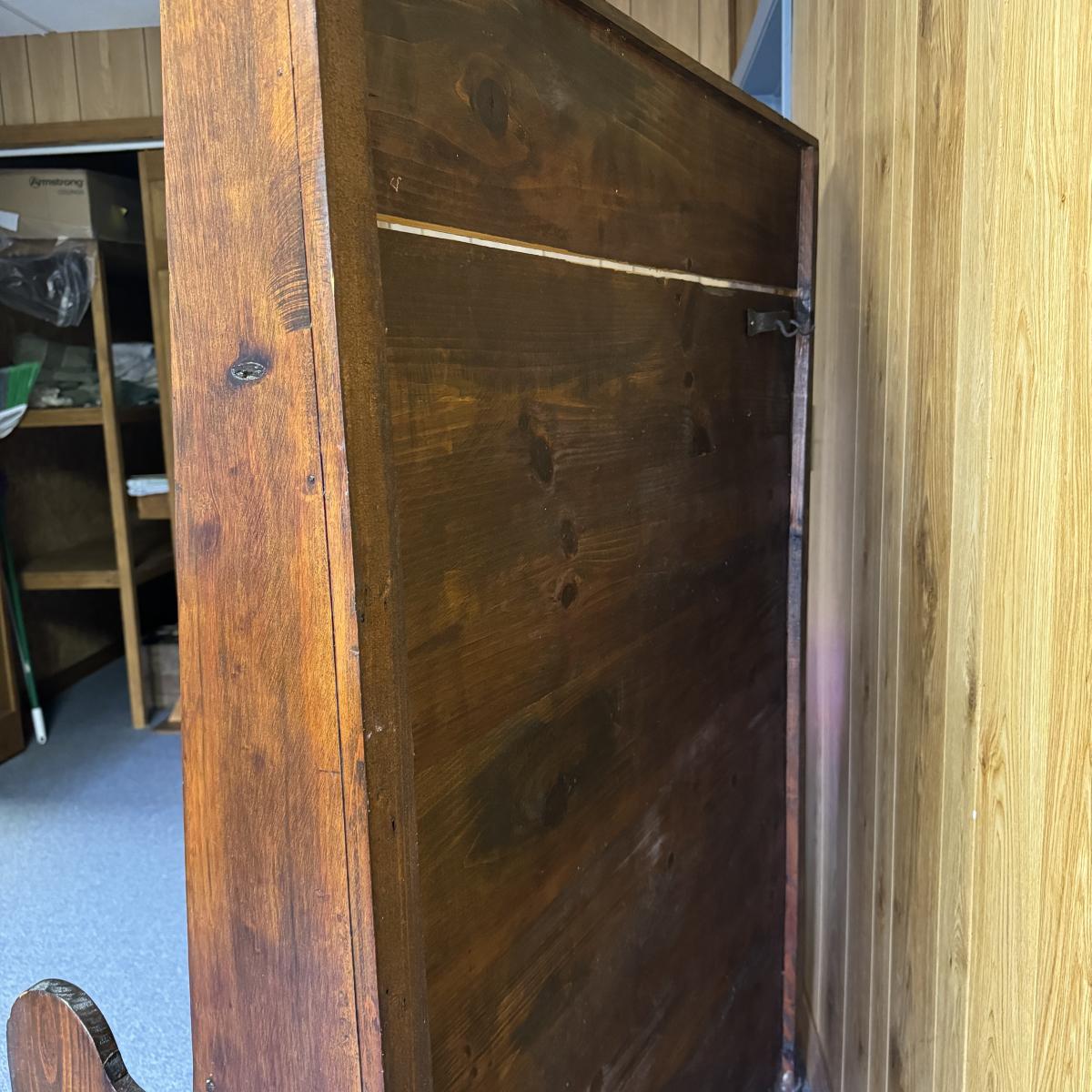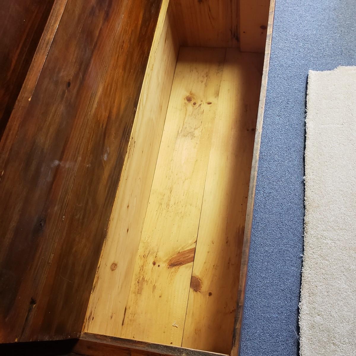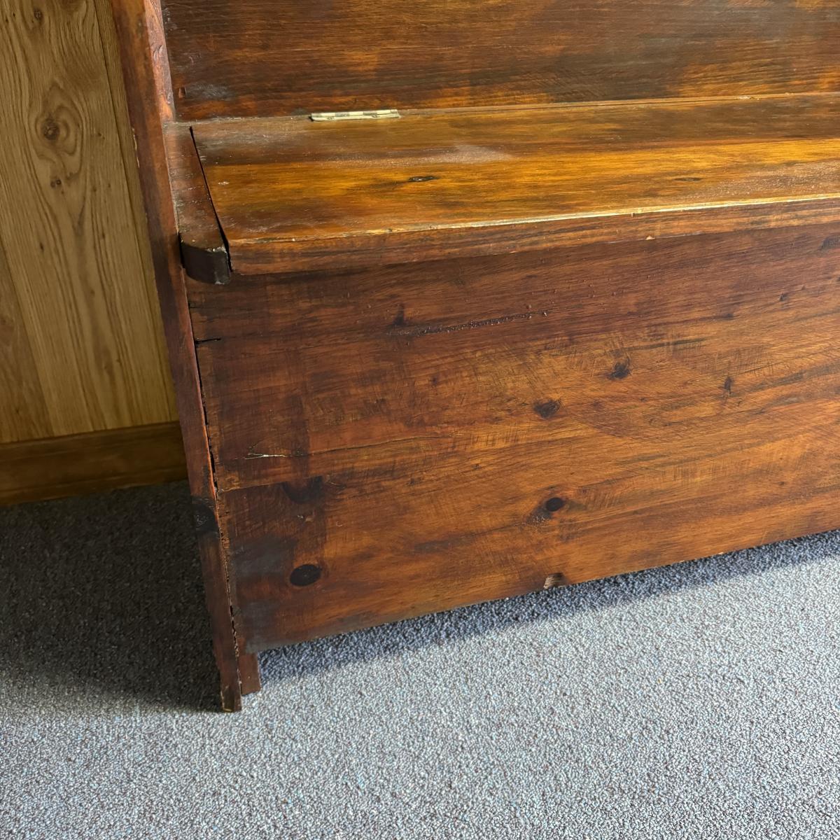 Wooden hall storage bench. Has a tall back that could hold jackets and backpacks IF you add hooks. Seat opens to a nice large storage area that has a removable piece of carpet, see pictures. The back has a split in the wood that goes all the way across. On the back of the piece you will find a metal piece with two hooks attached. Piece measures 47” x 18” x 65” H. Bench seat height is 20”. Local pick up only. Winning bidder must bring assistance to help move and load this item due to its weight and/or size, as you will need to move it up a flight of stairs.