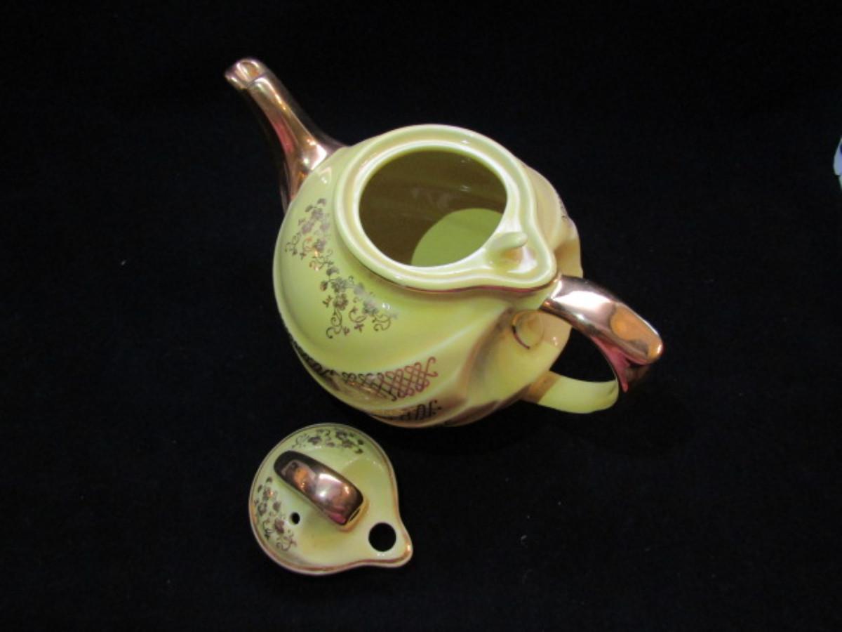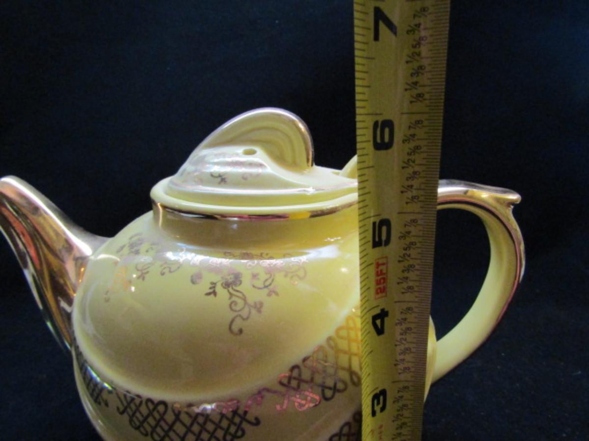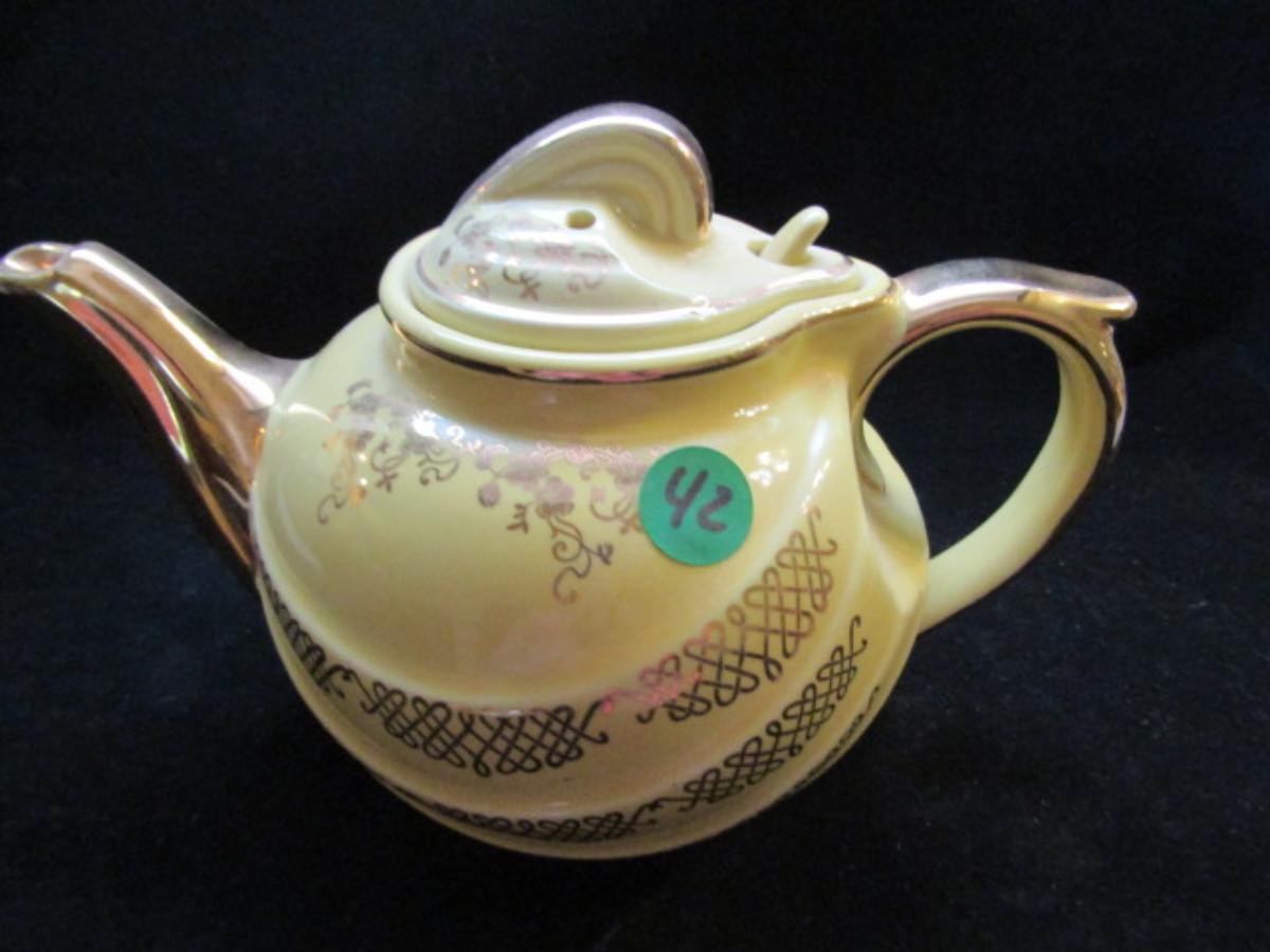 Hall Teapot- Yellow and Gold Parade Style- 6 Cup with Hook Lid  (#42)