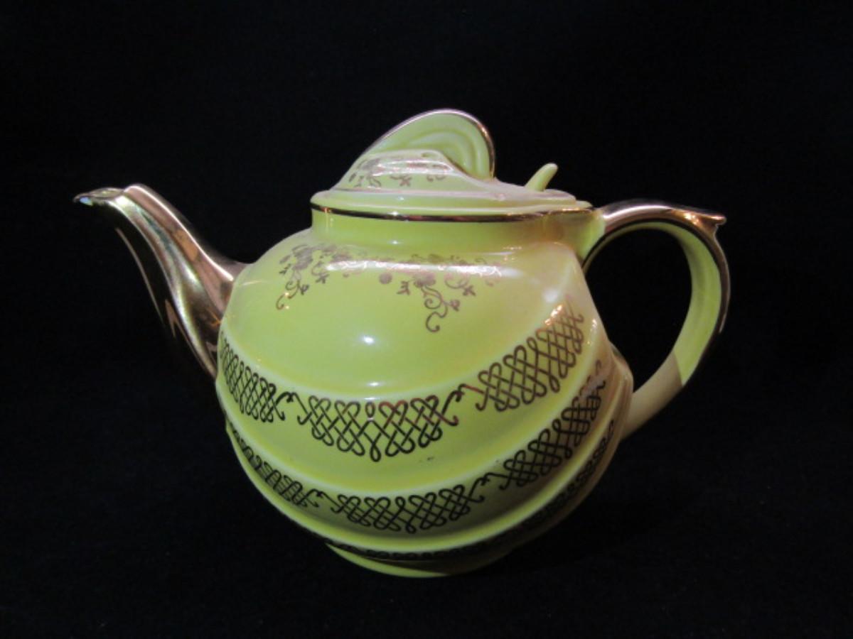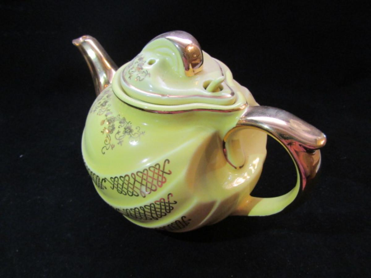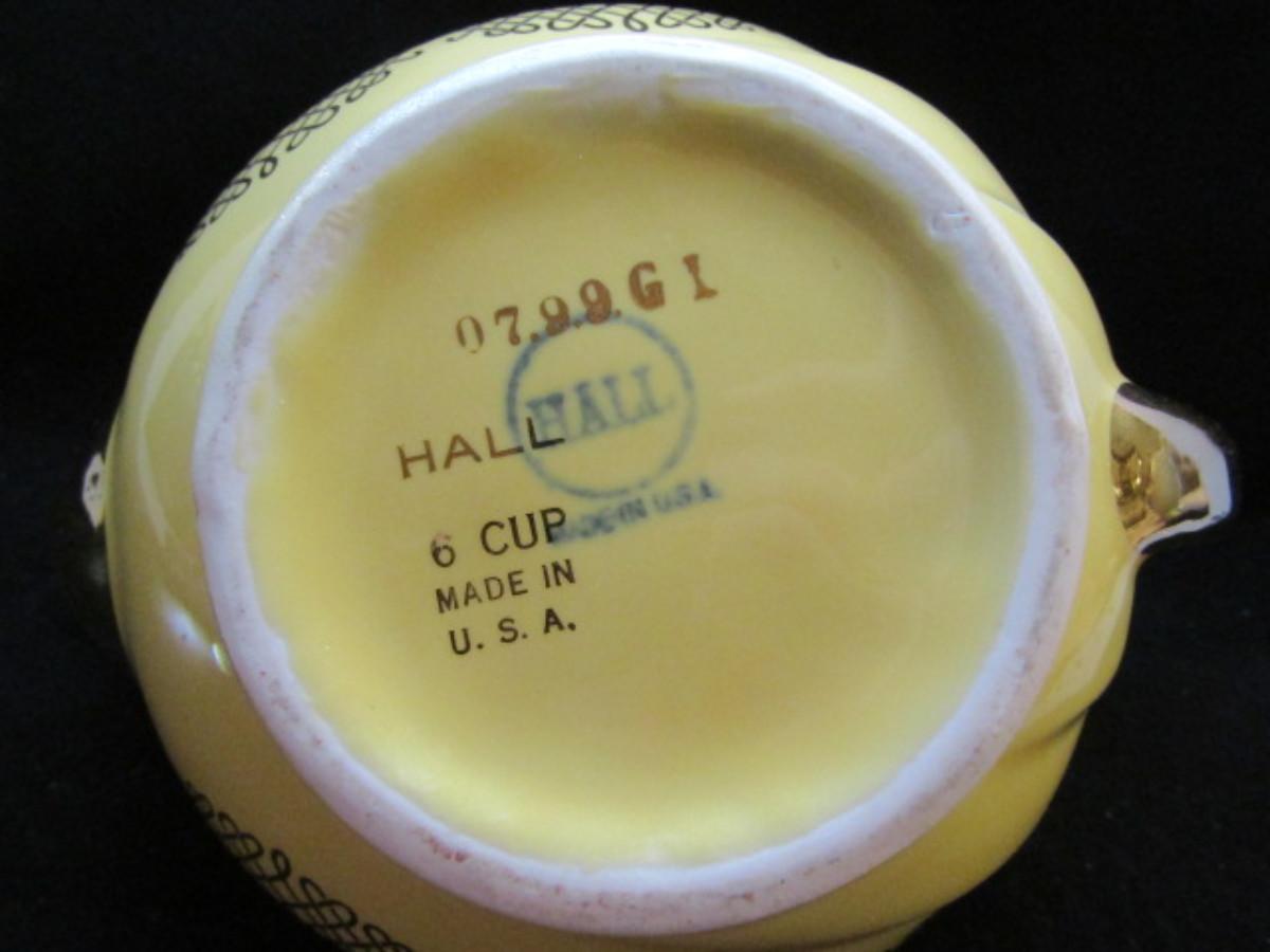 Hall Teapot- Yellow and Gold Parade Style- 6 Cup with Hook Lid (#42)