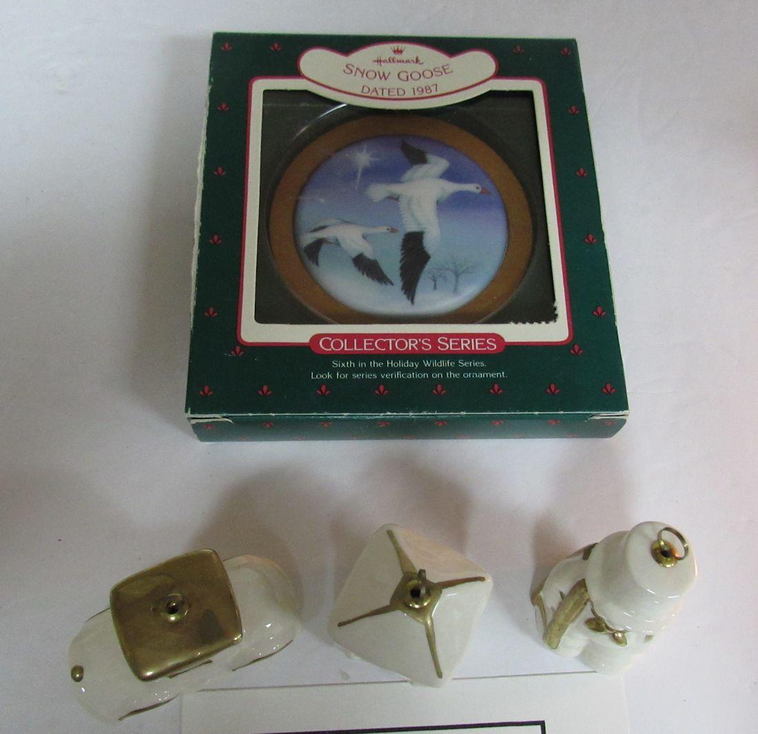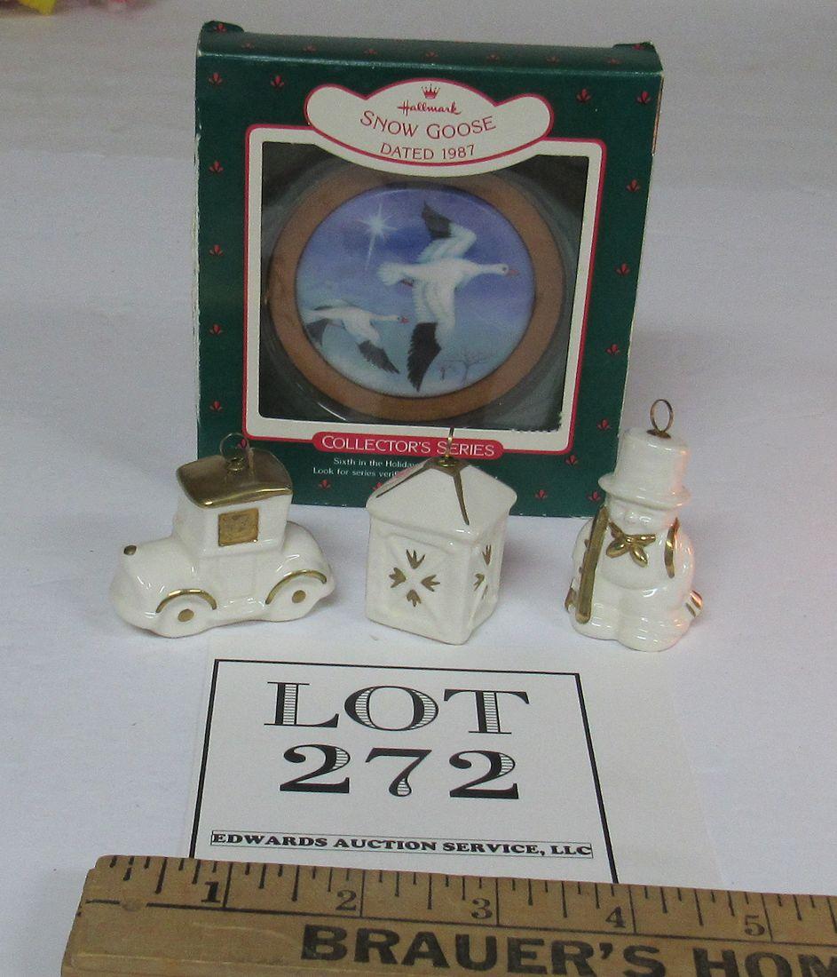 Hallmark 1987 Snow Goose Ornament and 3 Small Goebel China Christmas Ornaments