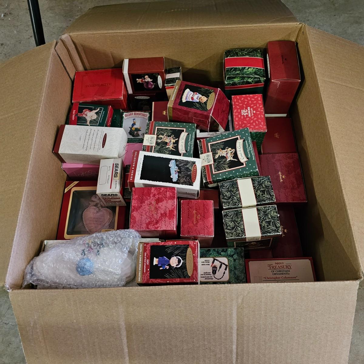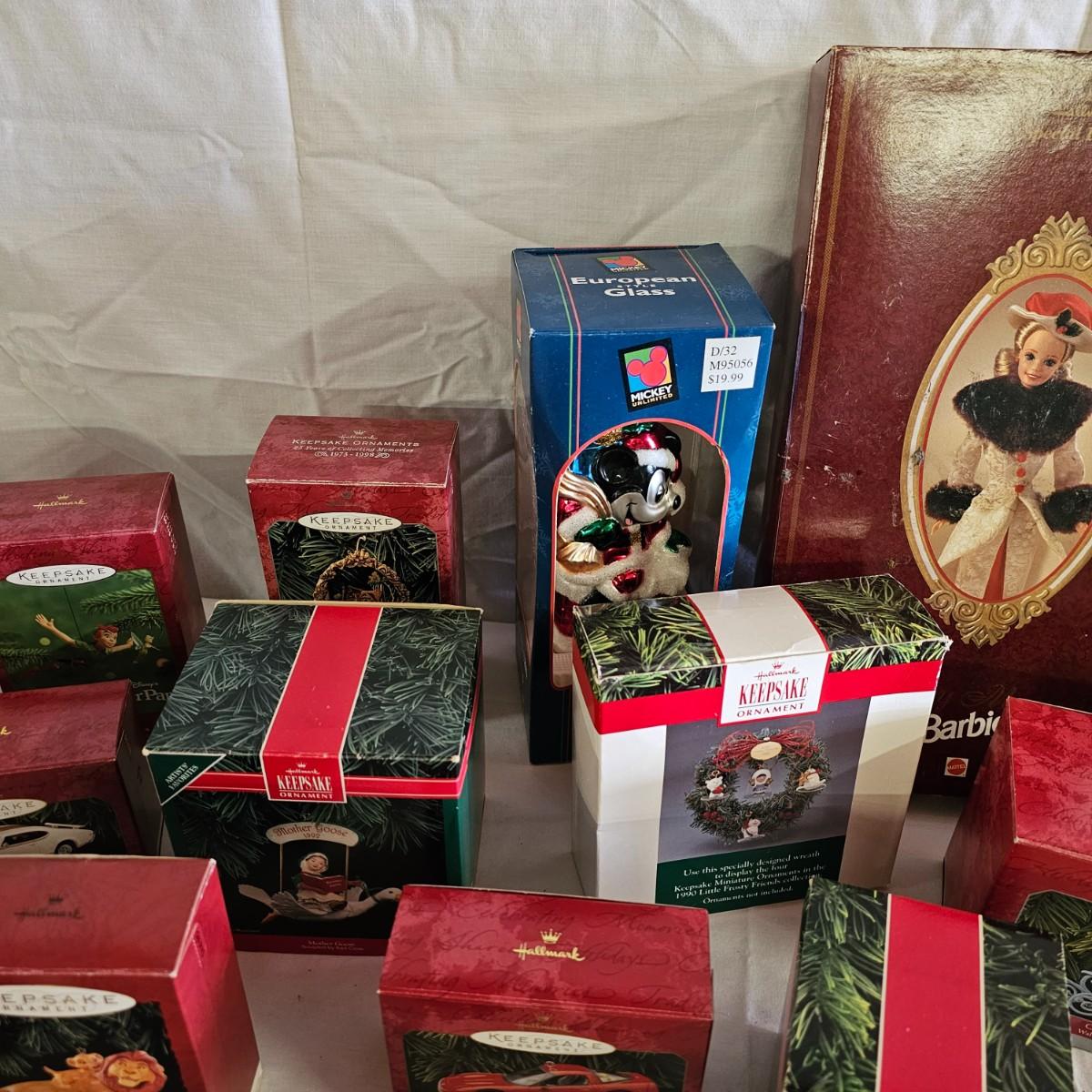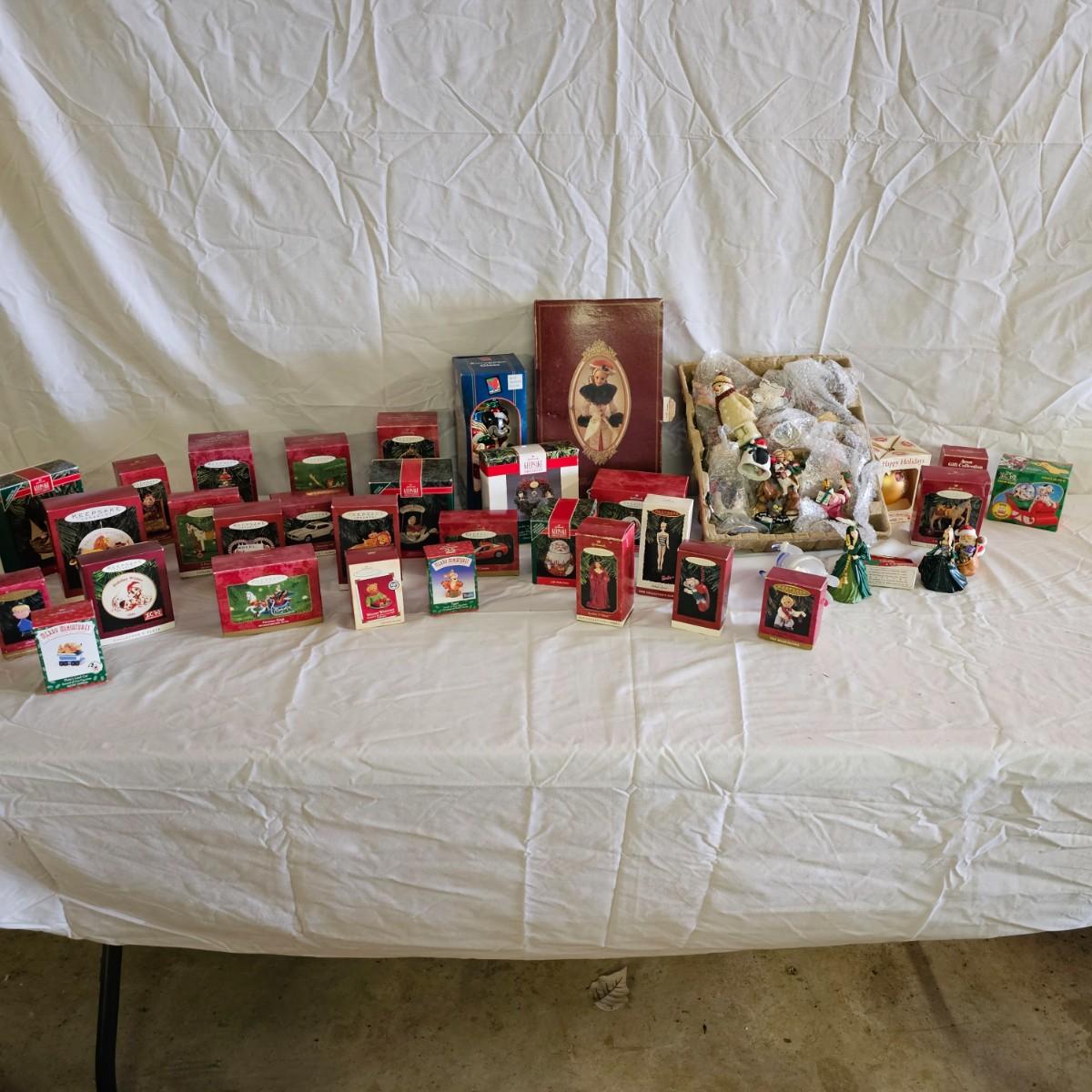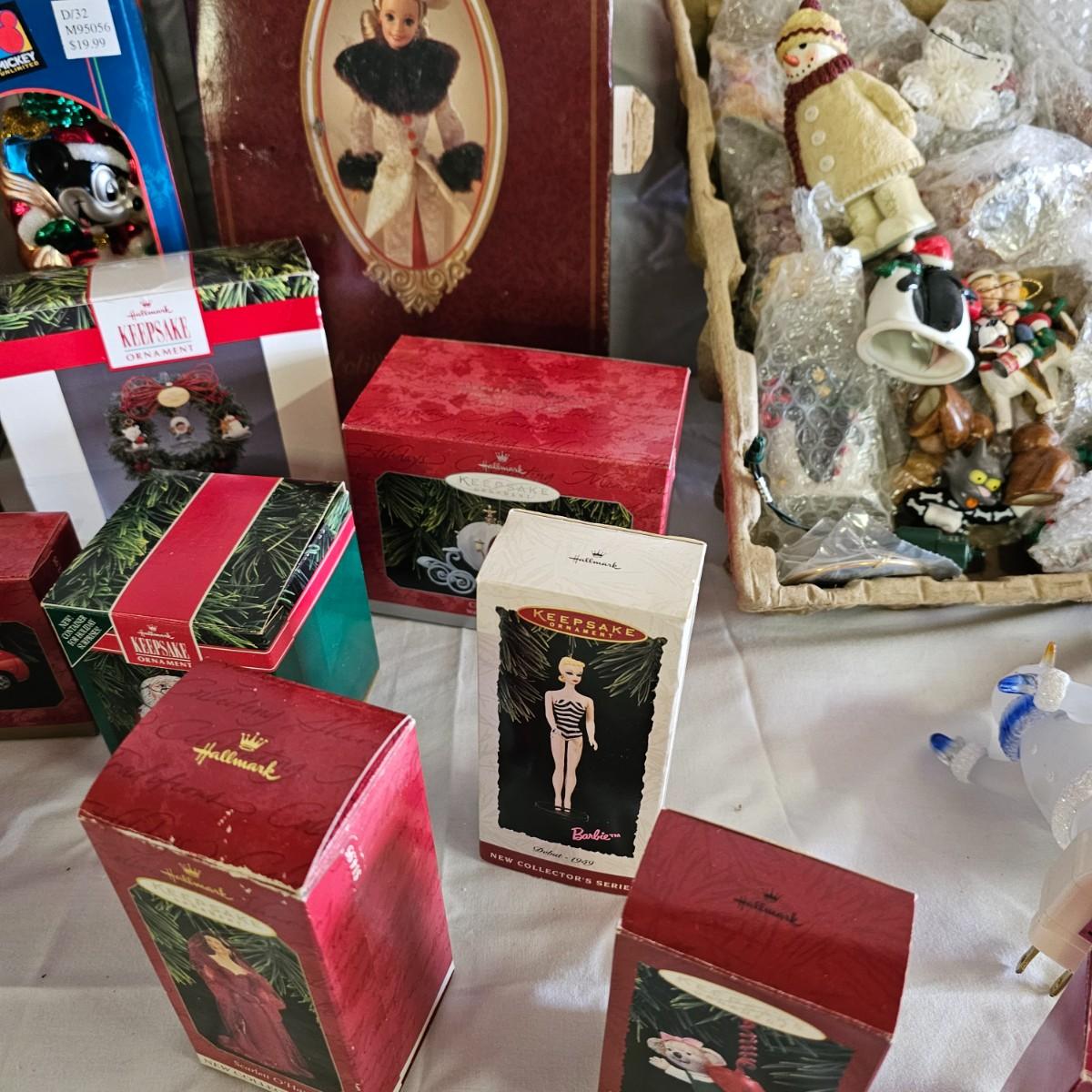 A collectors treasure trove of ornaments. Disney, Barbie, Peanuts, Lion King to mentionba few. Most ornaments in original boxes. More than seventy-five items here. See photos for details. Shipping available.