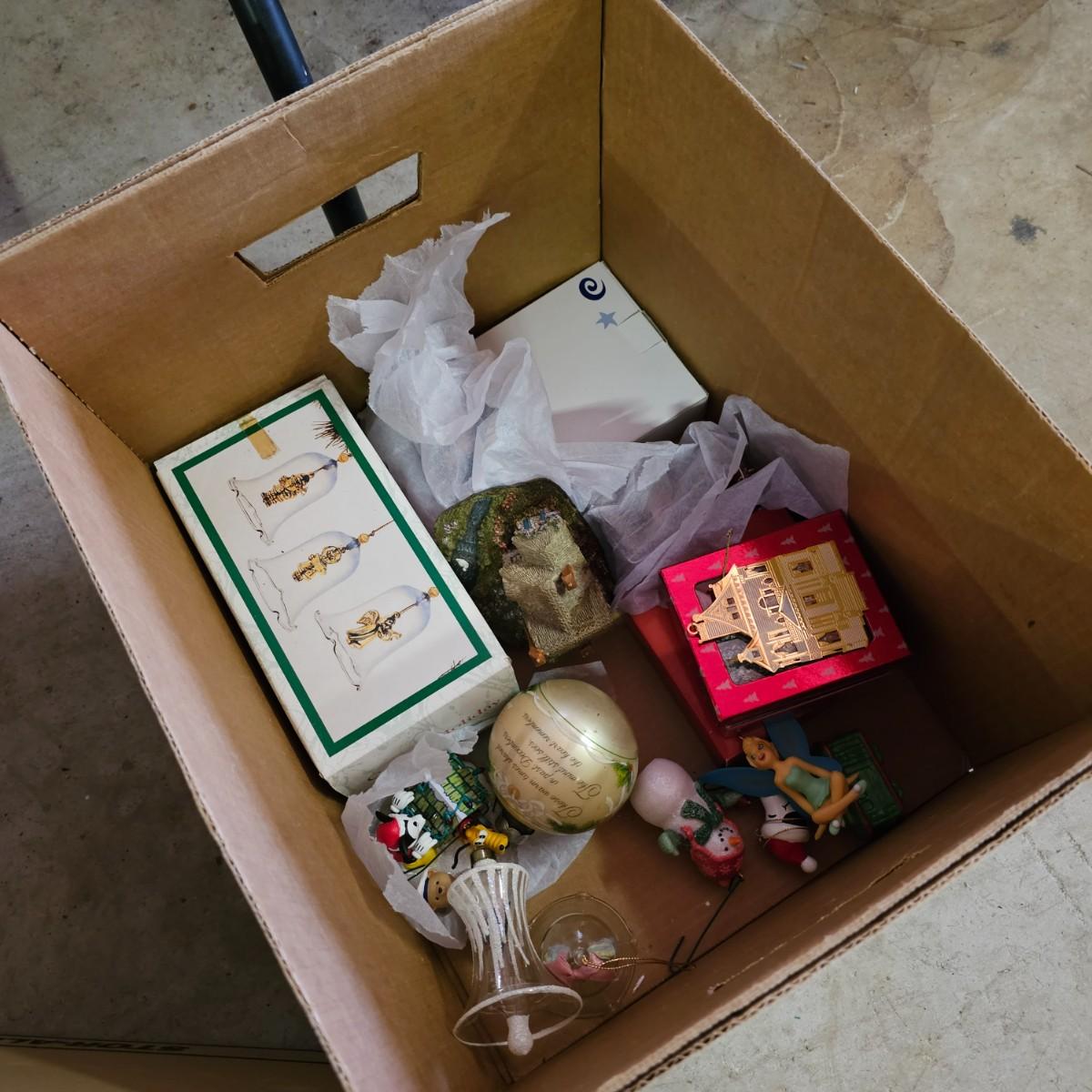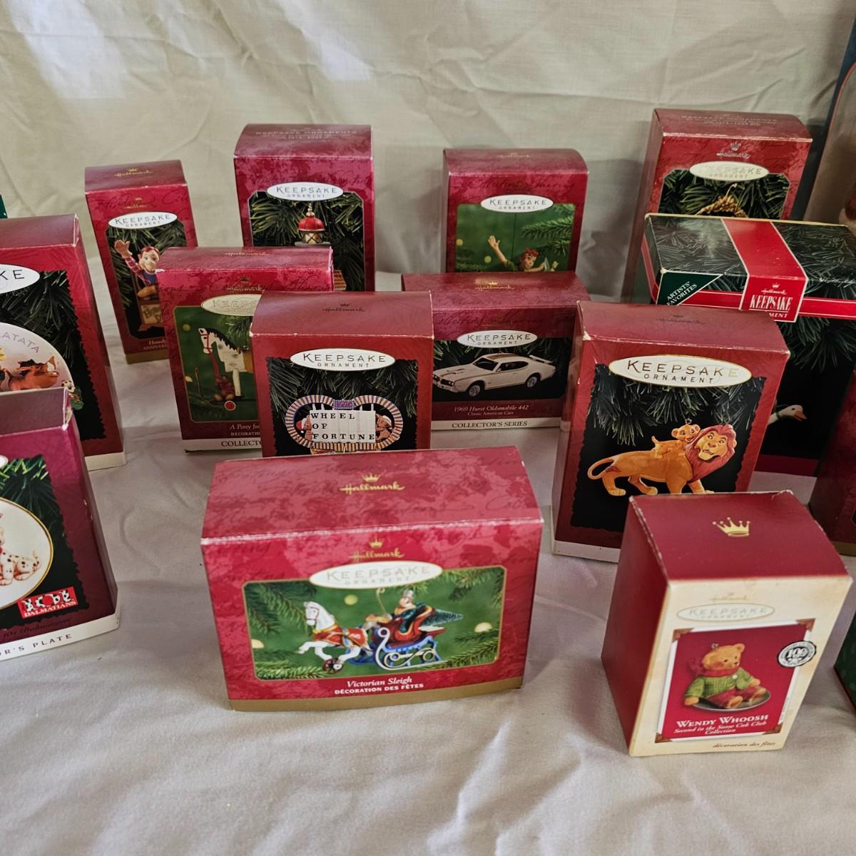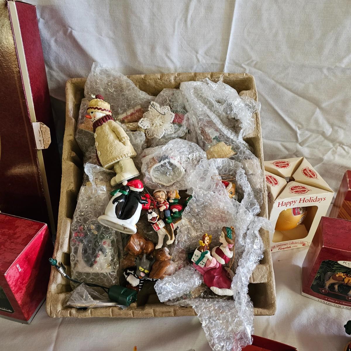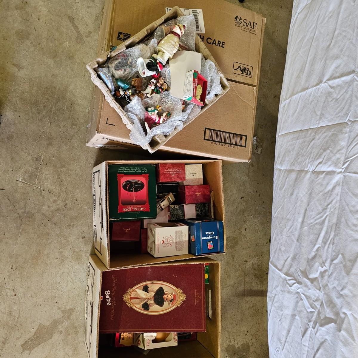 A collectors treasure trove of ornaments. Disney, Barbie, Peanuts, Lion King to mentionba few. Most ornaments in original boxes. More than seventy-five items here. See photos for details. Shipping available.