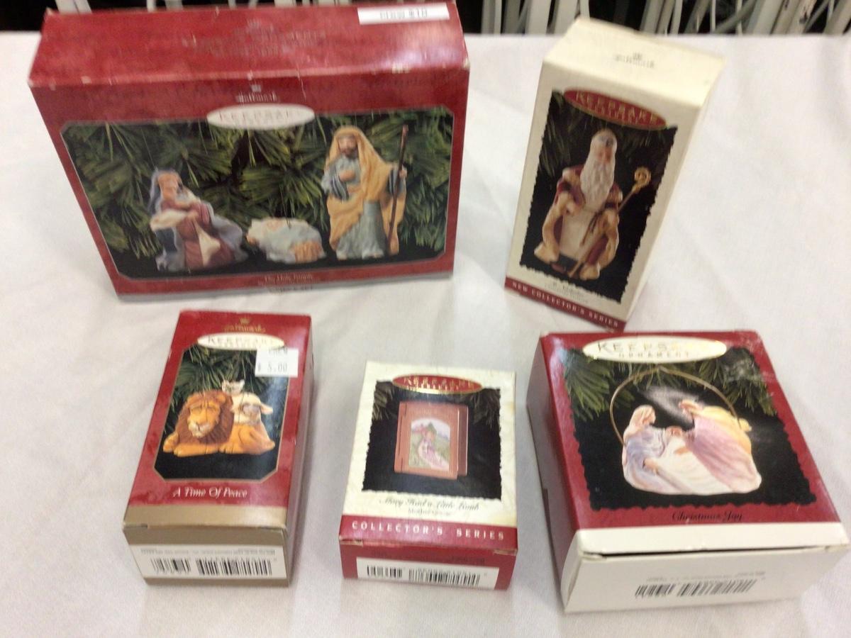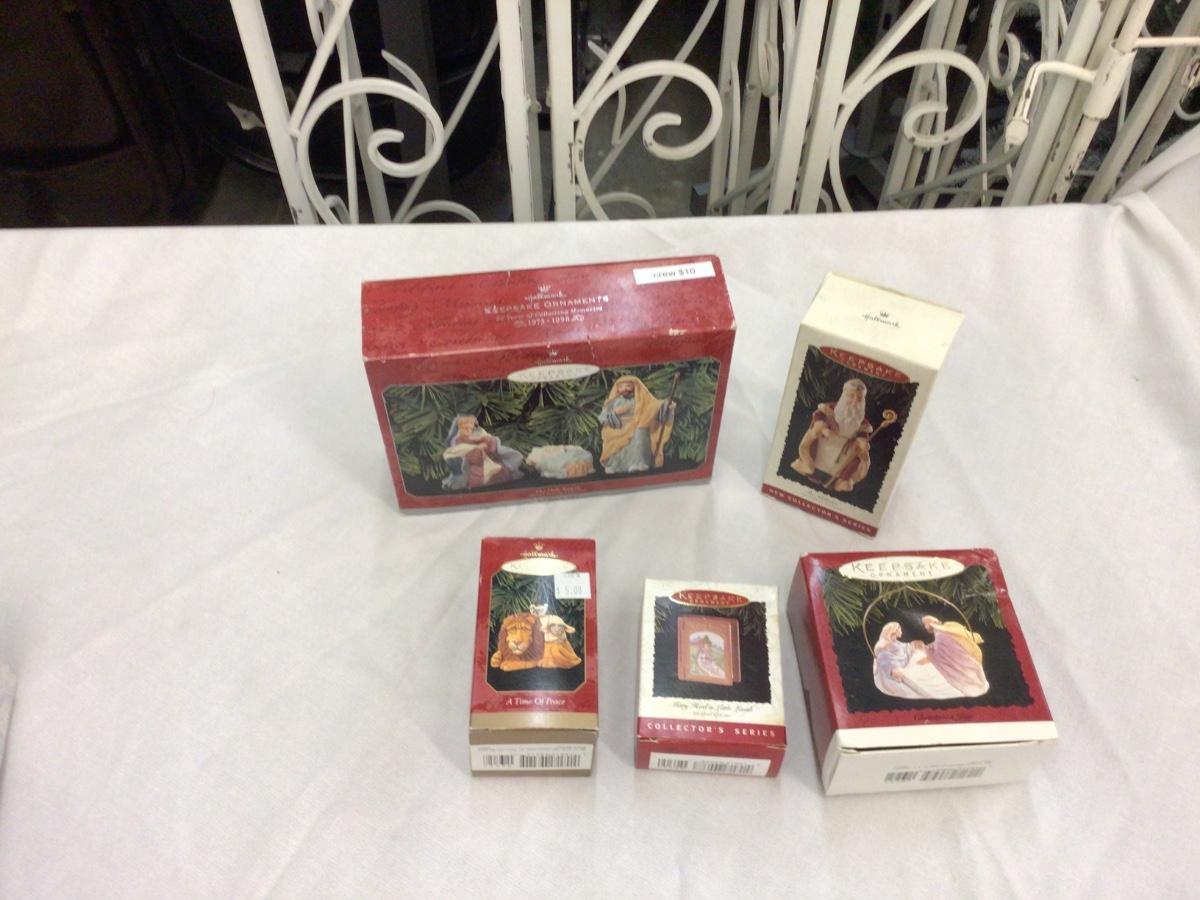 There are 5 Hallmark Christmas ornaments. You get nativity, lion, book, another nativity, King or Wiseman.