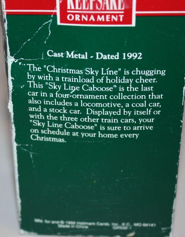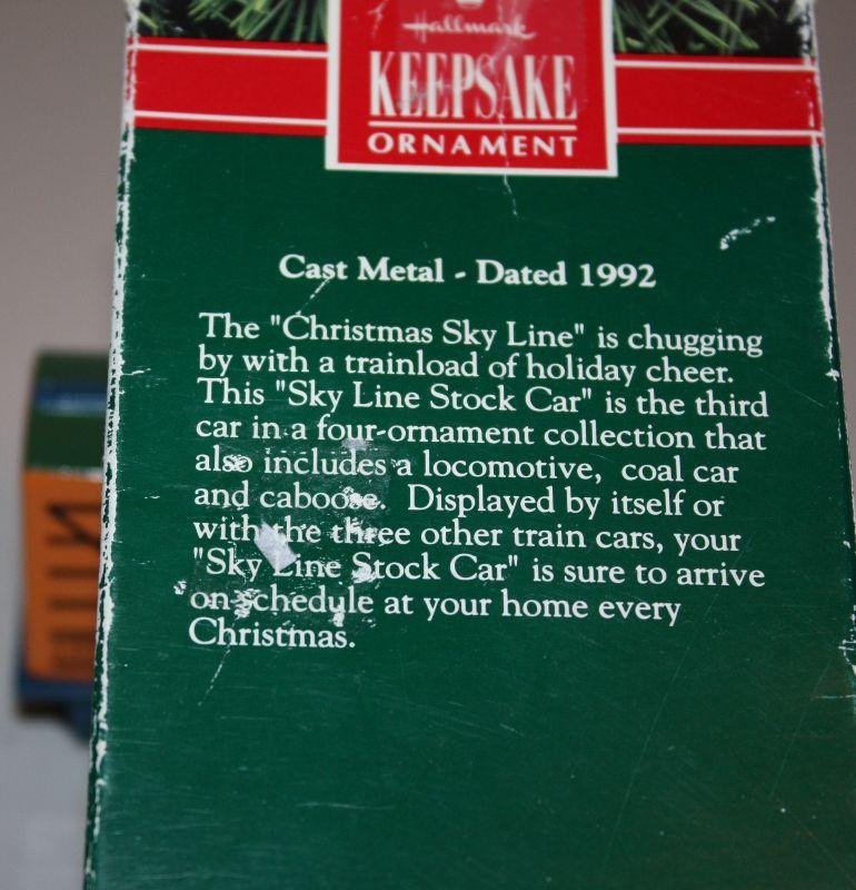 The Christmas Sky Line Stock car and Caboose dated 1992