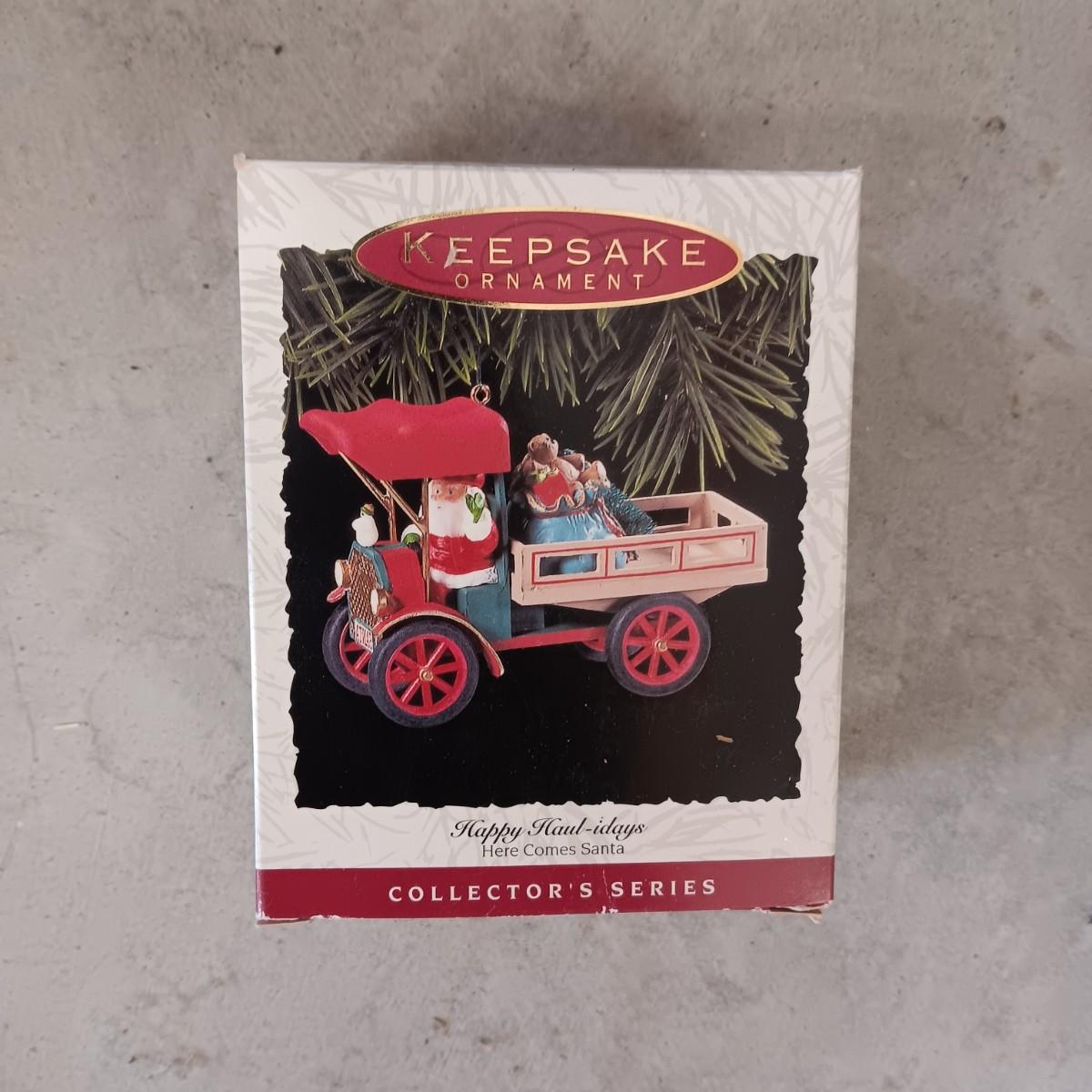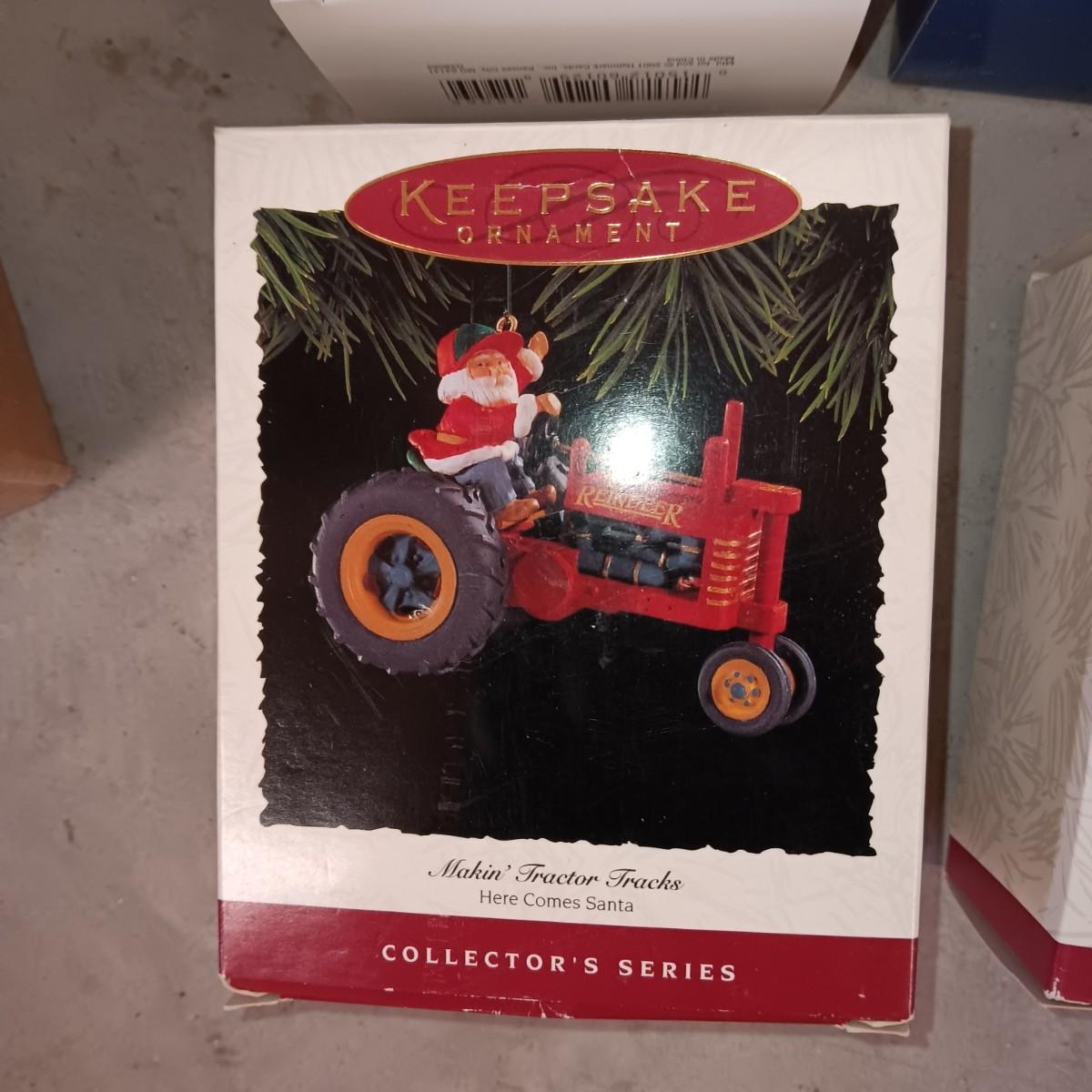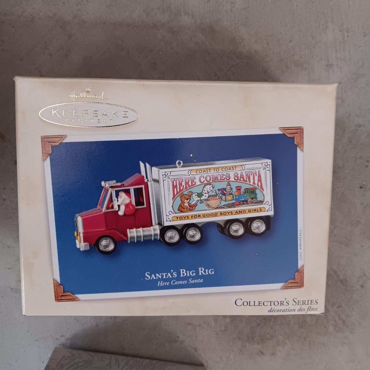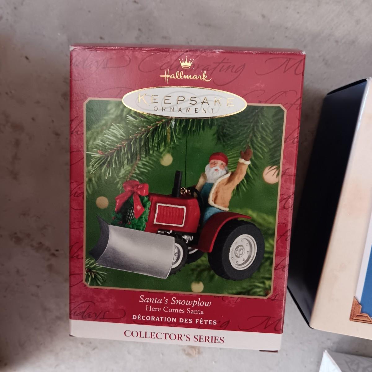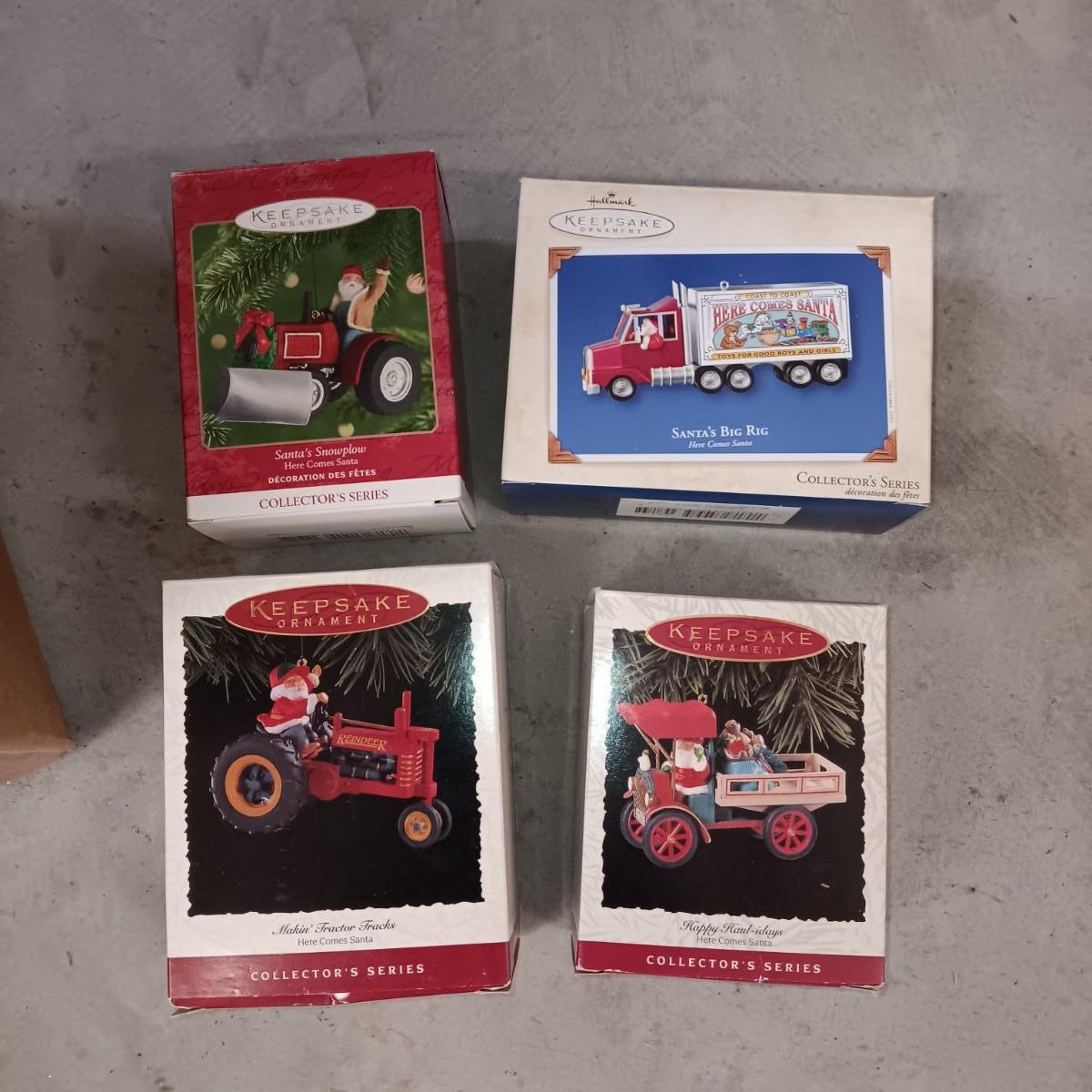 VINTAGE HALLMARK KEEPSAKE ORNAMENTS W/SANTA ON TRACTORS, SEMI AND TRUCK