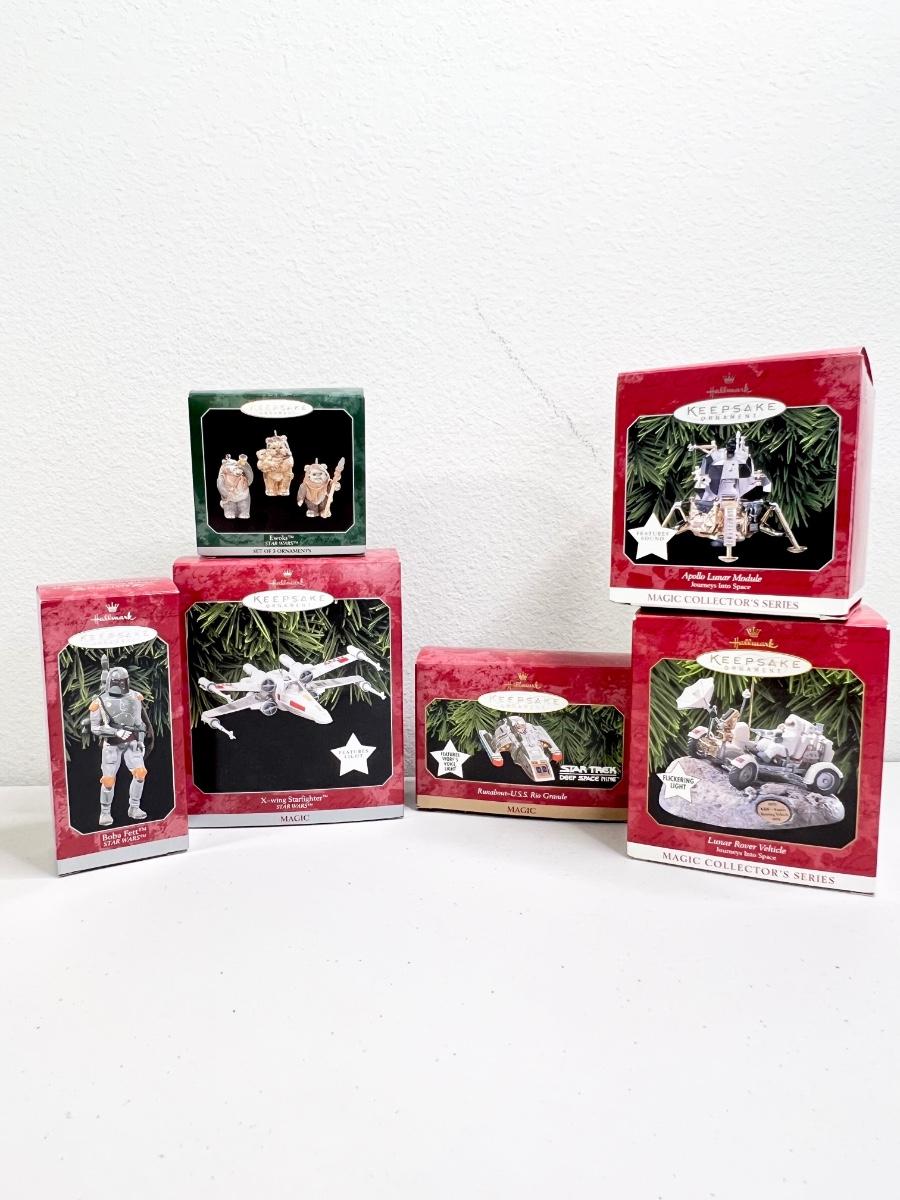 HALLMARK ~ Keepsake ~ Six (6) Assorted Christmas Ornaments ~ Star Wars, Star Trek, Journey's Into Space