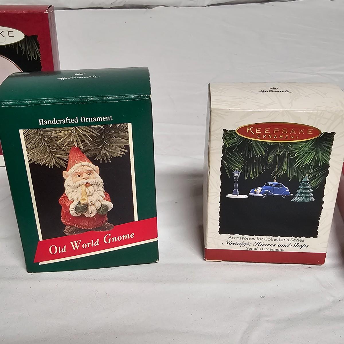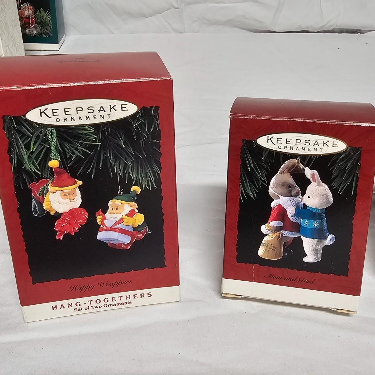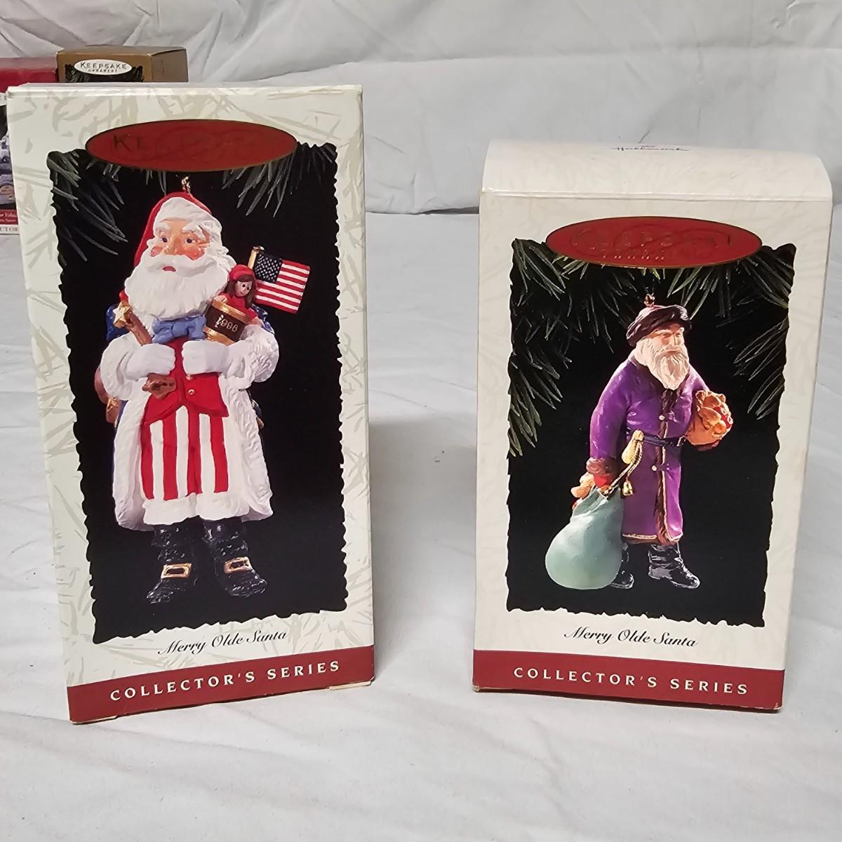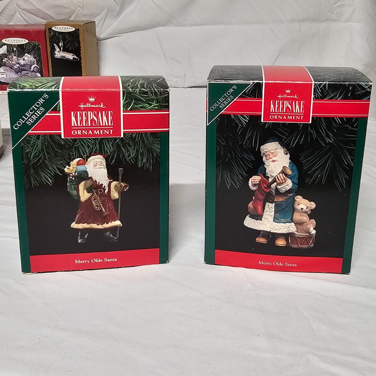Large assortment of Hallmark ornaments in original boxes. Covering several decades of collecting, this group includes some but not all of the Dickens Caroler Bells, the 12 Days of Christmas, Santa & His Reindeer (all 5), A Christmas Carol (all 5) and some of the Merry Olde Santa series. Also many singles in lots of other series. About 100 pieces total, boxes show some wear, some more than others. See photos for details. Local pickup only.