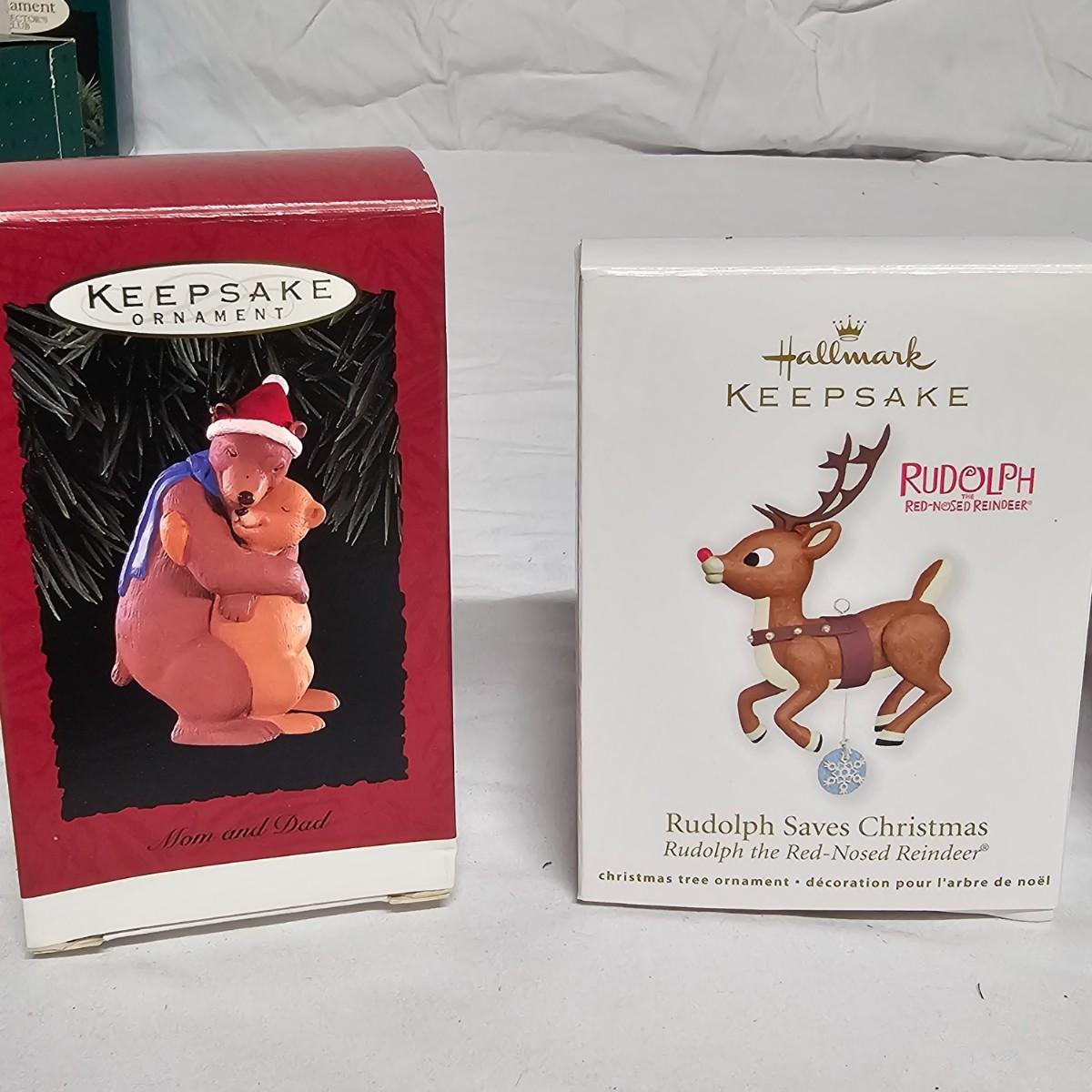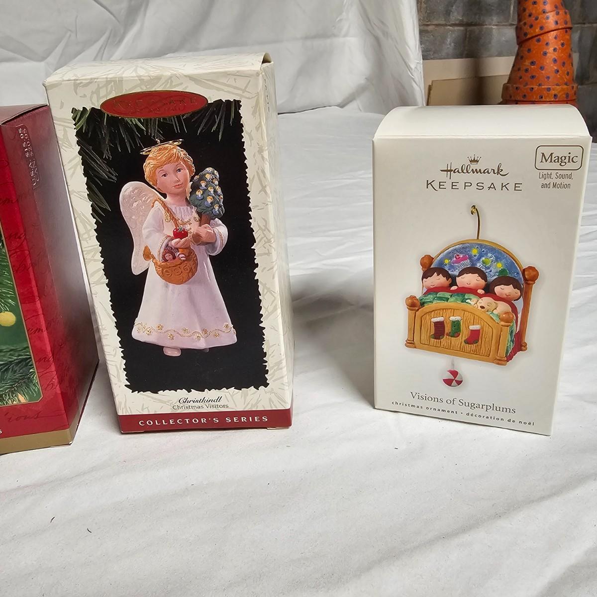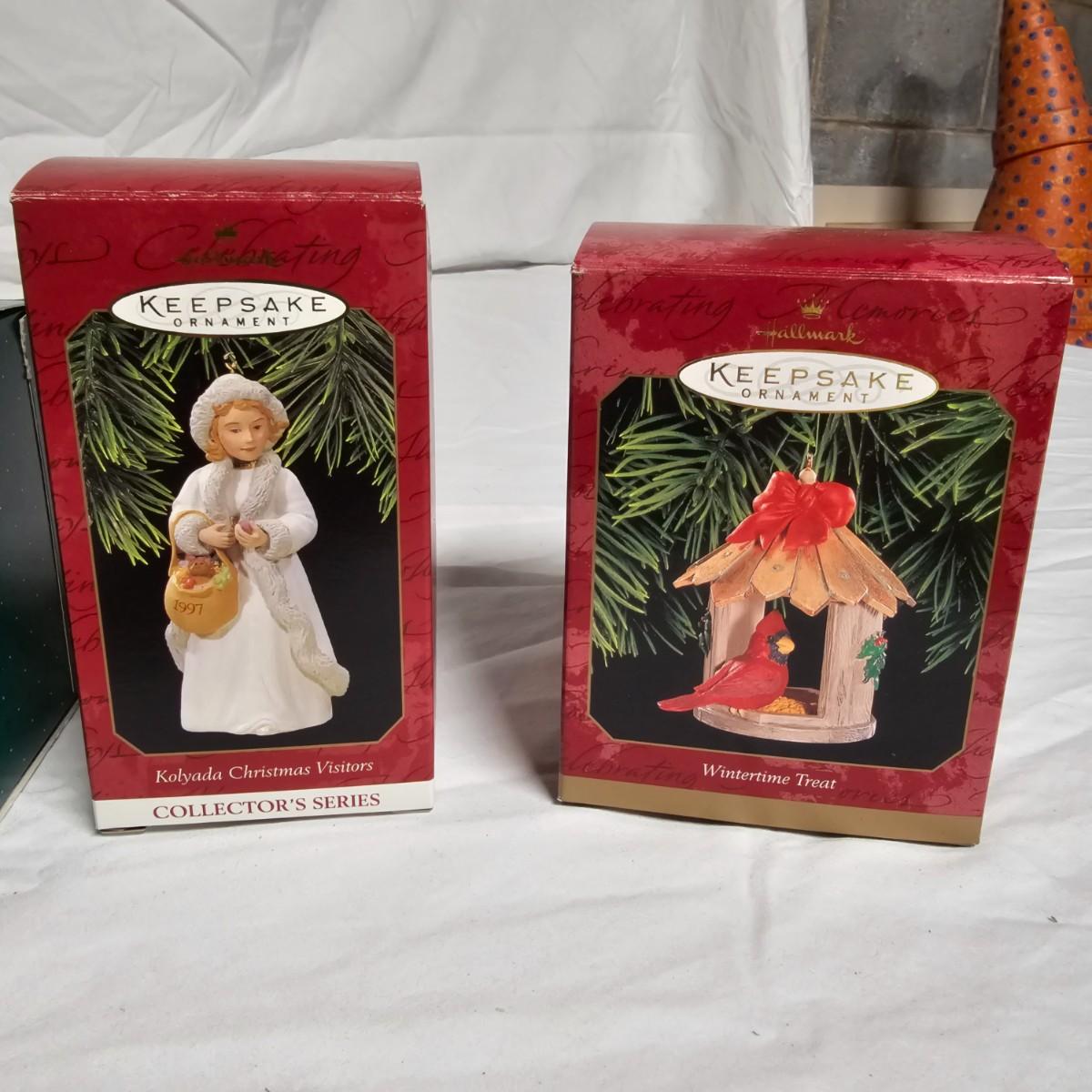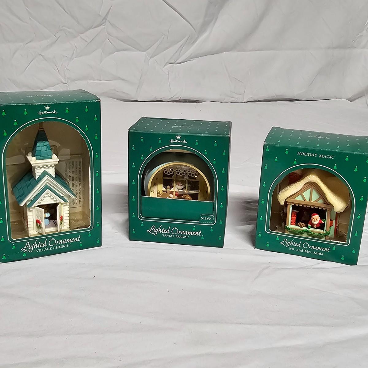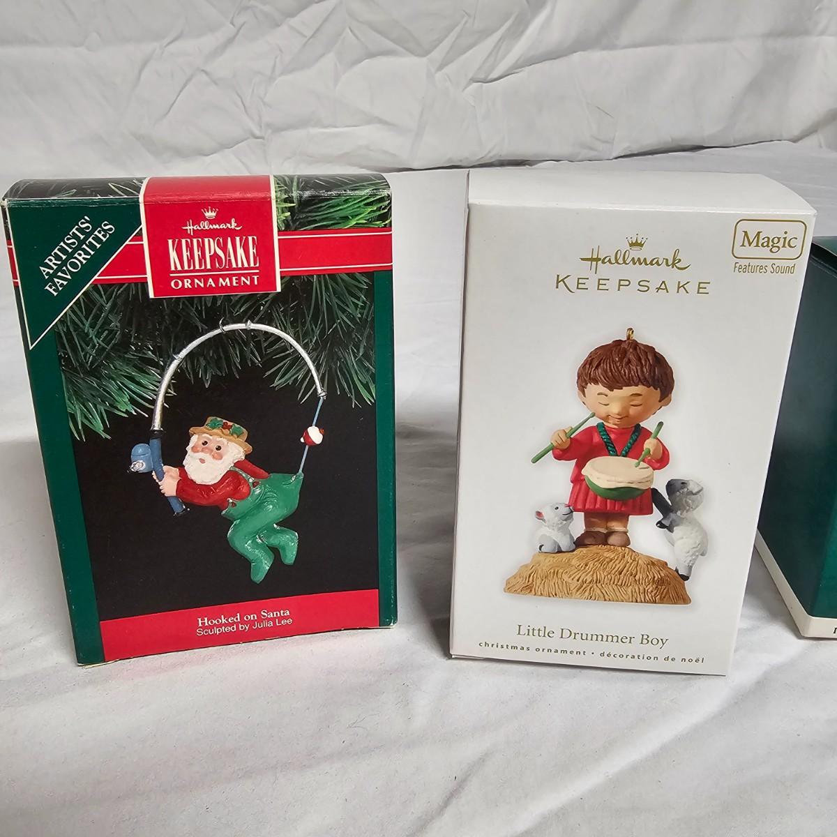 Large assortment of Hallmark ornaments in original boxes. Covering several decades of collecting, this group includes some but not all of the Dickens Caroler Bells, the 12 Days of Christmas, Santa & His Reindeer (all 5), A Christmas Carol (all 5) and some of the Merry Olde Santa series. Also many singles in lots of other series. About 100 pieces total, boxes show some wear, some more than others. See photos for details. Local pickup only.