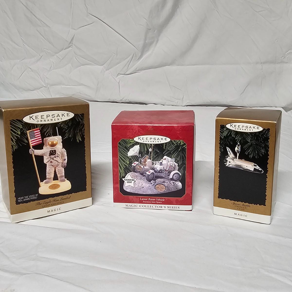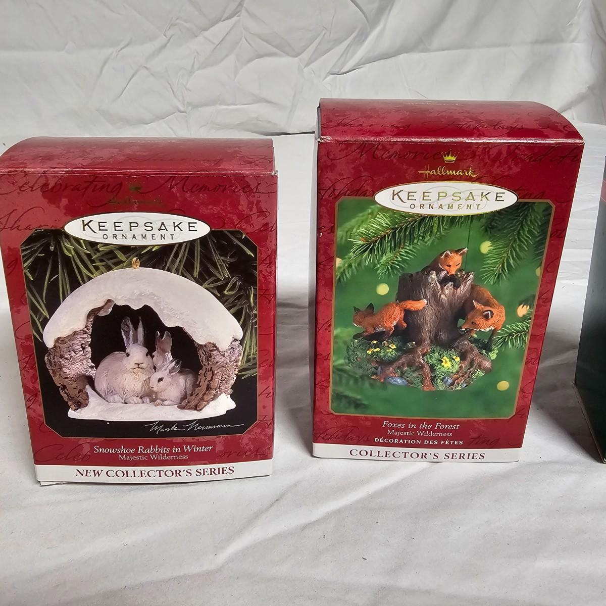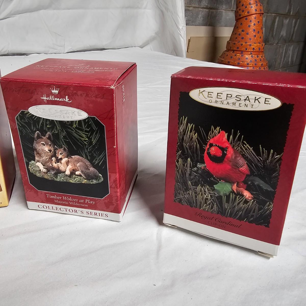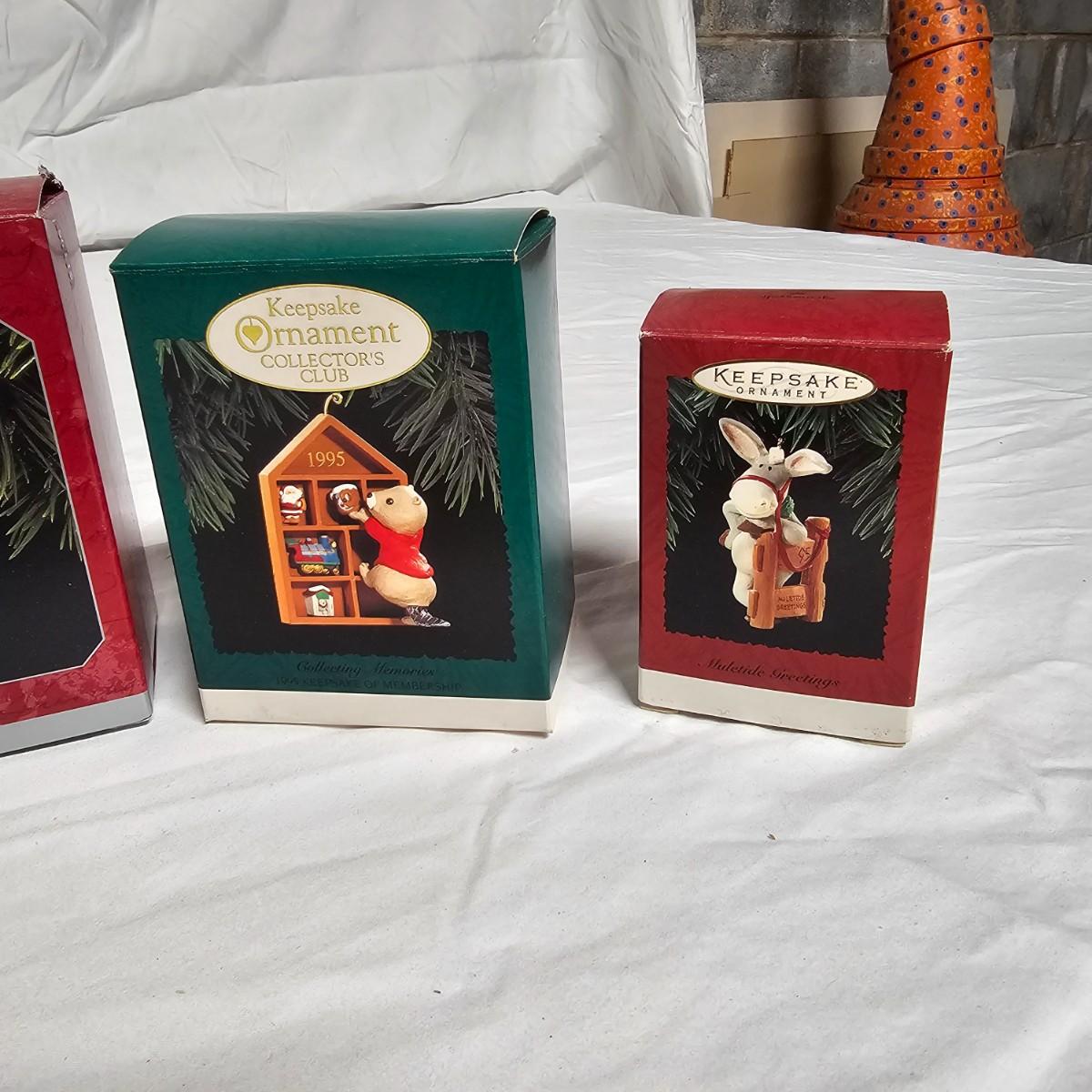 Large assortment of Hallmark ornaments in original boxes. Covering several decades of collecting, this group includes some but not all of the Dickens Caroler Bells, the 12 Days of Christmas, Santa & His Reindeer (all 5), A Christmas Carol (all 5) and some of the Merry Olde Santa series. Also many singles in lots of other series. About 100 pieces total, boxes show some wear, some more than others. See photos for details. Local pickup only.