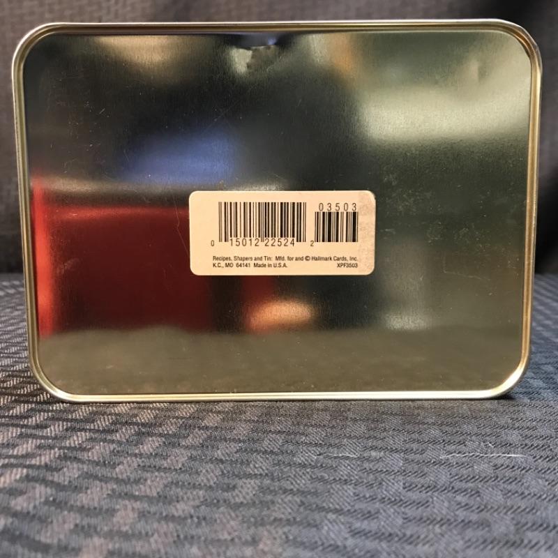 Auction is for tin only; no contents inside. Tin measures 7 1/8“ x 5 1/8“ x 2 1/2“.