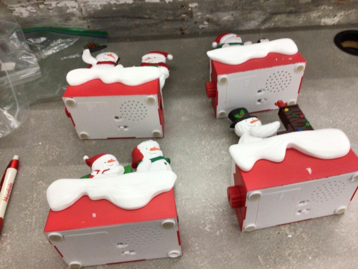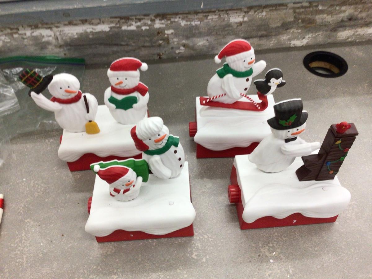 You get four Hallmark talking Snowmen they can attach or stand alone.