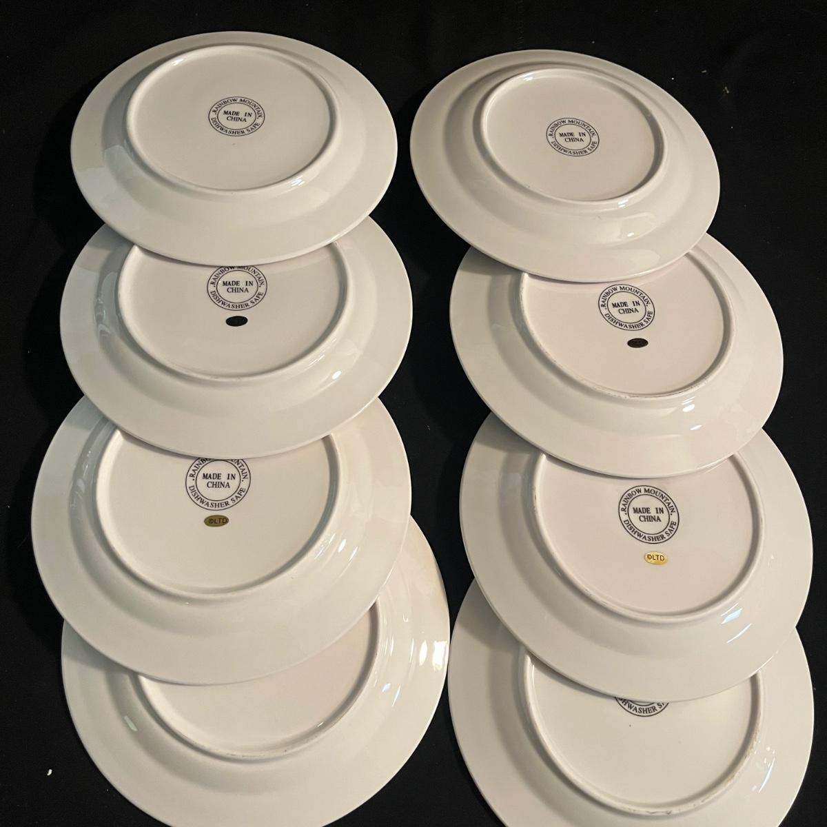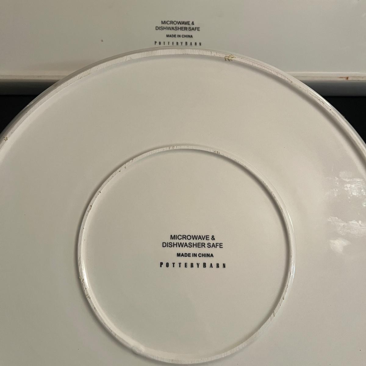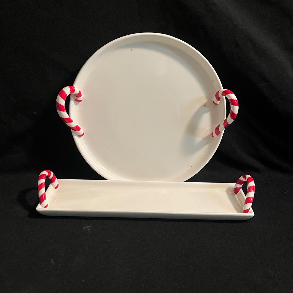 Lot includes two Hallmark ceramic dishes, eight ceramic reindeer plates, Pottery Barn ceramic serving trays and two ceramic soup bowls with lids. Largest serving tray measures 13”D x 2.5”H with handles.