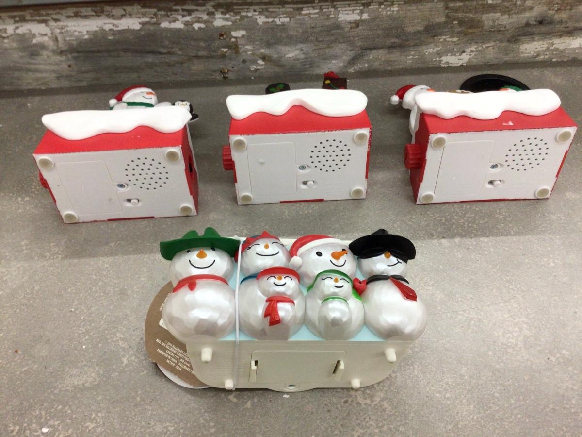 You get three Hallmark talking snowmen they talk and can attached and working together. The other is independent.