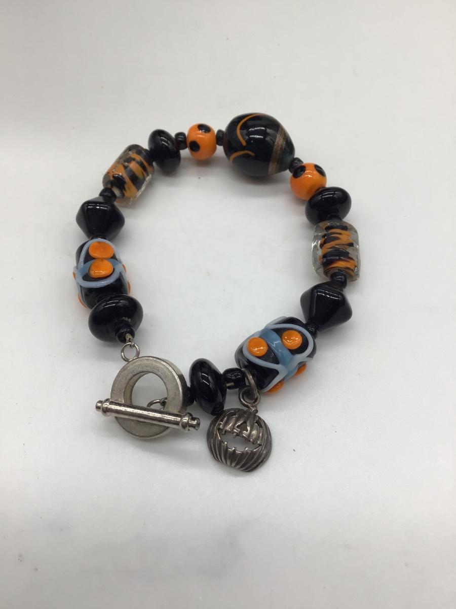 Halloween black and orange beaded bracelet
