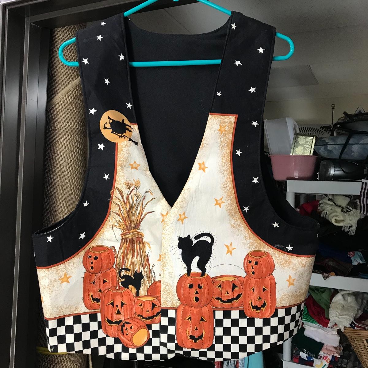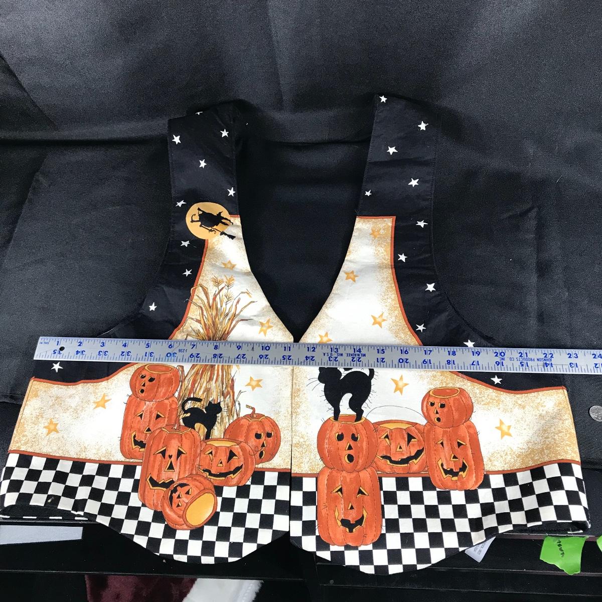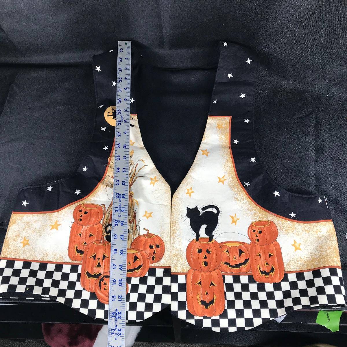 Holiday themed buttonless vest. Appears to be homemade. See pictures for measurements.