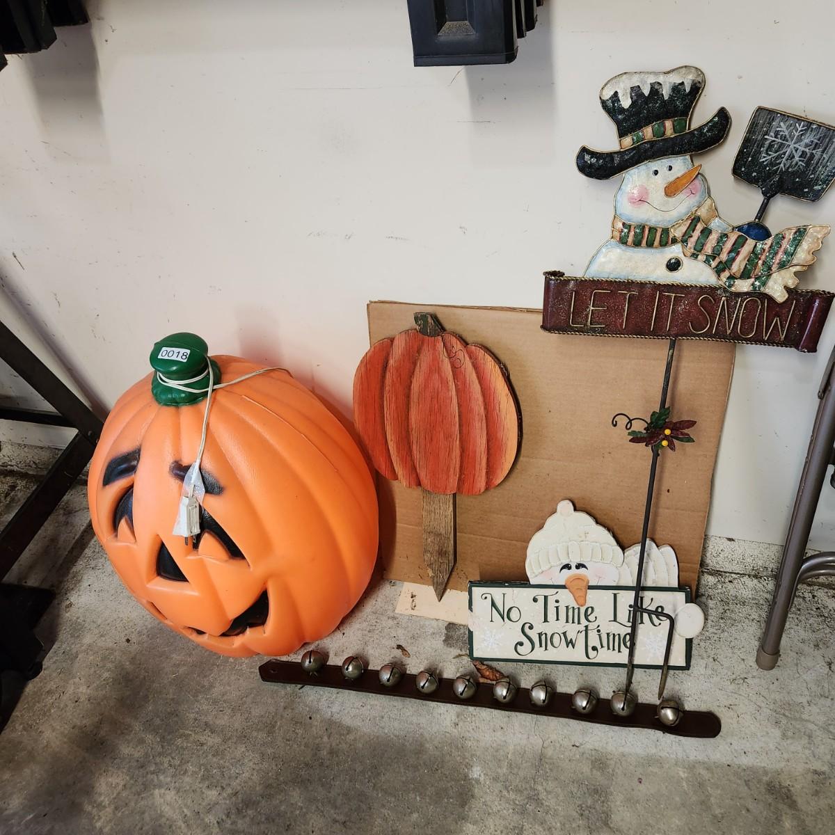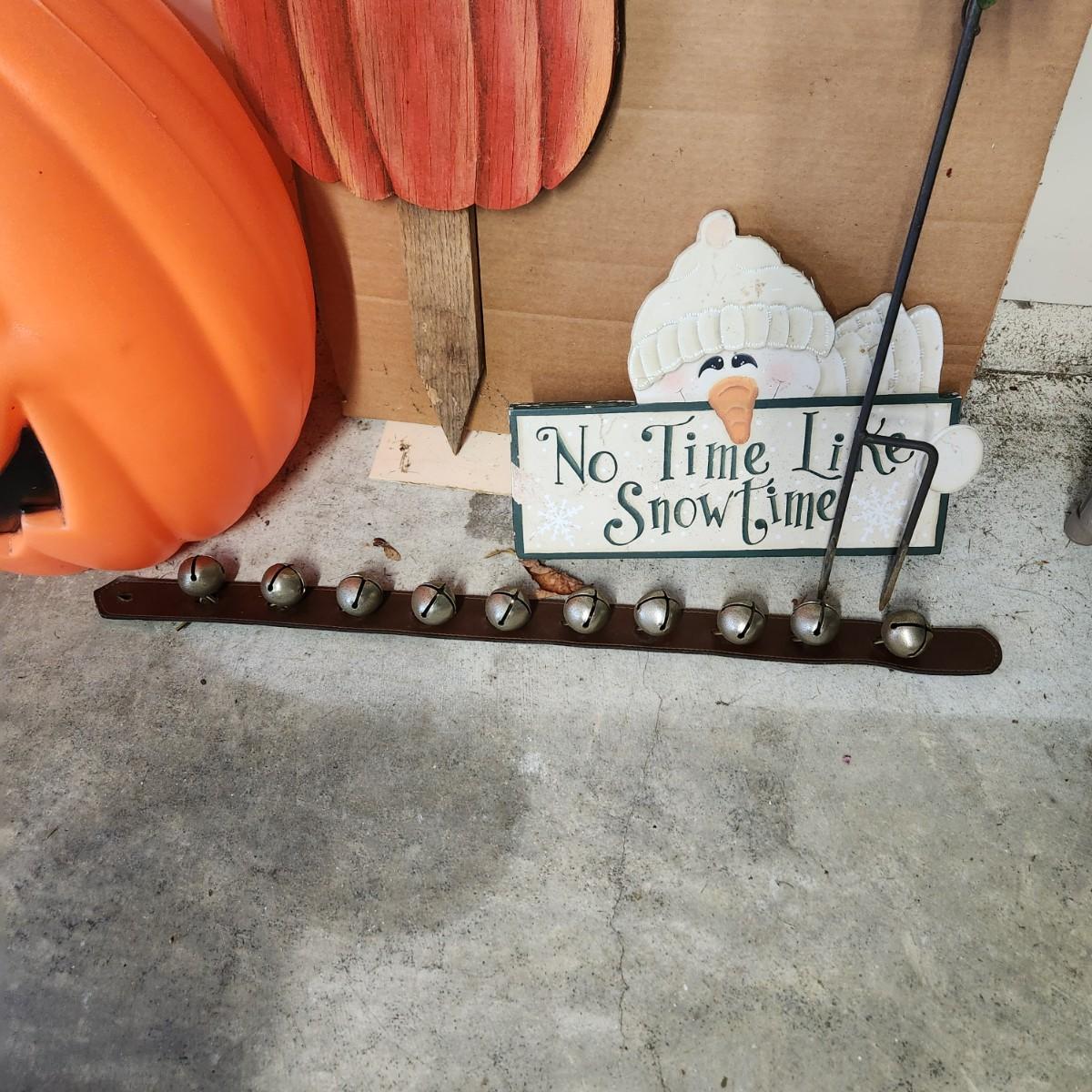 Halloween Christmas Décor Lot Sleigh bells Lighted Pumpkin