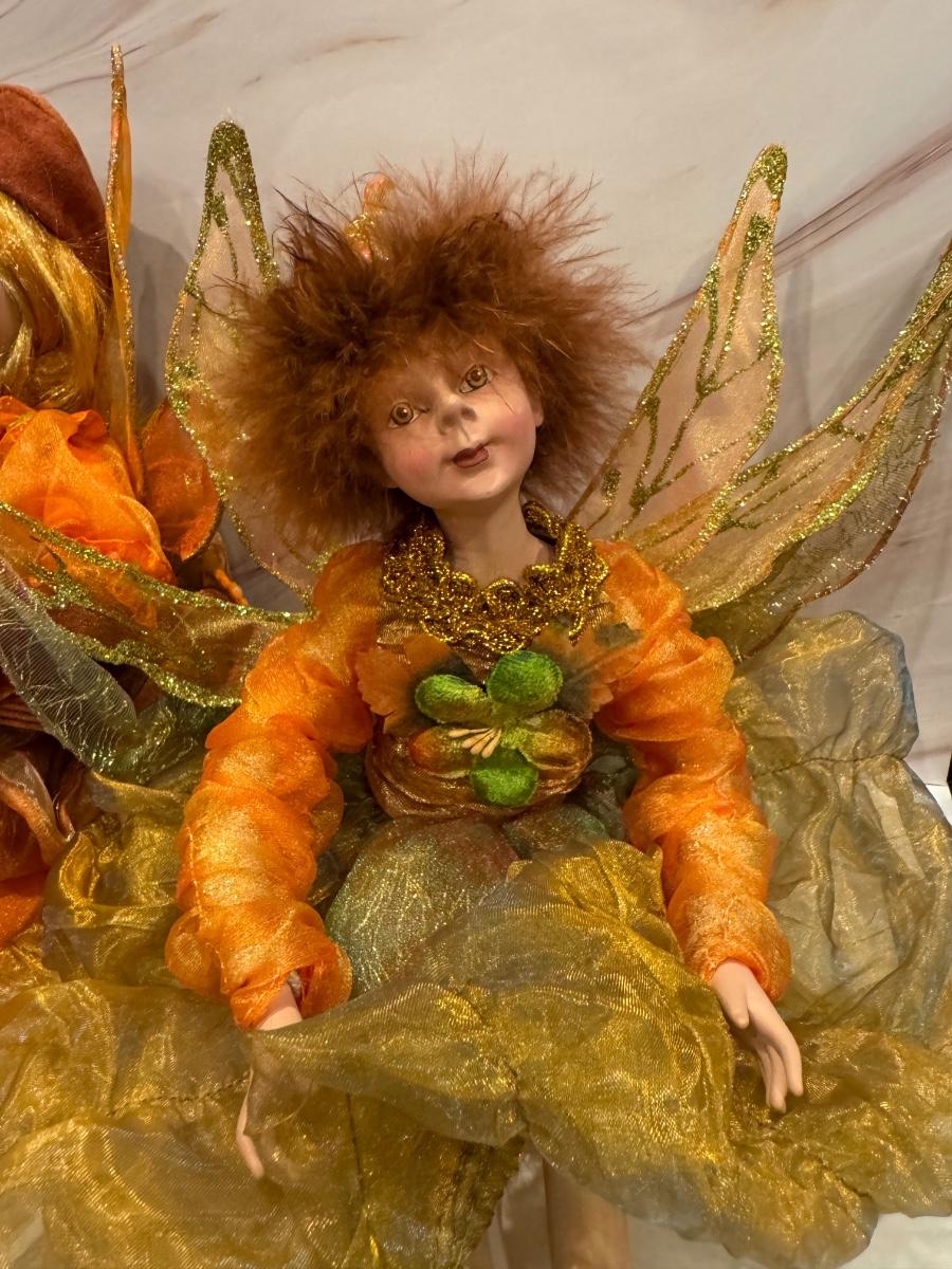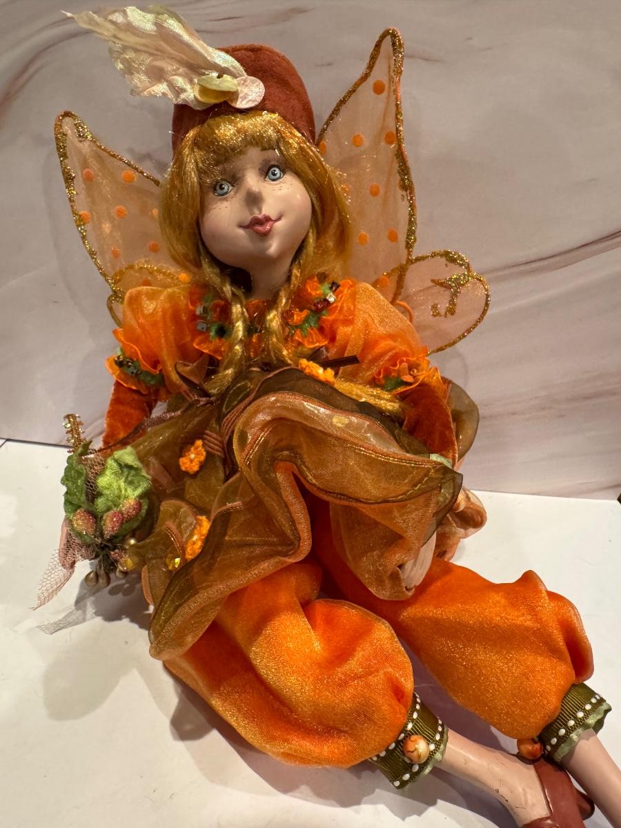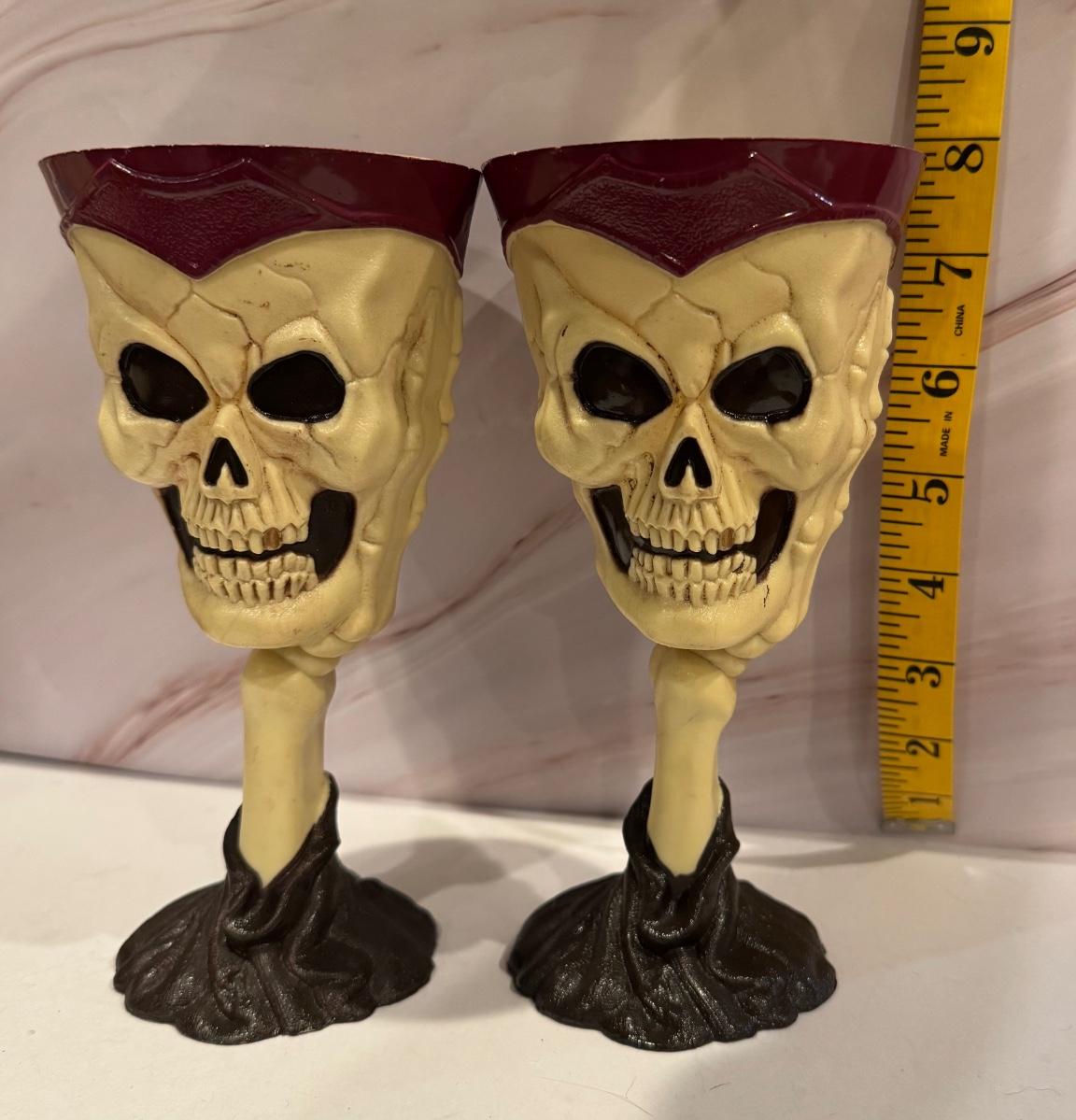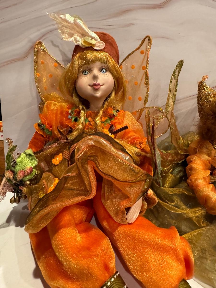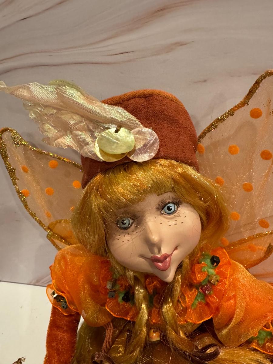 Lot includes two (2) Woodland Fairy Dolls, Winwood Elf (16") & Fairy Elf Wings (13"). Vintage posable dolls, referred to as "shelf sitters". Enhance your fall decor. Also inclues four (4) Skeleton Skill Plastic Wine Goblets.