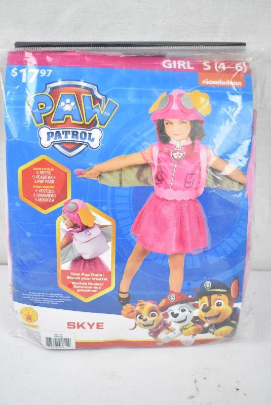 Halloween Costume, Kids Size Small (4-6) Paw Patrol Skye. Zipper Badge Damaged