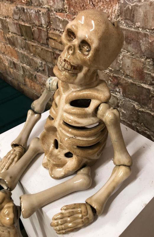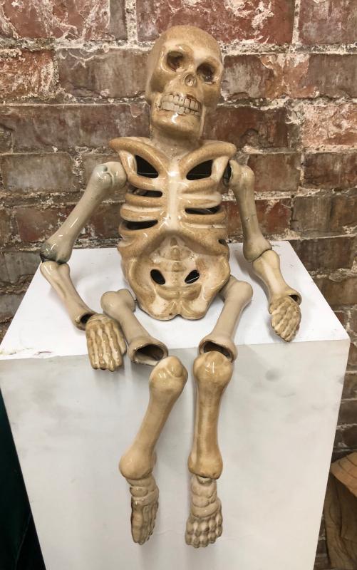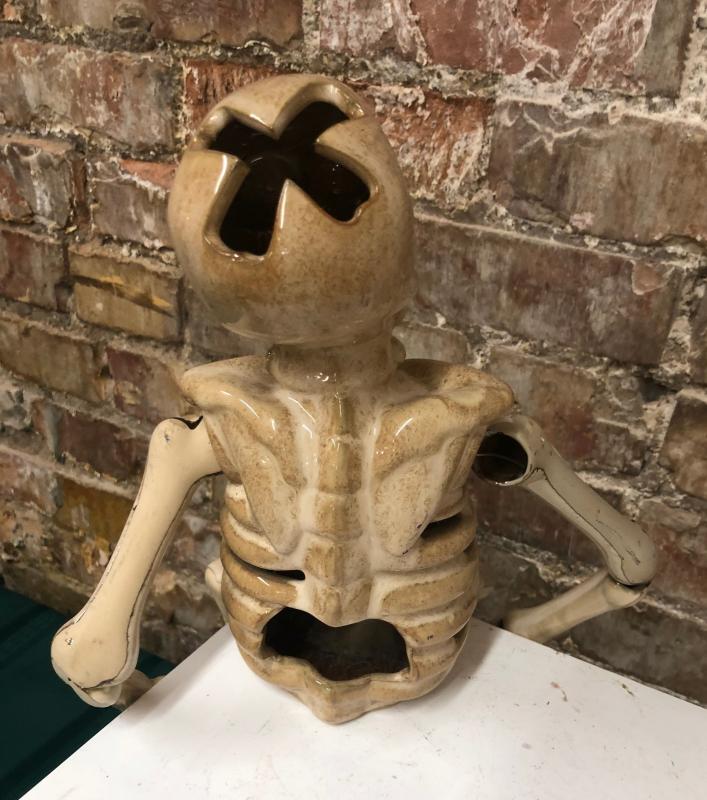 Here is a ceramic skeleton to add to your Halloween decorations...Good condition..Articulated...13" high...
