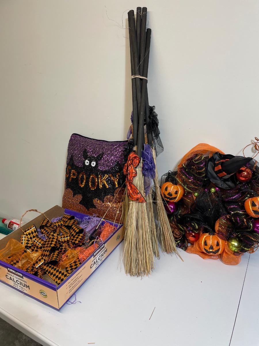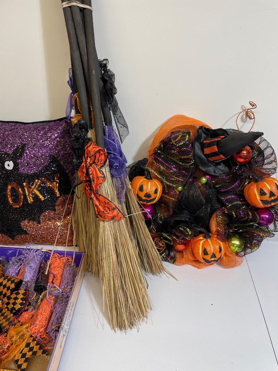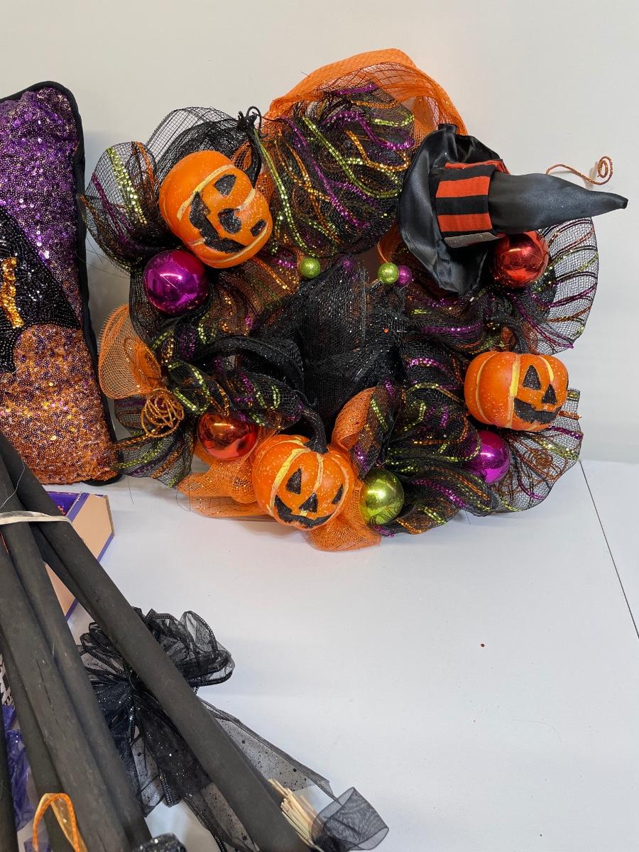 2 sequin pillow, scary tree, spider web, witches brooms, garland, big wreath and more!