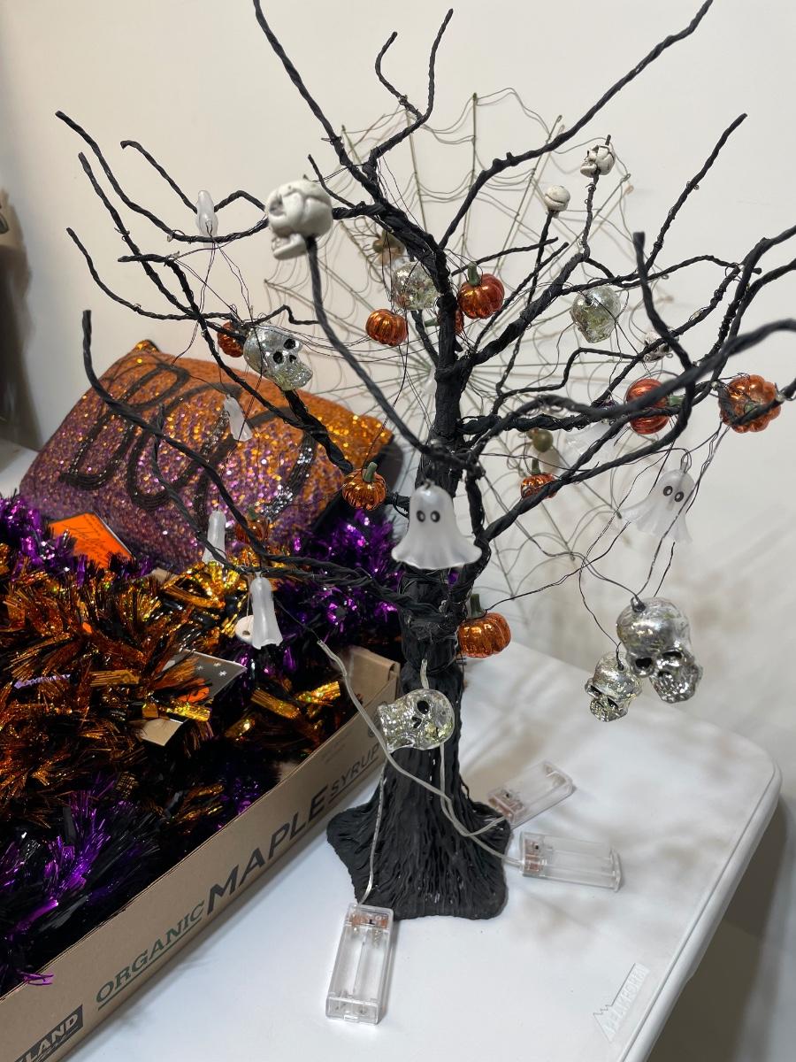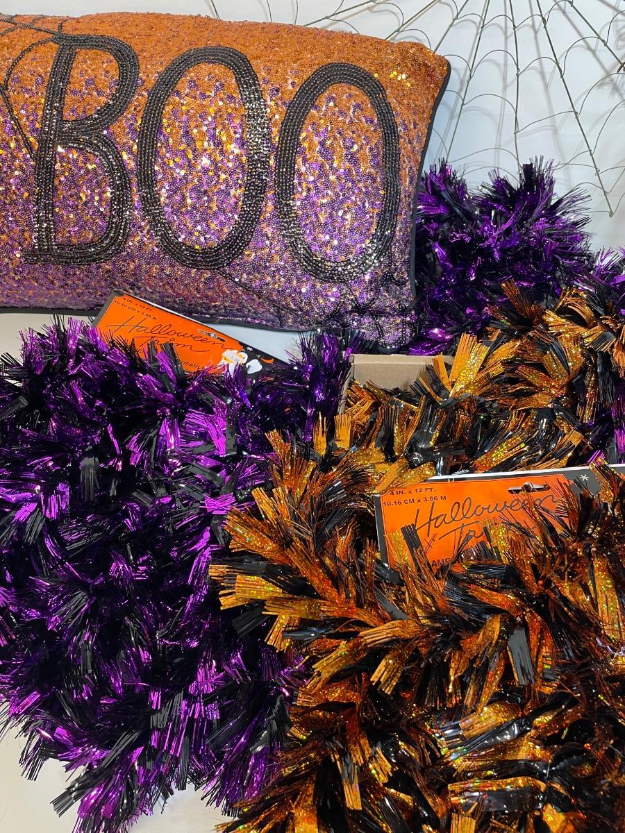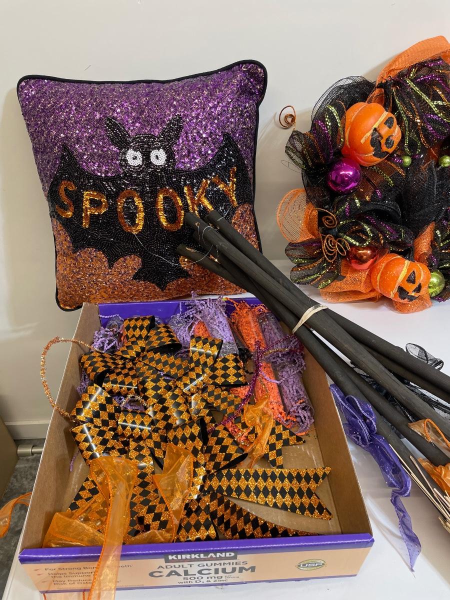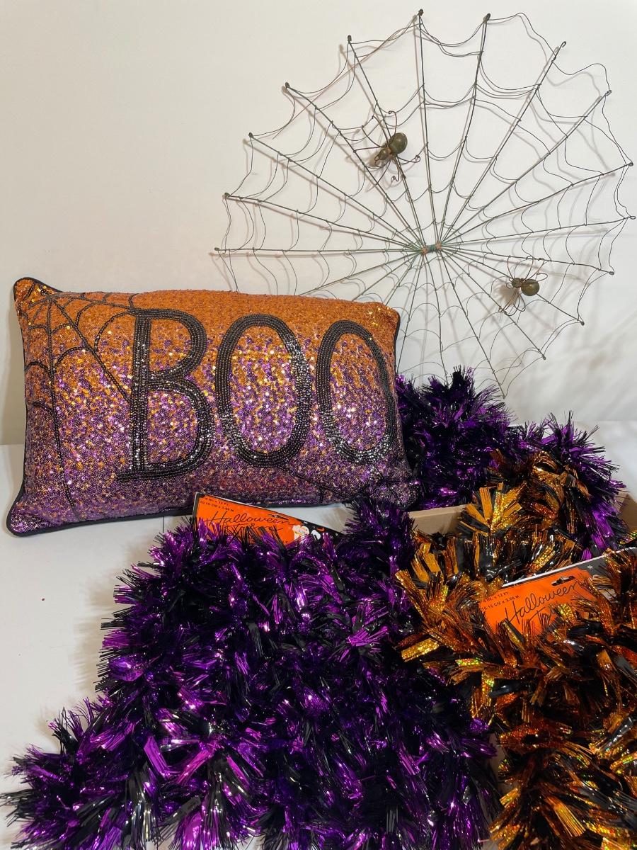 2 sequin pillow, scary tree, spider web, witches brooms, garland, big wreath and more!