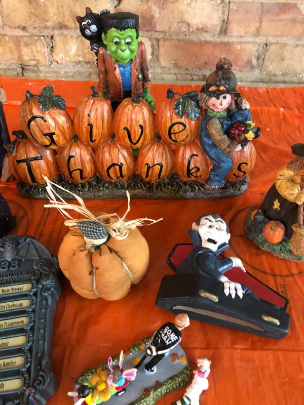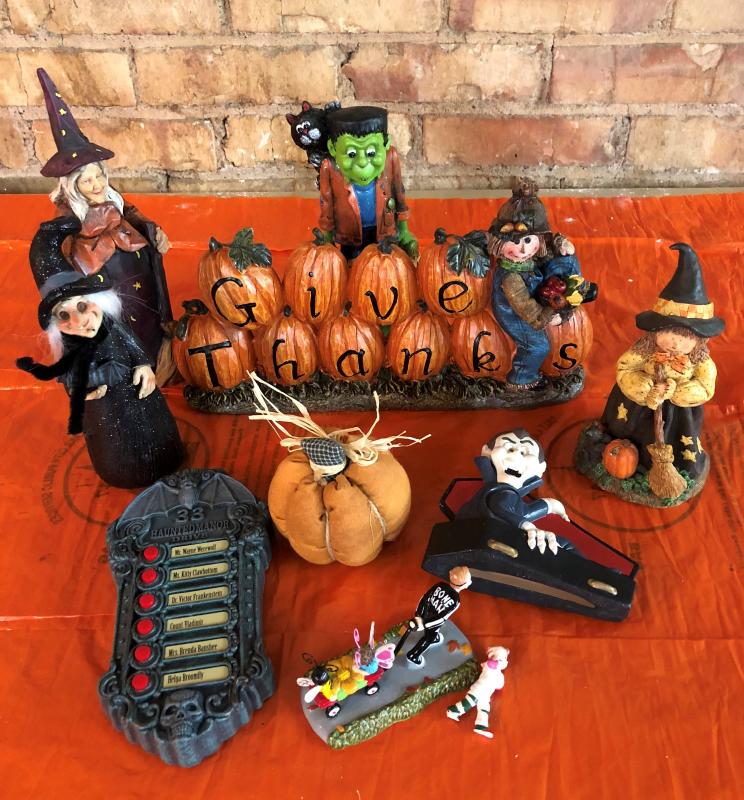Here are a lot of nine Halloween decor items..varied..Give thanks pumpkin patch, etc...Like new condition...