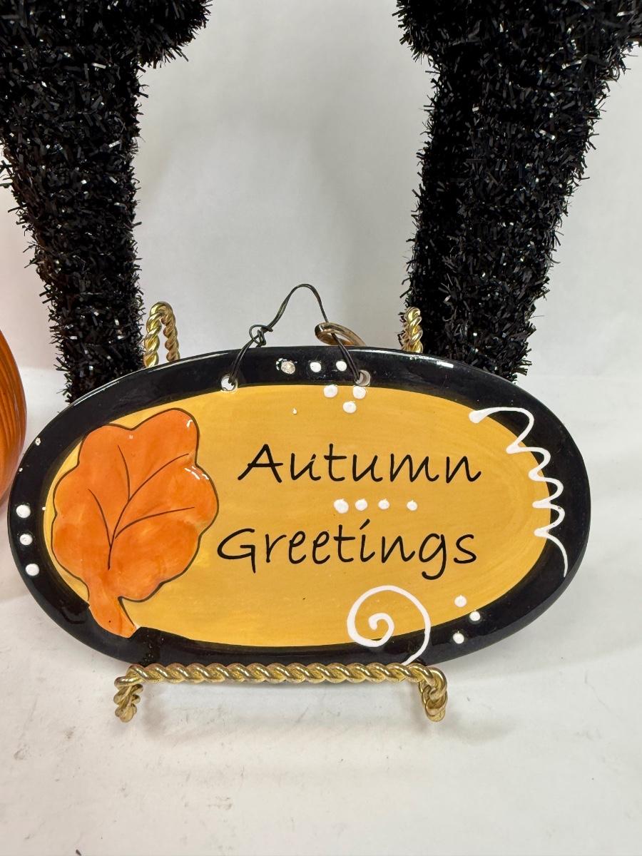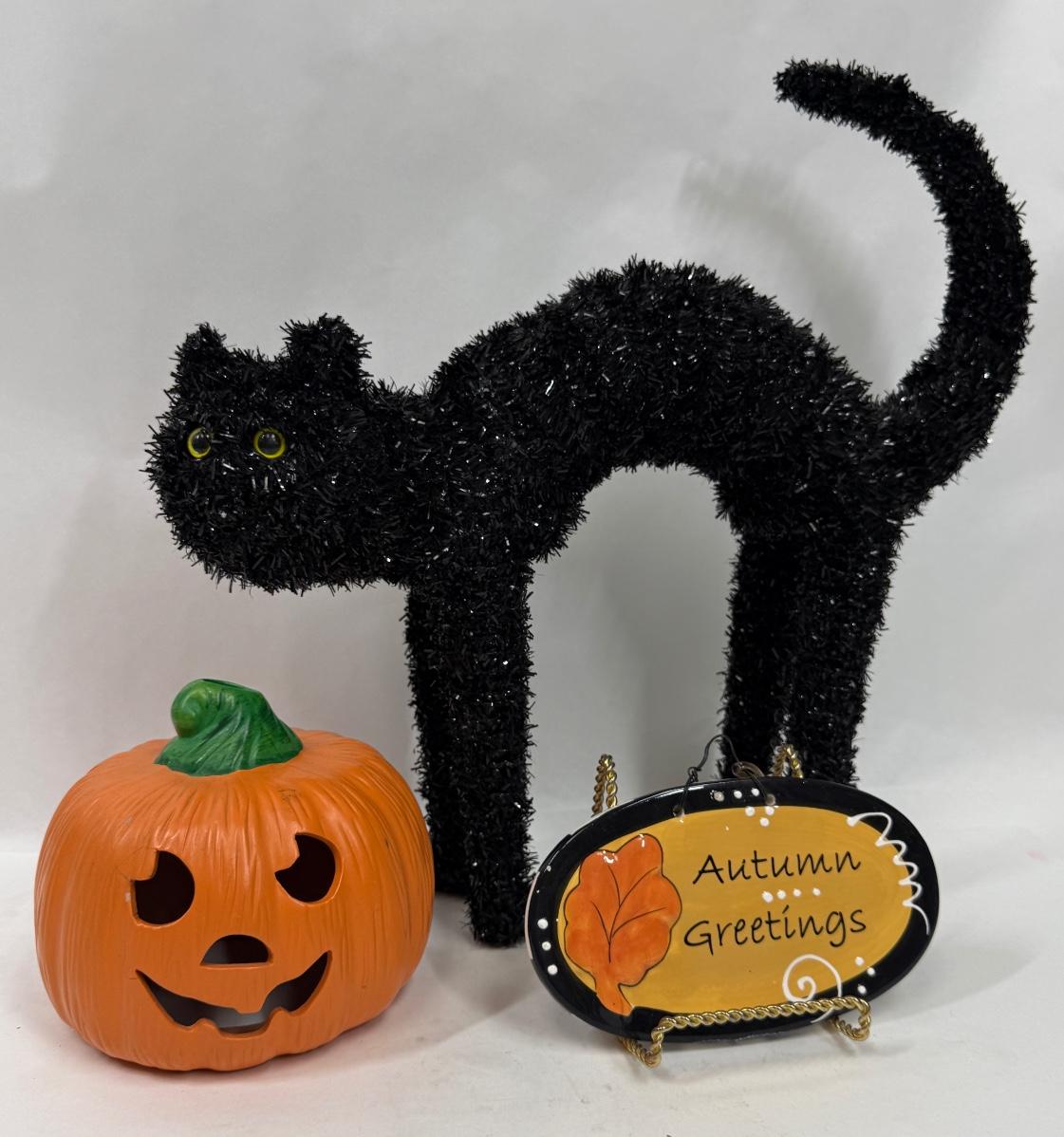 Halloween Decor Lot: Black Cat, Pumpkin and Autumn Sign