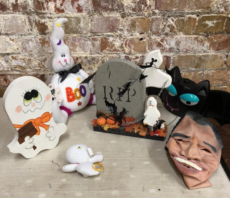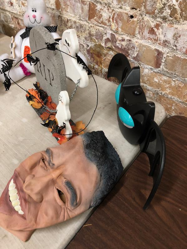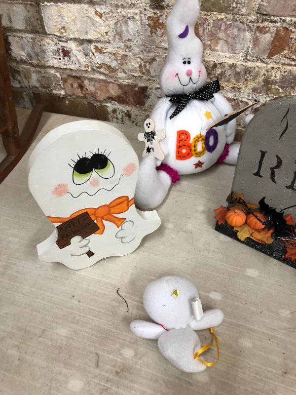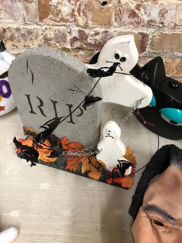 Here is another lot of nearly new Halloween holiday decorations...cute Casper-like ghosts and RIP gravestone and a mask...