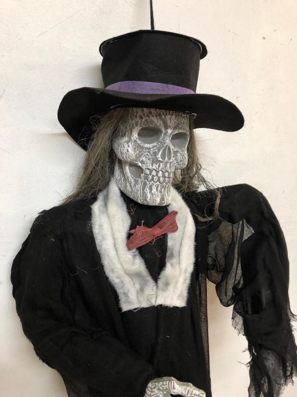 Here is a large 65" high hanging ghost skeleton figure for Halloween...Very good condition....