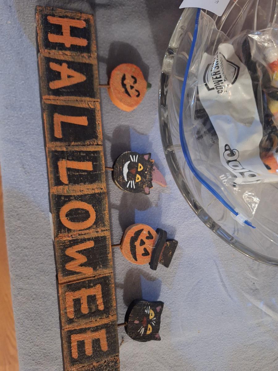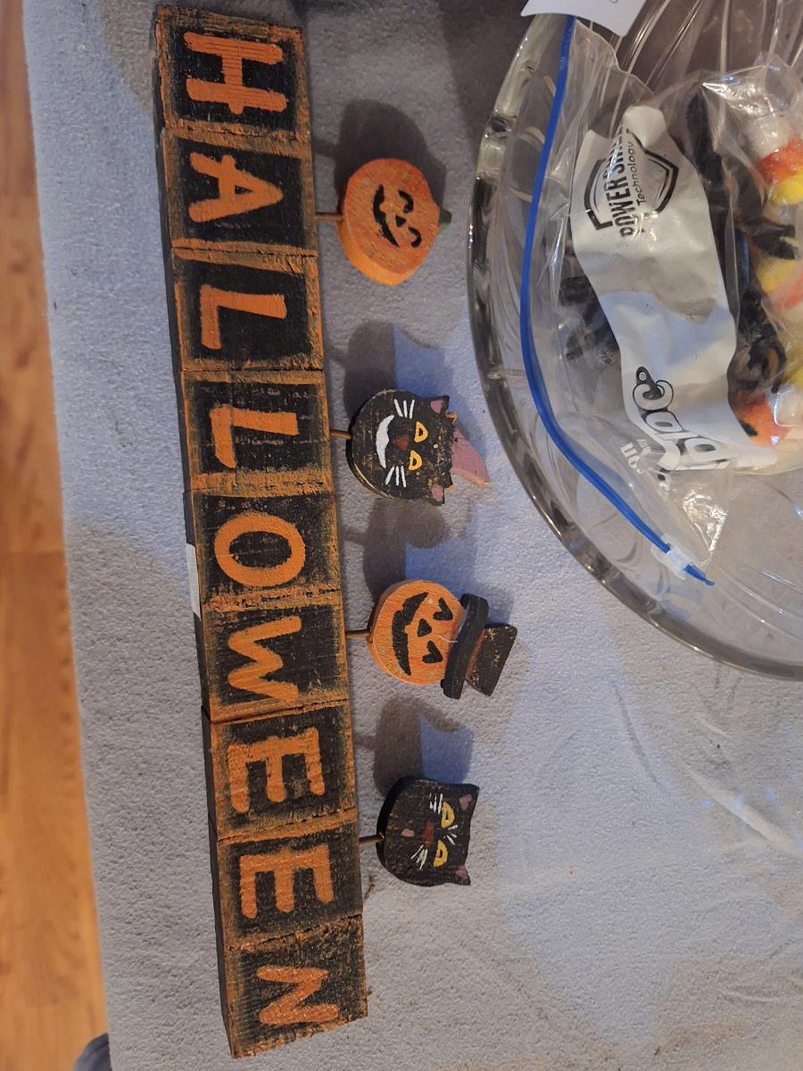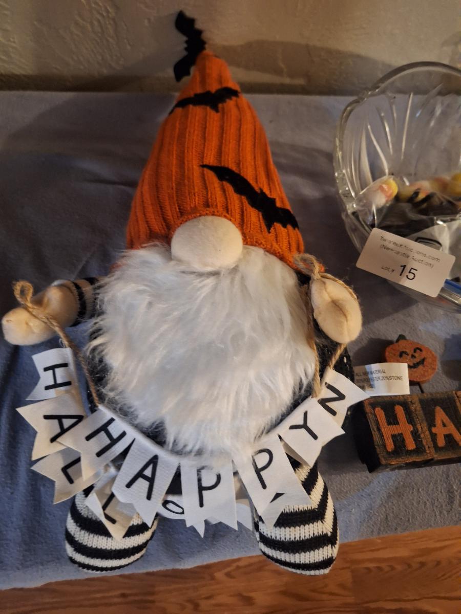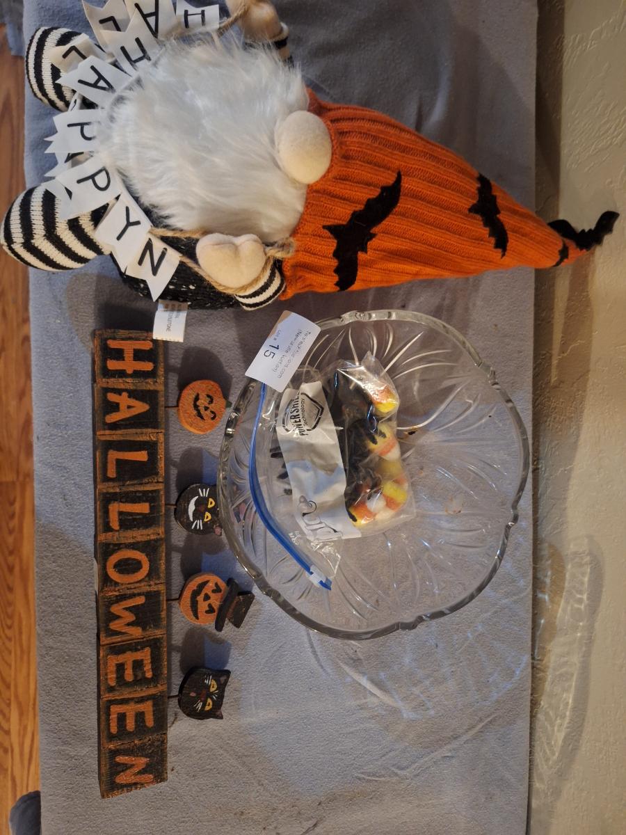 halloween gnome, candy bowl and other