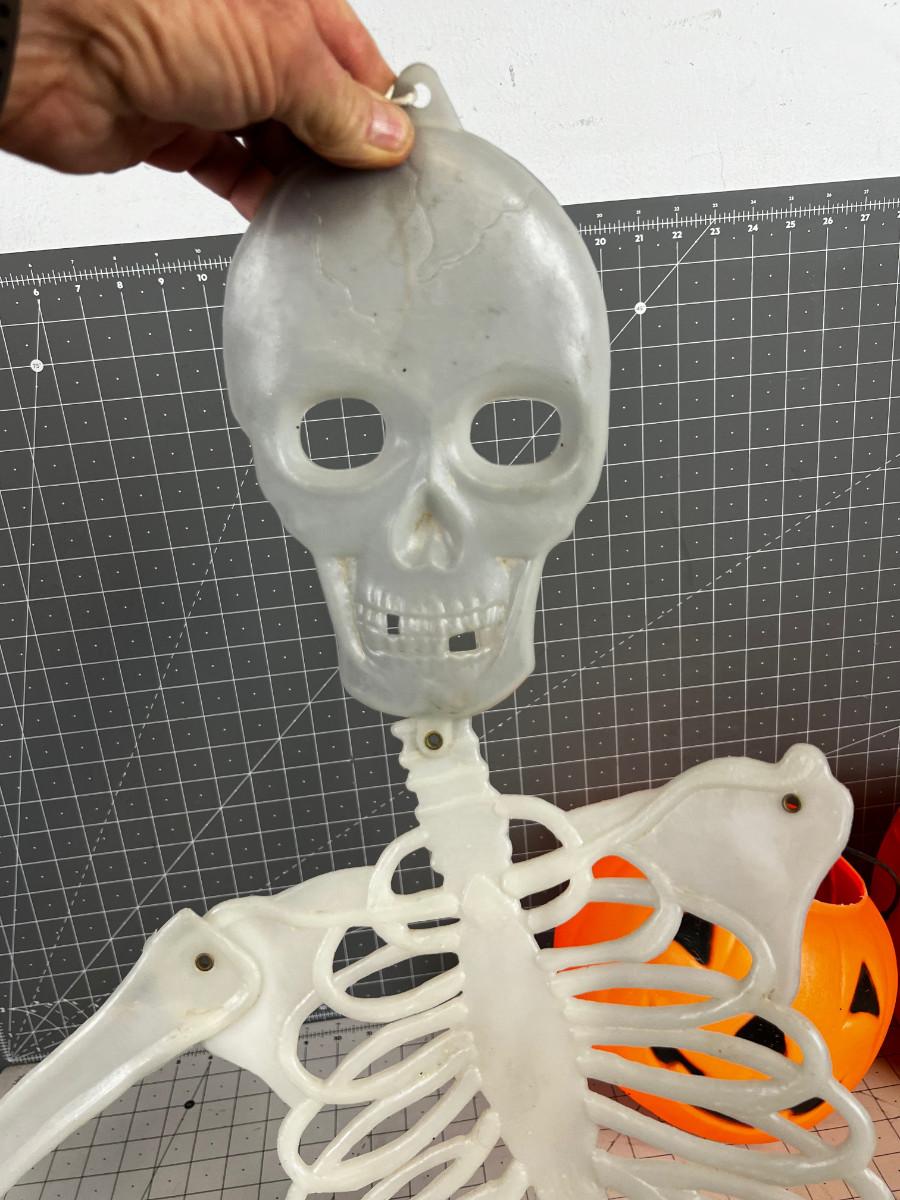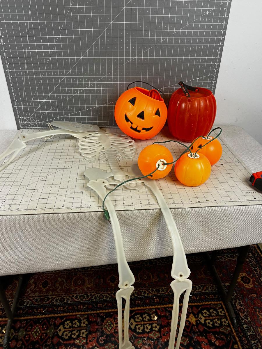 HALLOWEEN is just around the Corner; 1 Arm Skeleton and bunch of pumpkins.