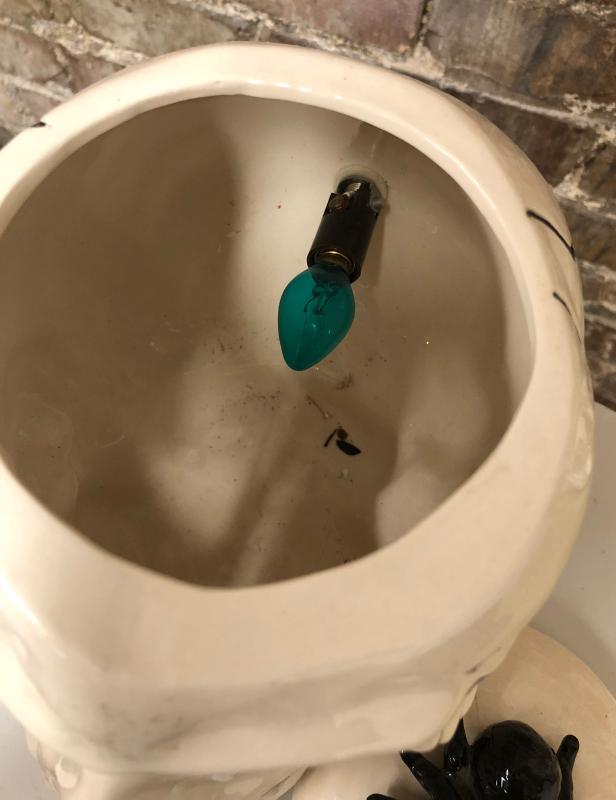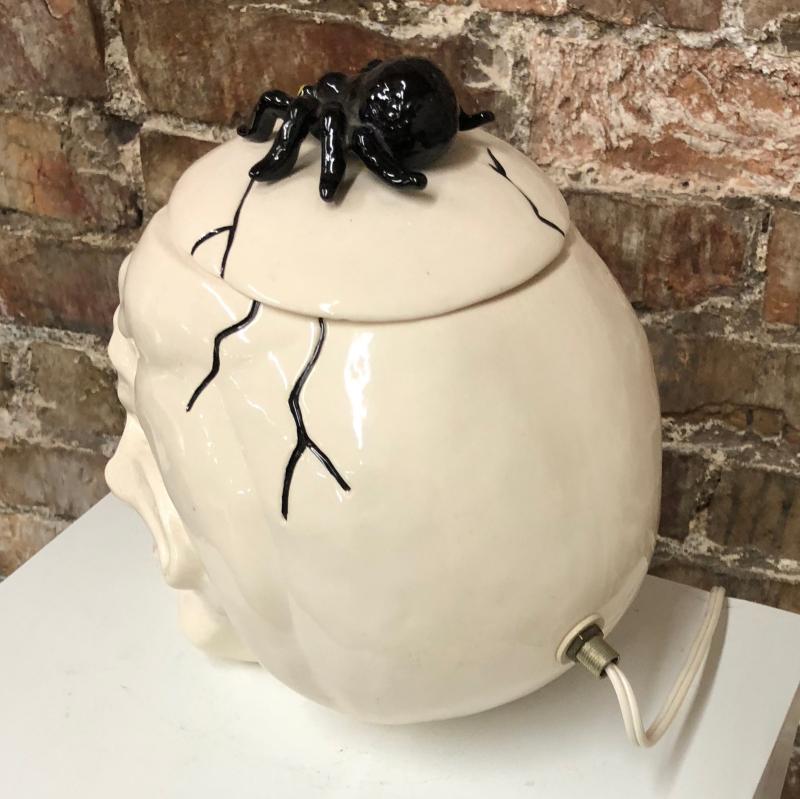 For Halloween here is a scary lighted skull with a spider....
