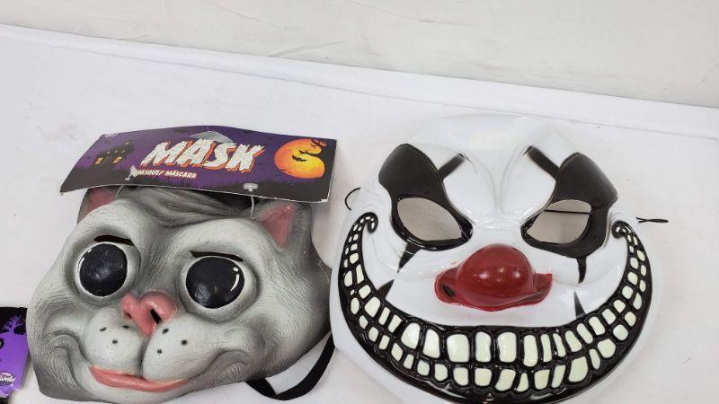 Halloween Lot, Cat & Clown Mask/Tape/Spiders/Leaf Bags/Masquerade Mask - New