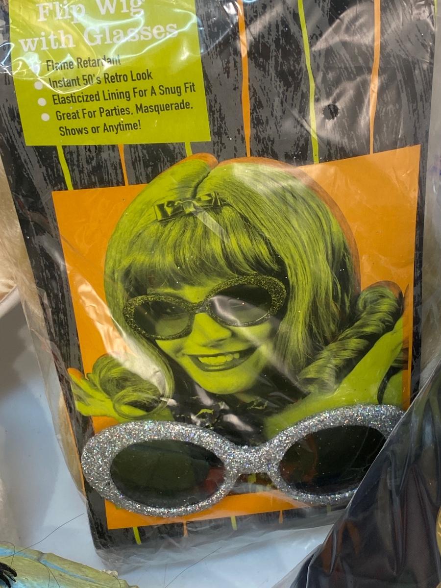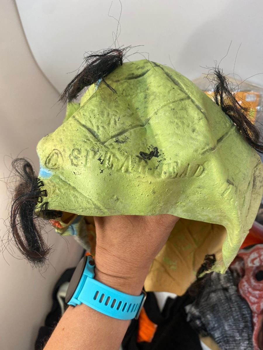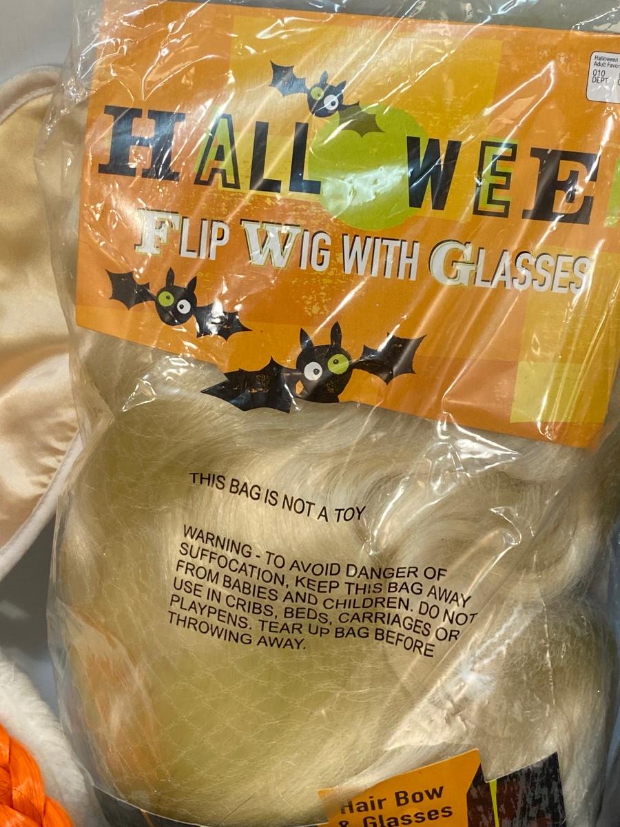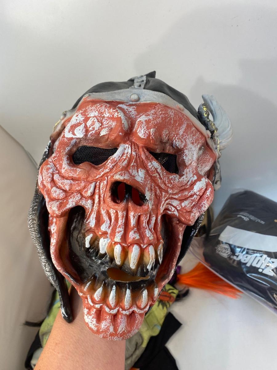 Halloween Mask Costume Dress Up Lot. In good used condition. Three masks, wig, headbands, and a costume.