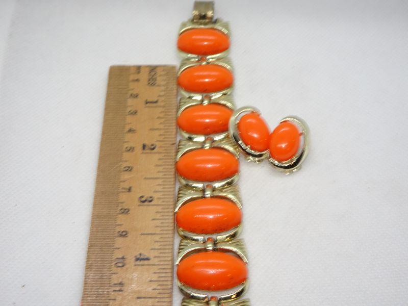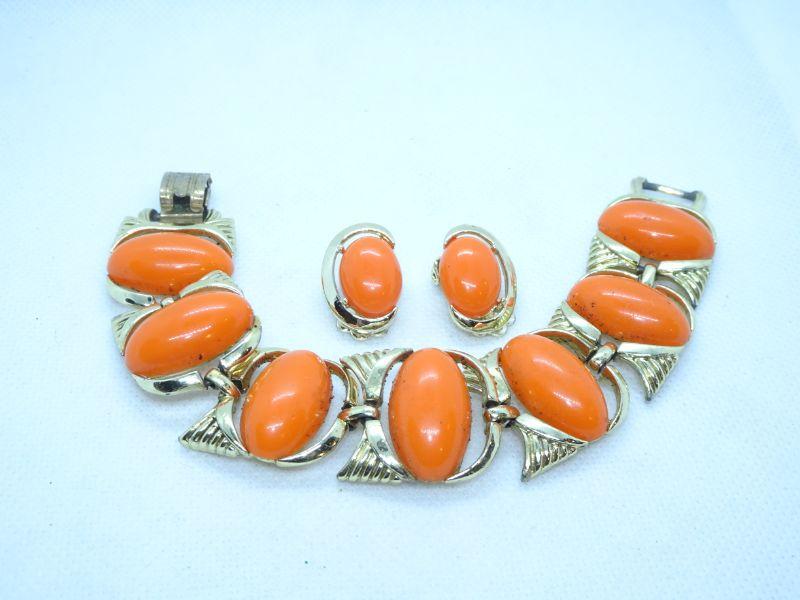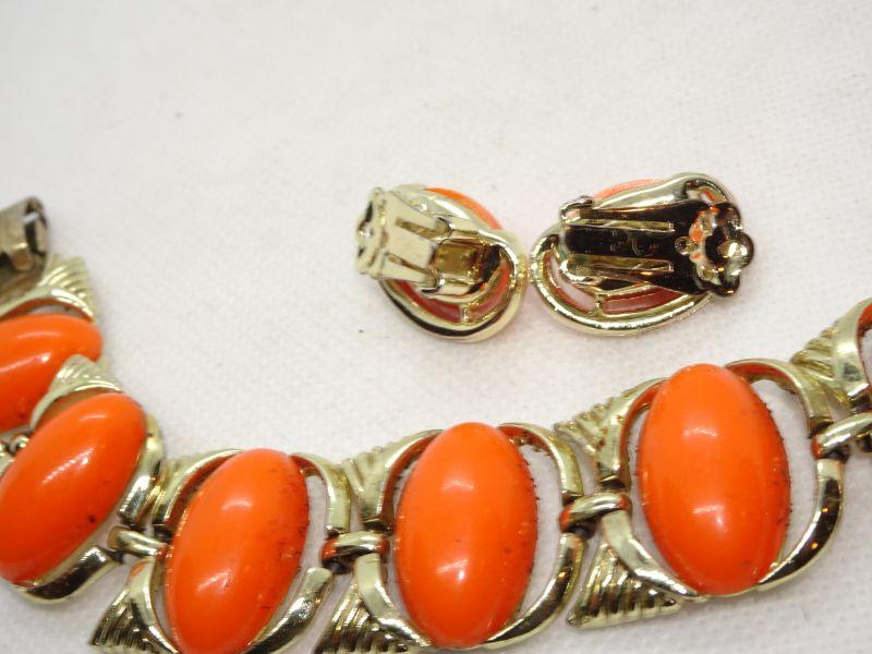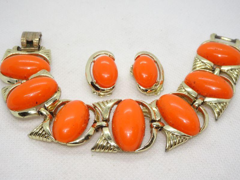 Halloween Orange Thermoplastic Gold Tone Bracelet & Clip Earring Set - Reserve