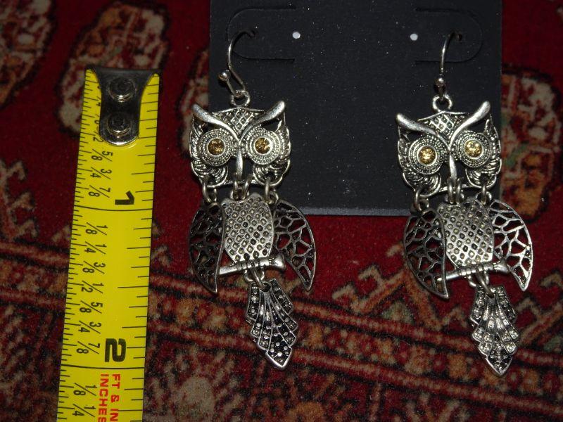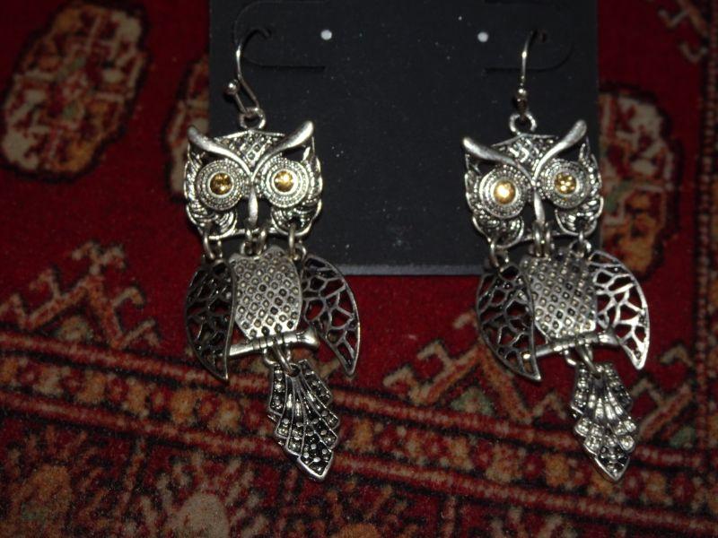 Halloween Owl New Old Stock Dangle Earrings, Hooters, Silver Tone Owl Earrings
