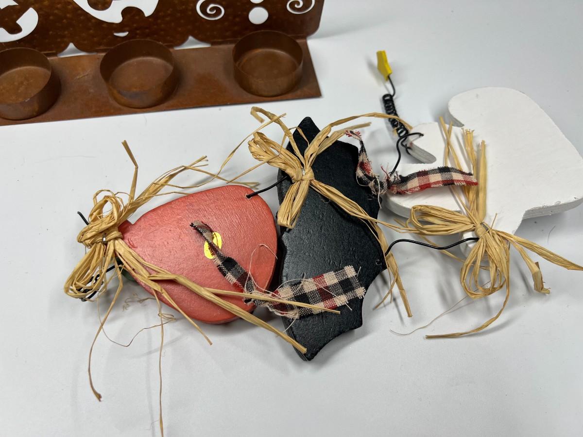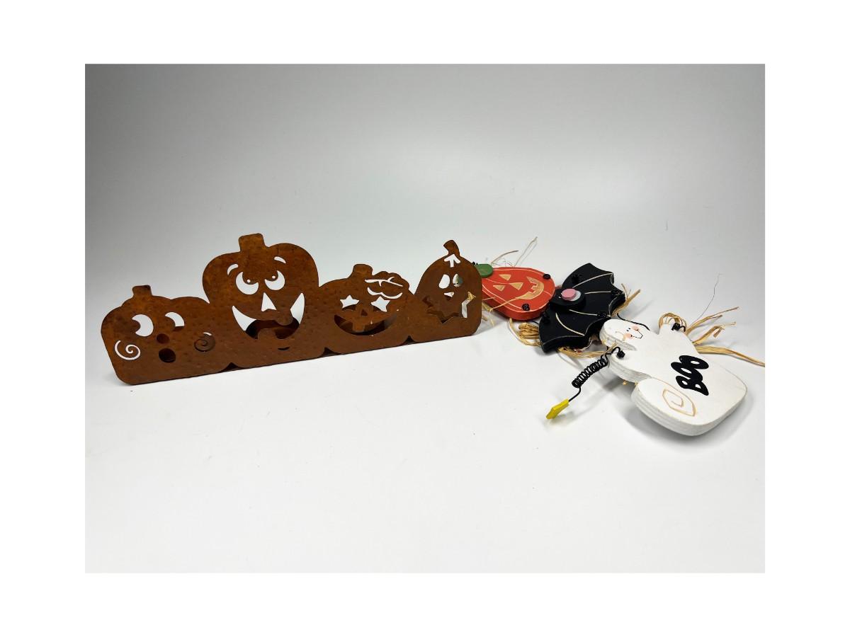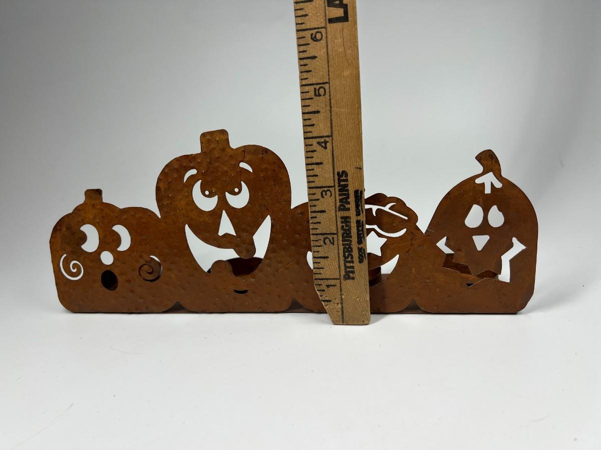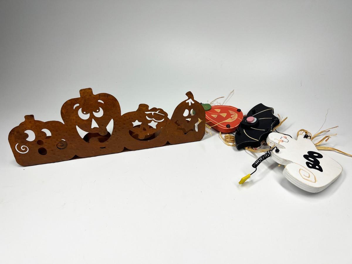 Halloween Pumpkin Metal Tin Light Candle Holder & Hanging Wood Display
