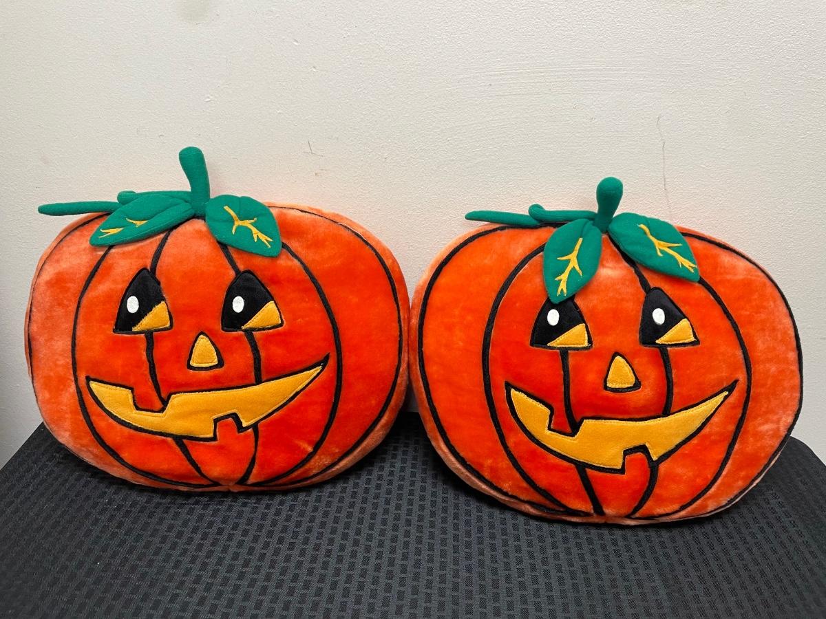 This set includes two Halloween pumpkin pillows. Both pillows are in great condition and there is no damage noticed.