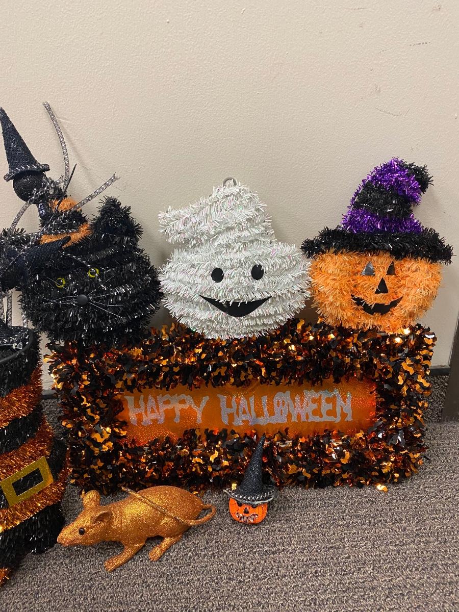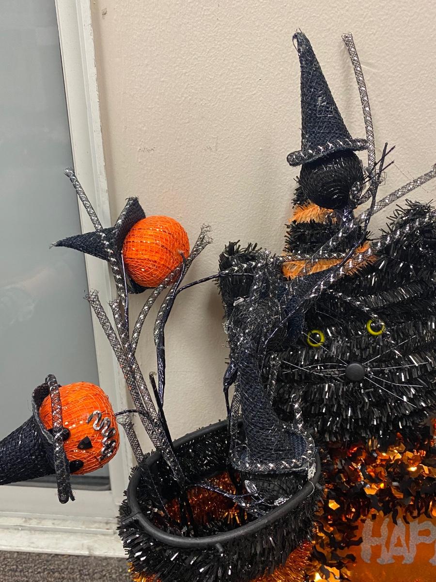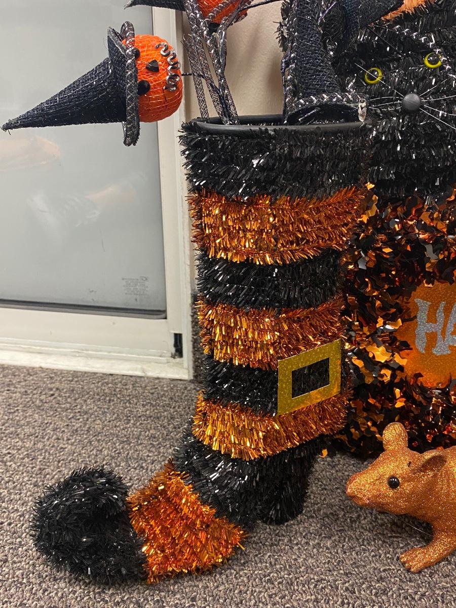 Halloween Seasonal Decor Hanging Wall Sign Witch's Boot Glittery Rat