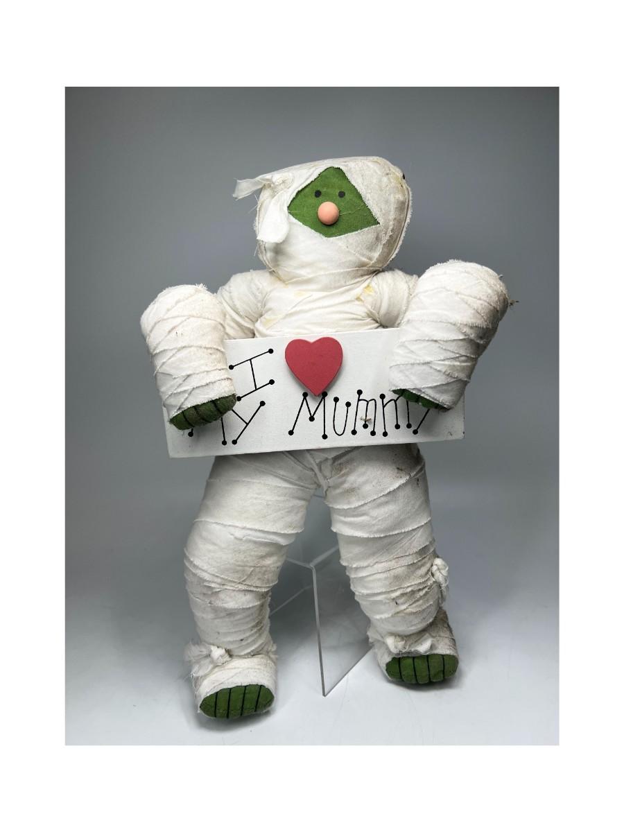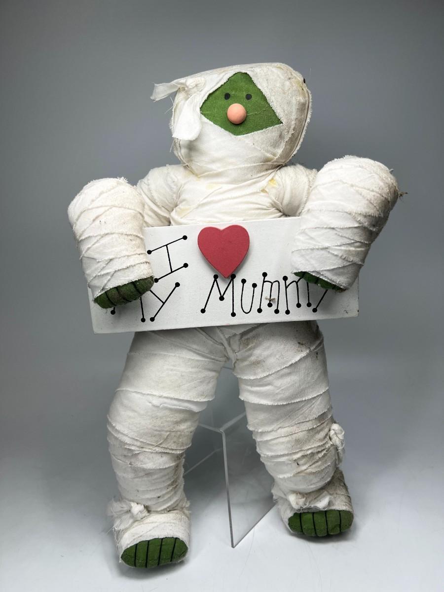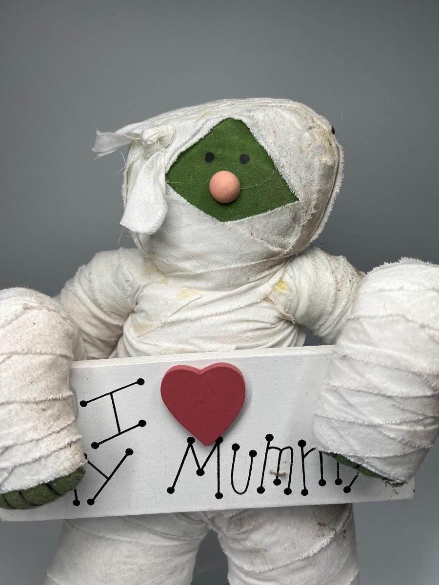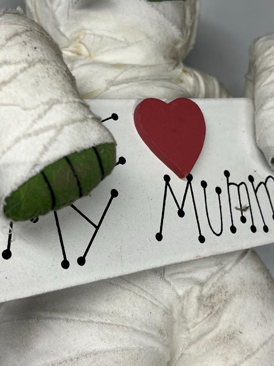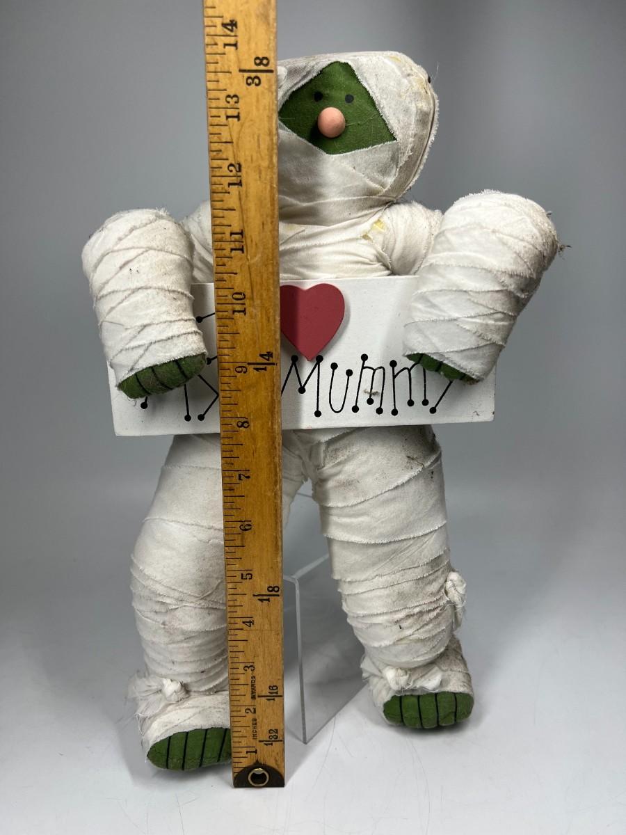 Halloween Seasonal I ❤️ My Mummy Decorative Figure Plush. Fair condition, has some discolor and spots where you can see the glue.