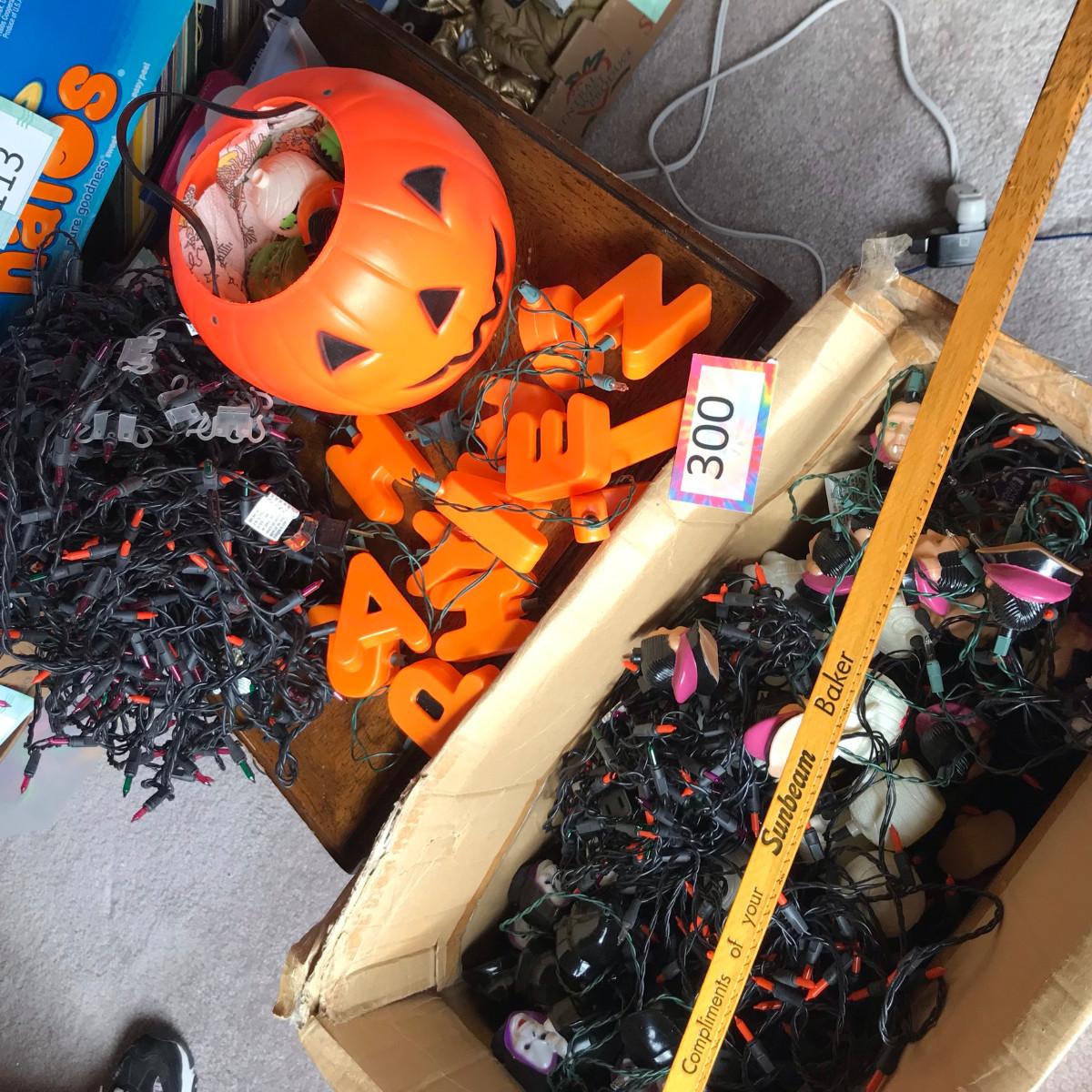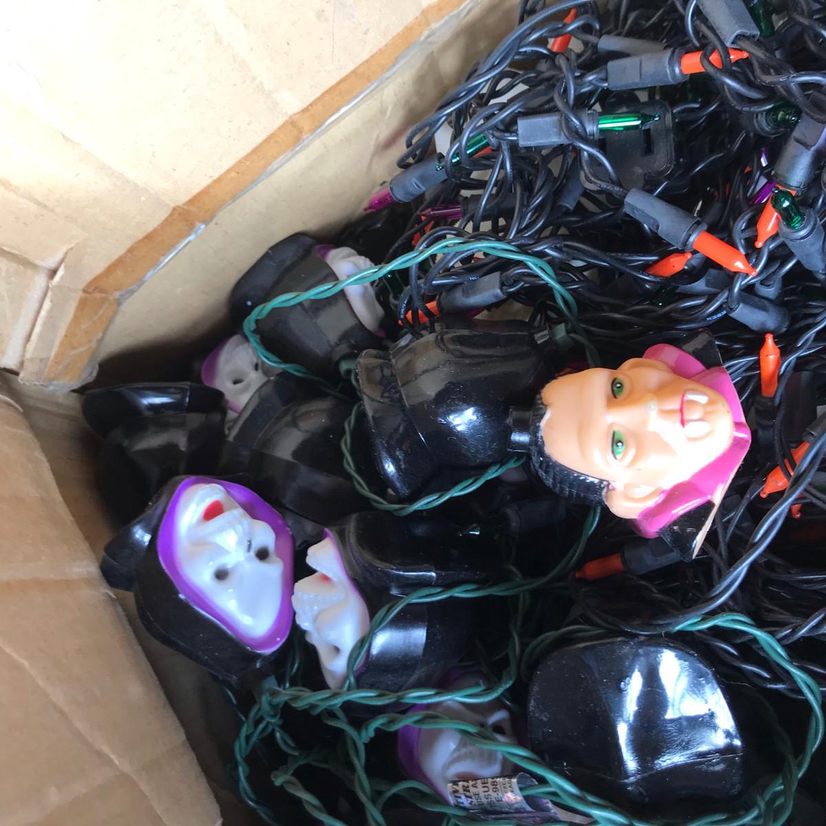 The happy Halloween blow mold set sells for $35 on eBay! There are lots of blow mold covers. String lights untested!