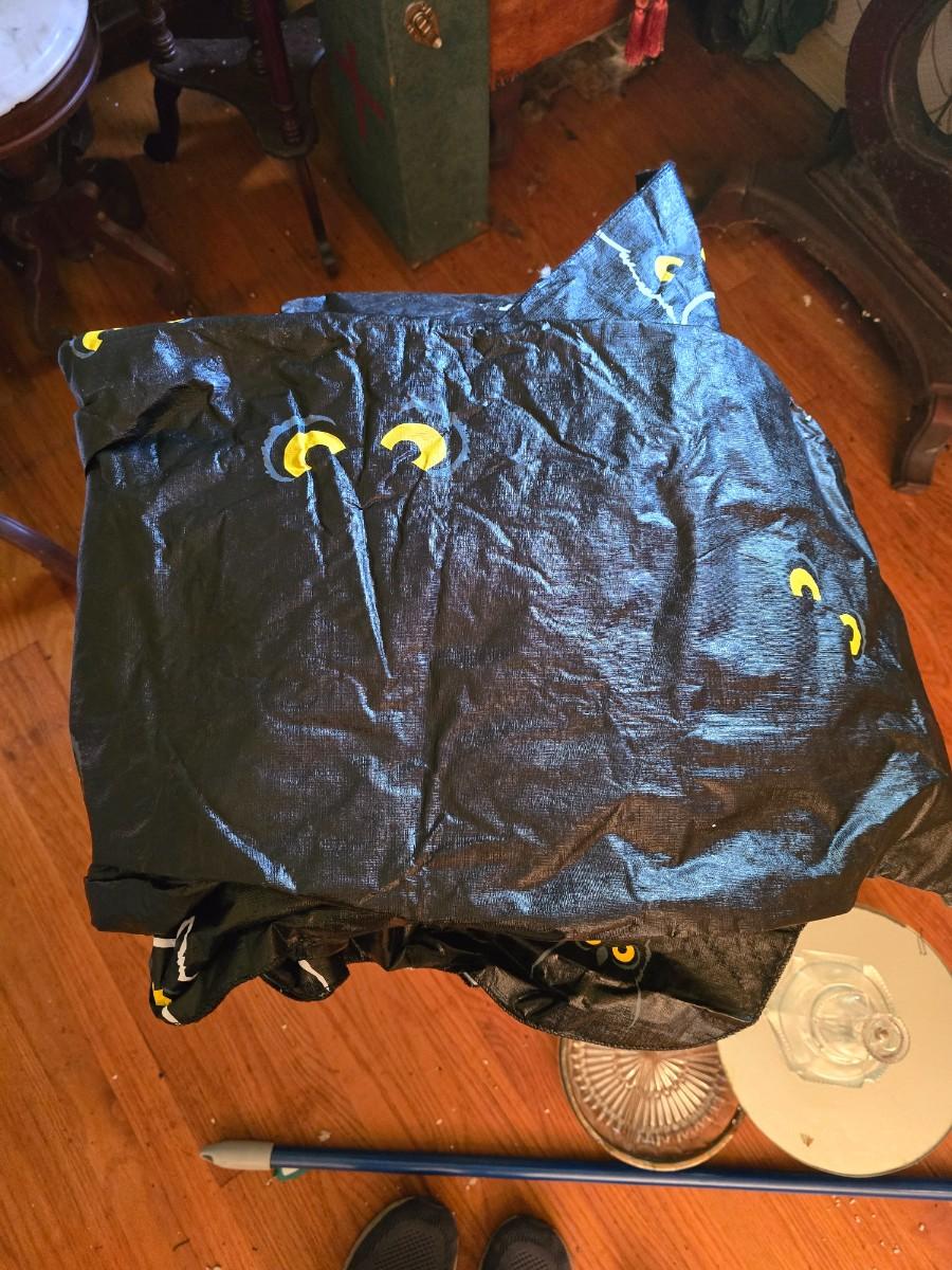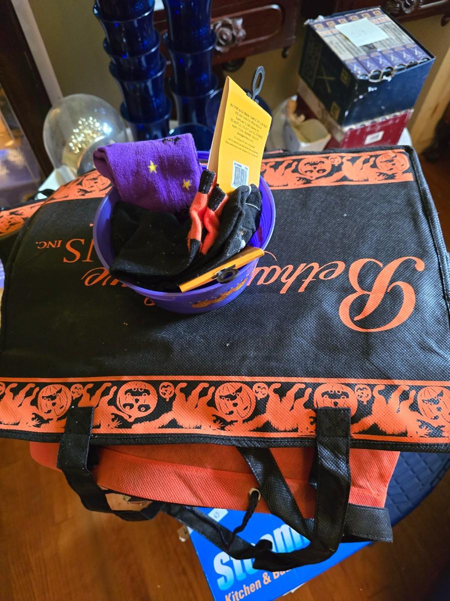Blow up with unknown functionality, table cloth. Signs, bags and socks