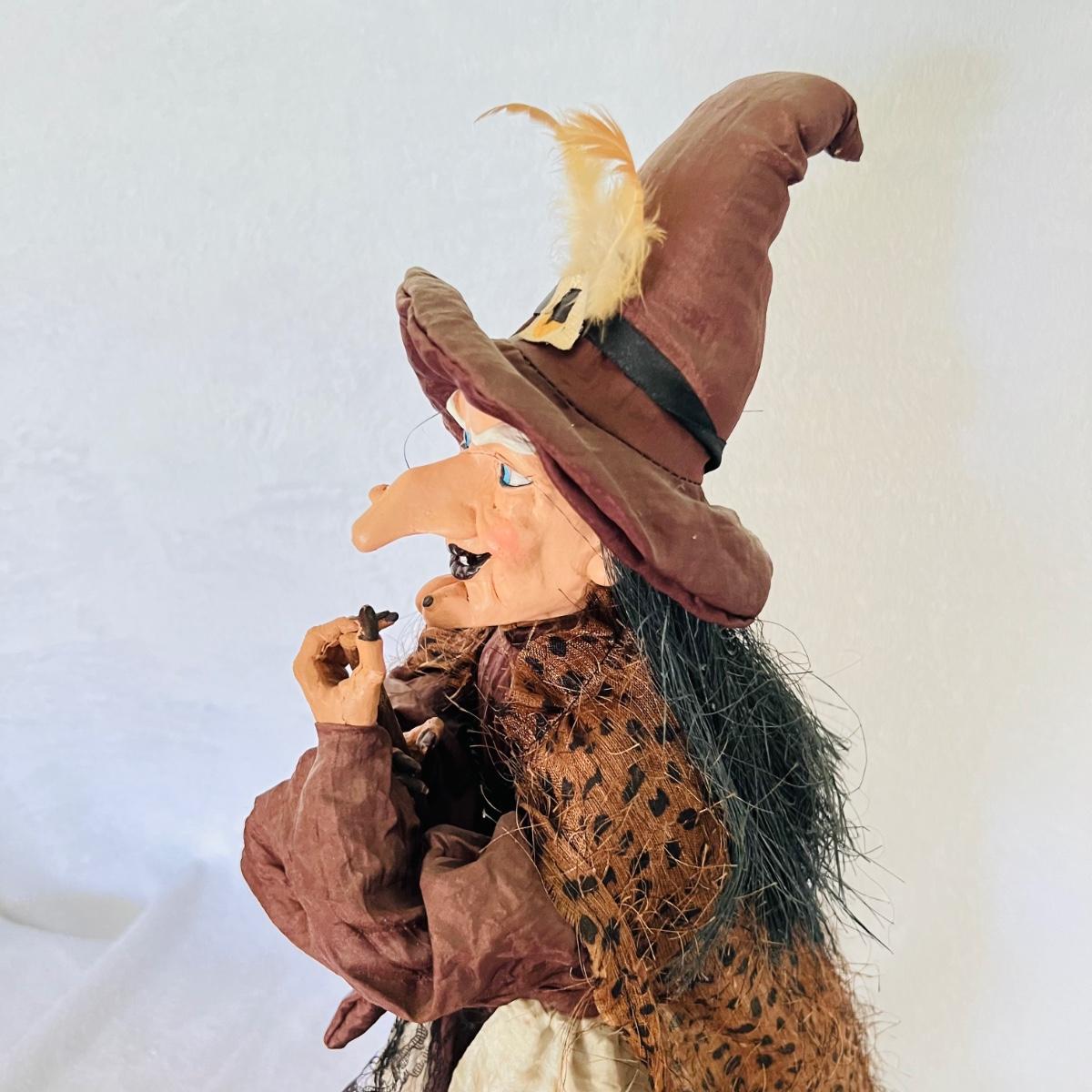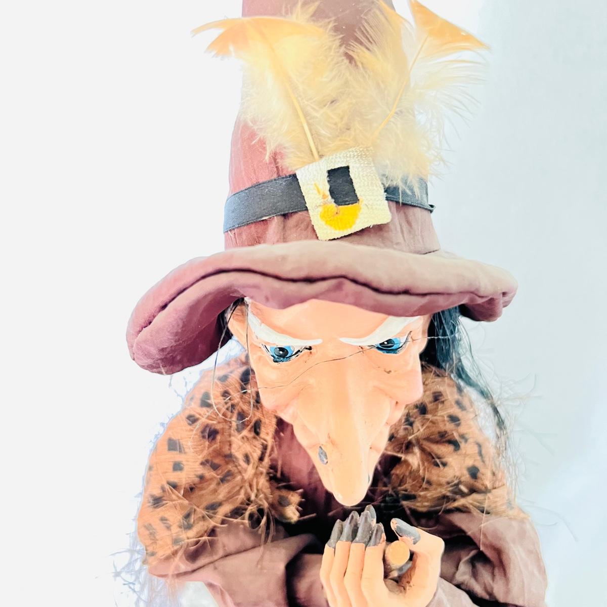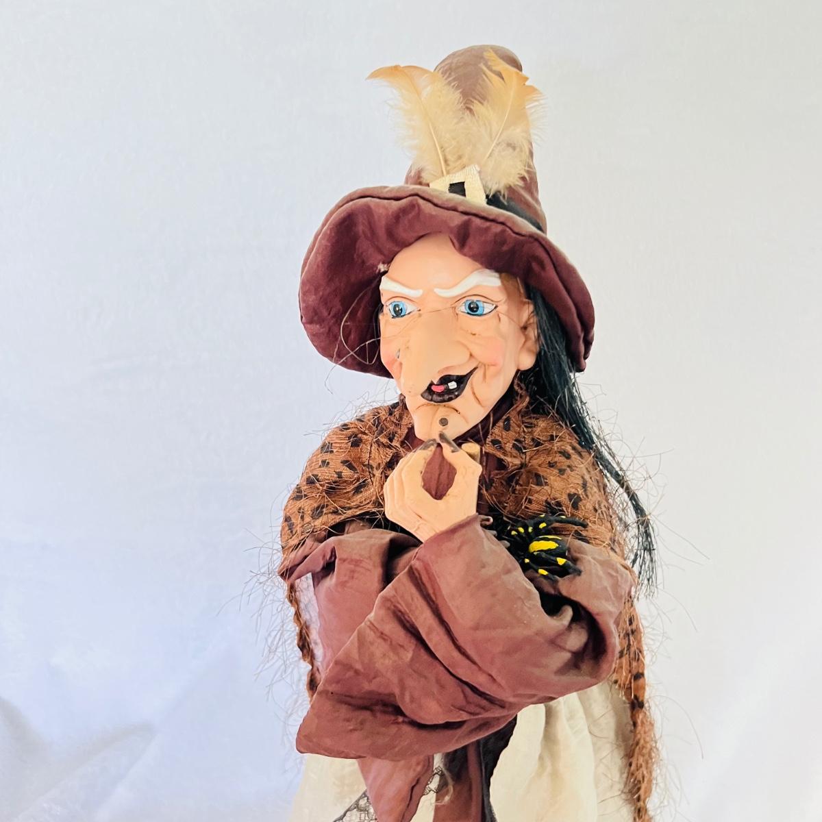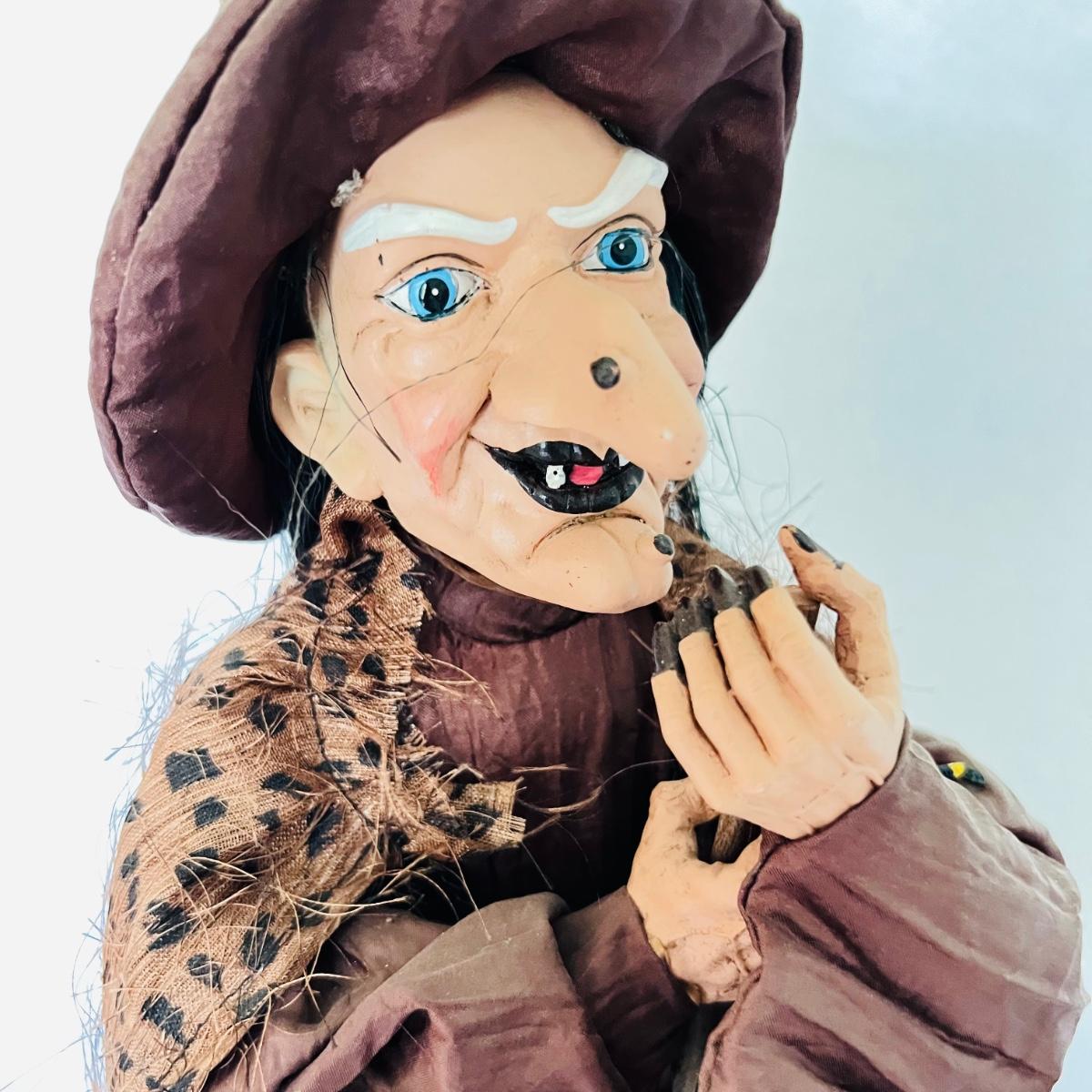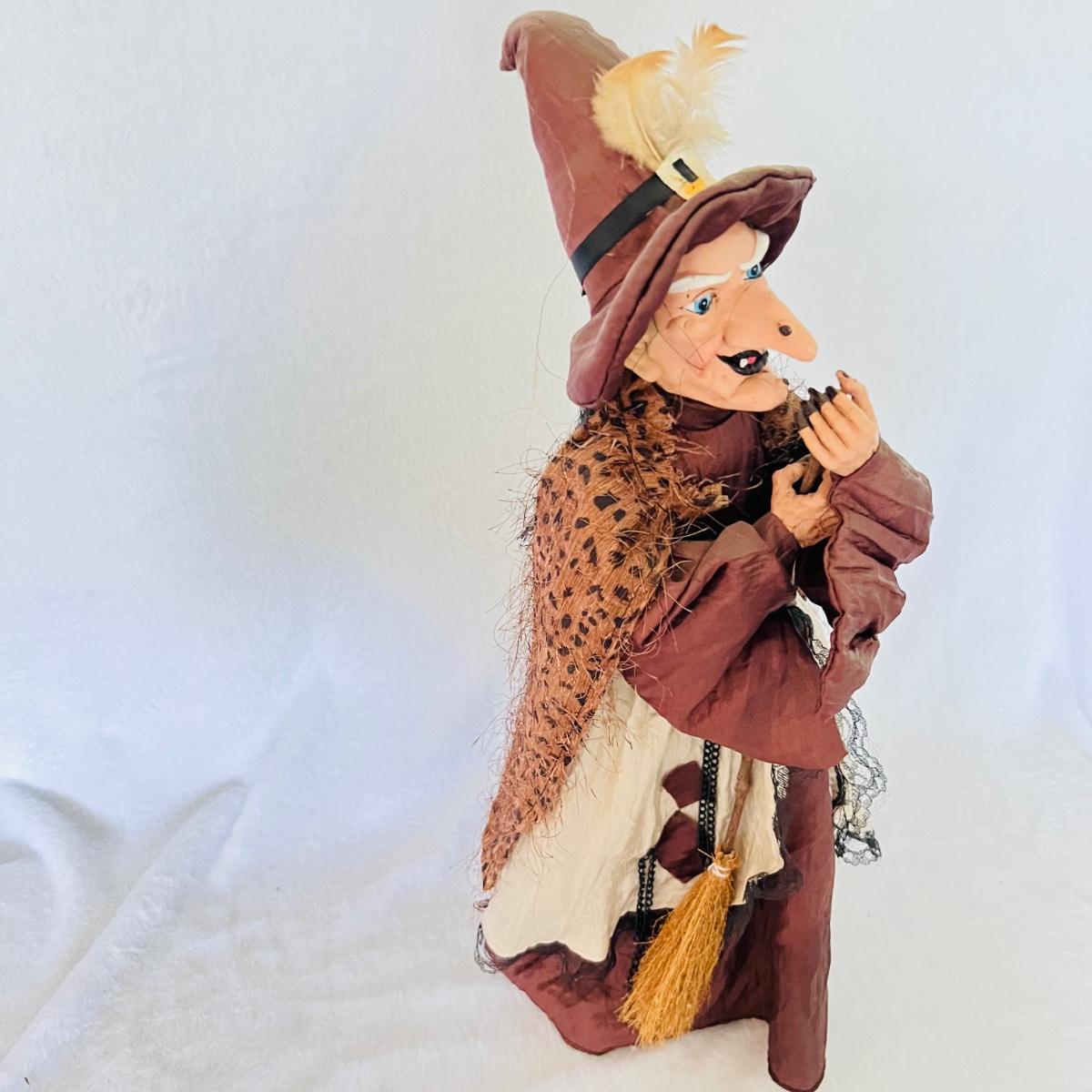 Scary witch has straw hair and broom and measures 17”H. Cute autumn rag doll also included.