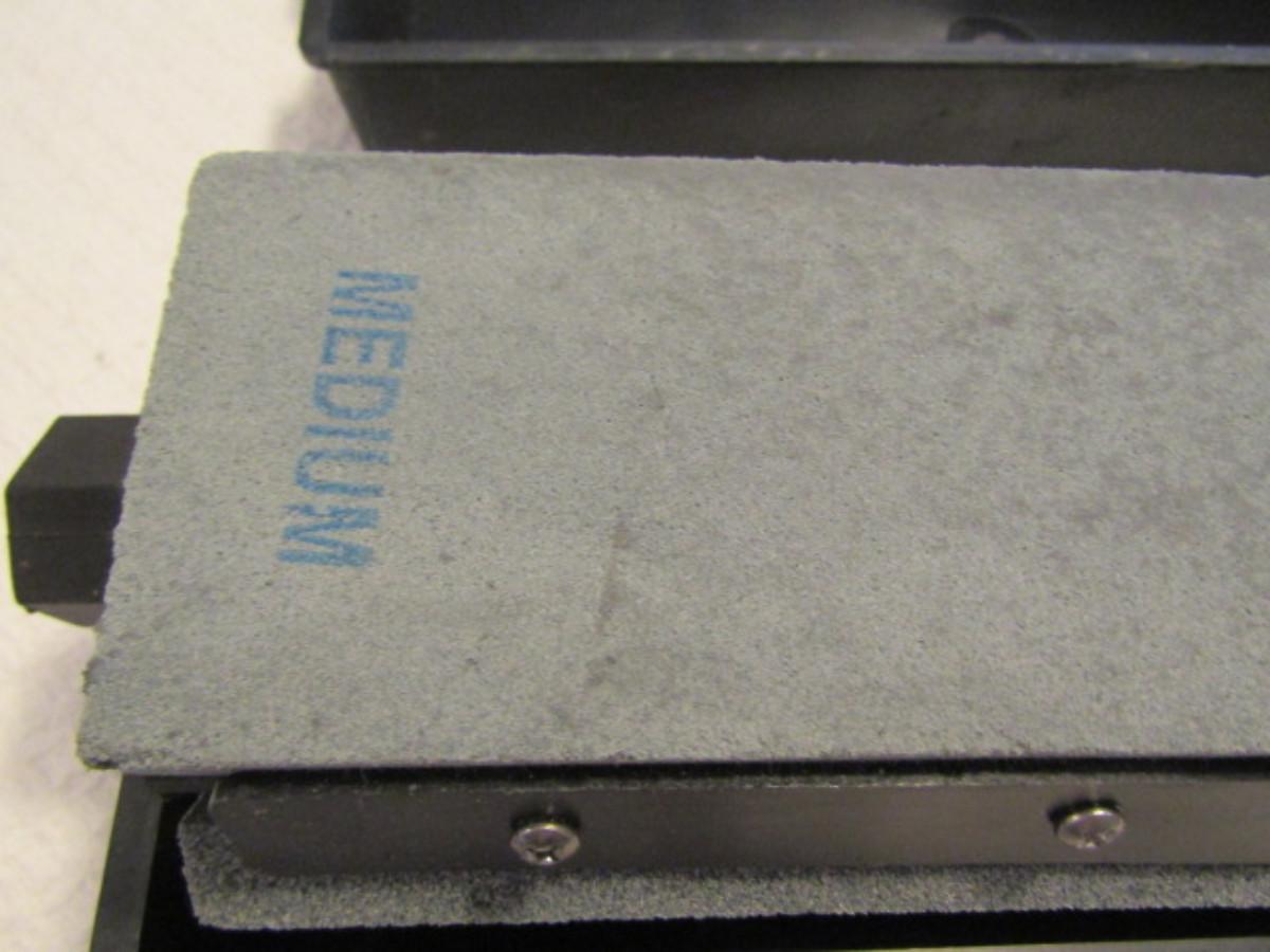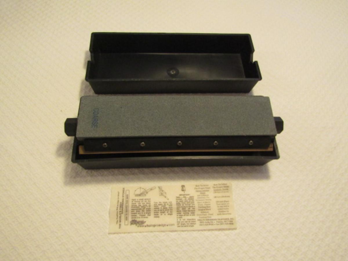 Hall's Pro-Edge Sharpener- 3 Sided Sharpening Stone in Stabilizing Box