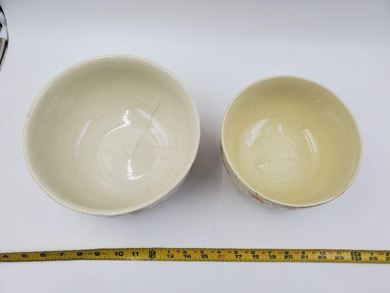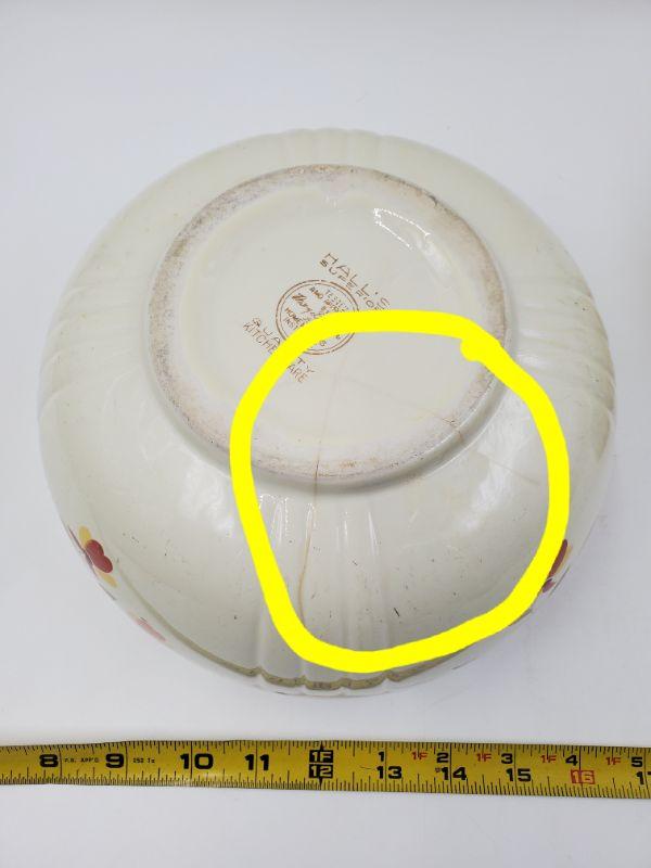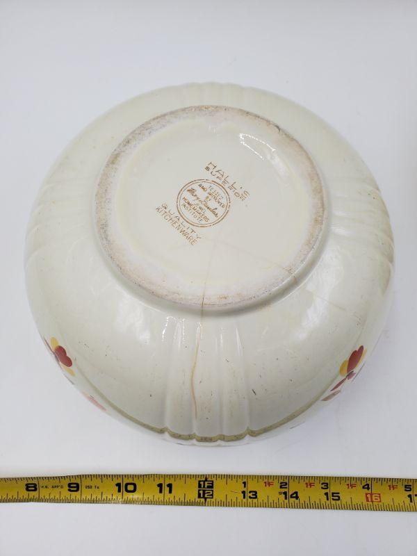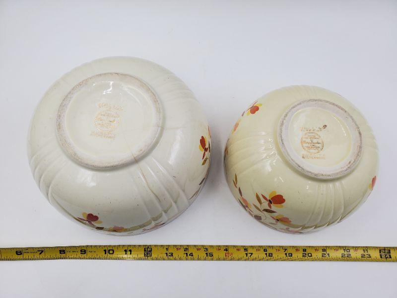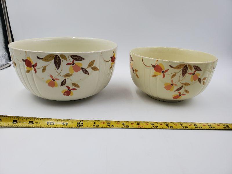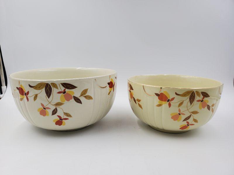Autumn feel Hall's superior quality Kitchenware mixing bowls set of 2, these have been used and shows signs of such. Despite those flaws, these bowls are super cute and have plenty of life left in them!