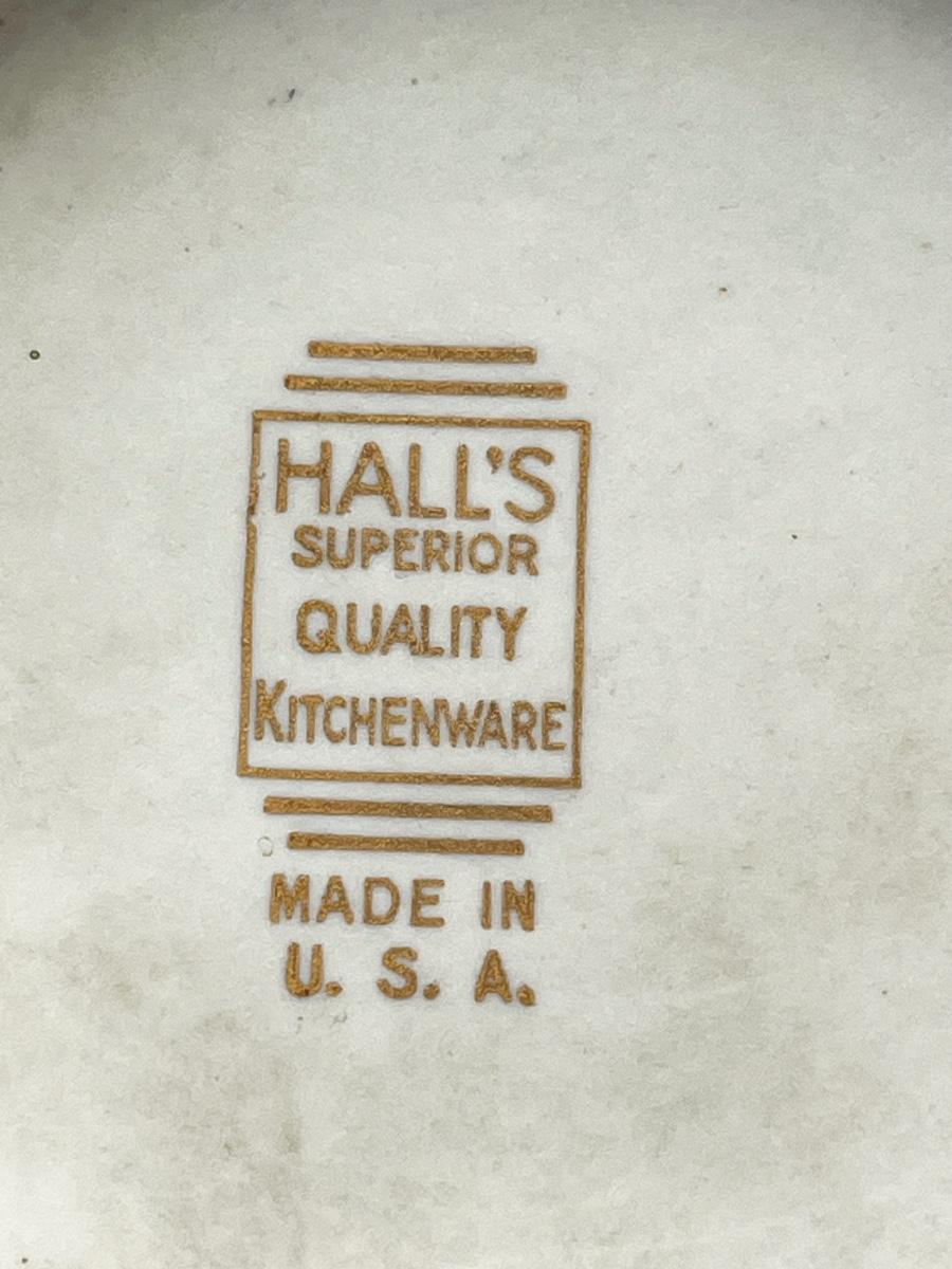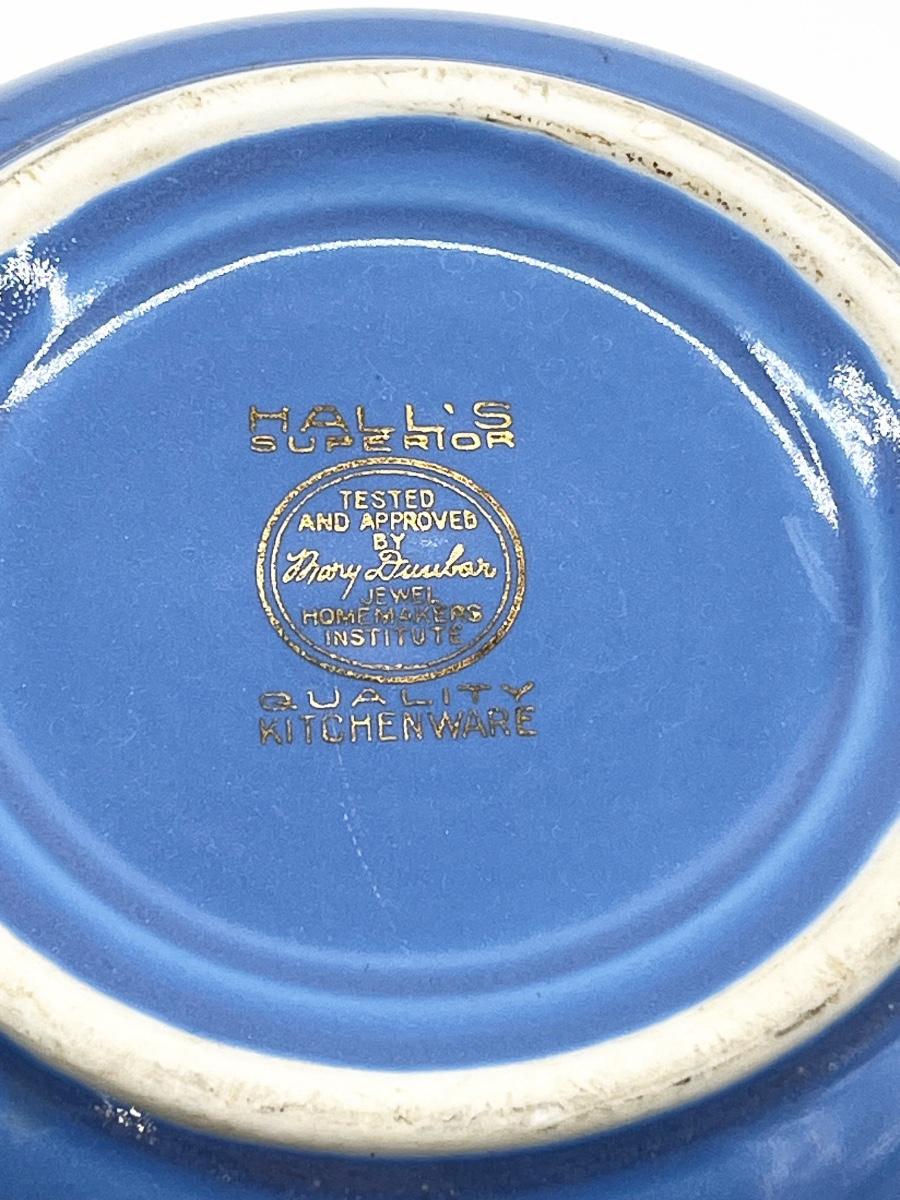 HALL’S SUPERIOR ~ Pair (2) ~ Blue Morning Glory Mixing Bowl & Red Round Ball Pitcher