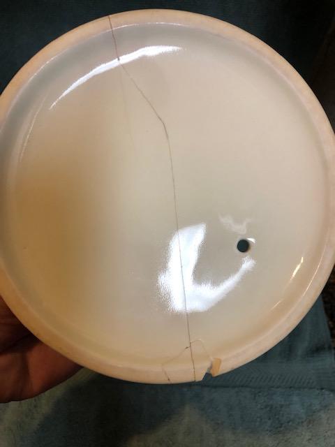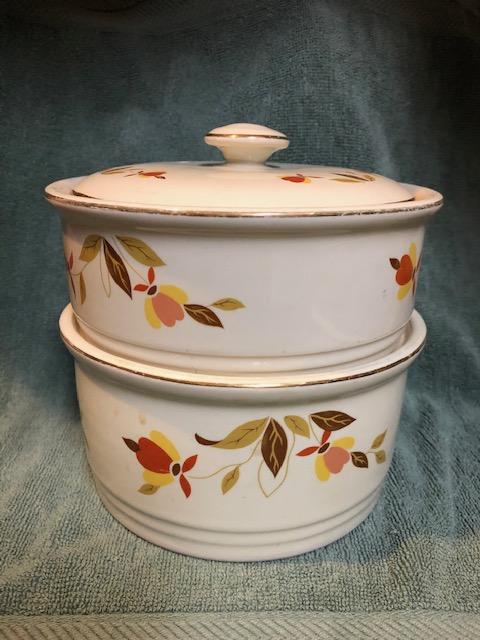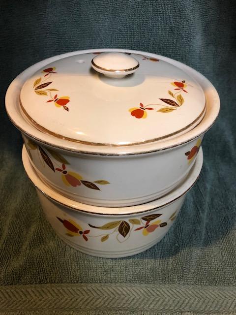 Two pieces Includes the Large (3 3/8” deep) and the Medium dish(2 1/2”) Lid is cracked and chipped.