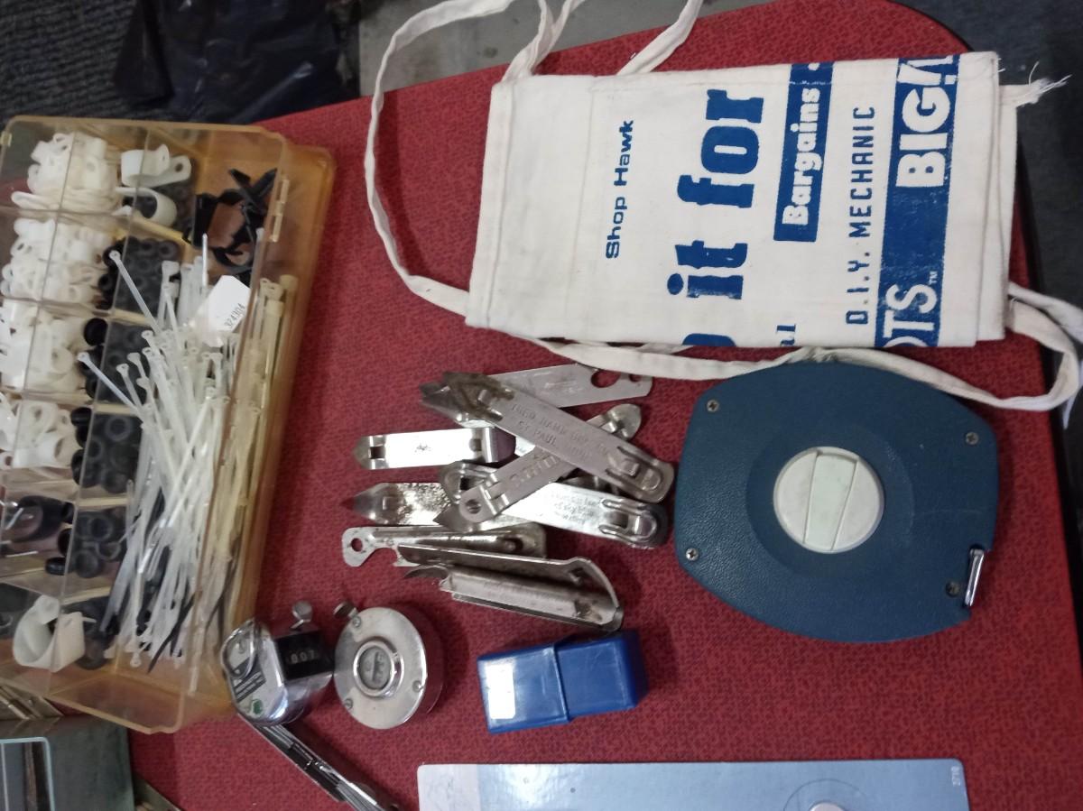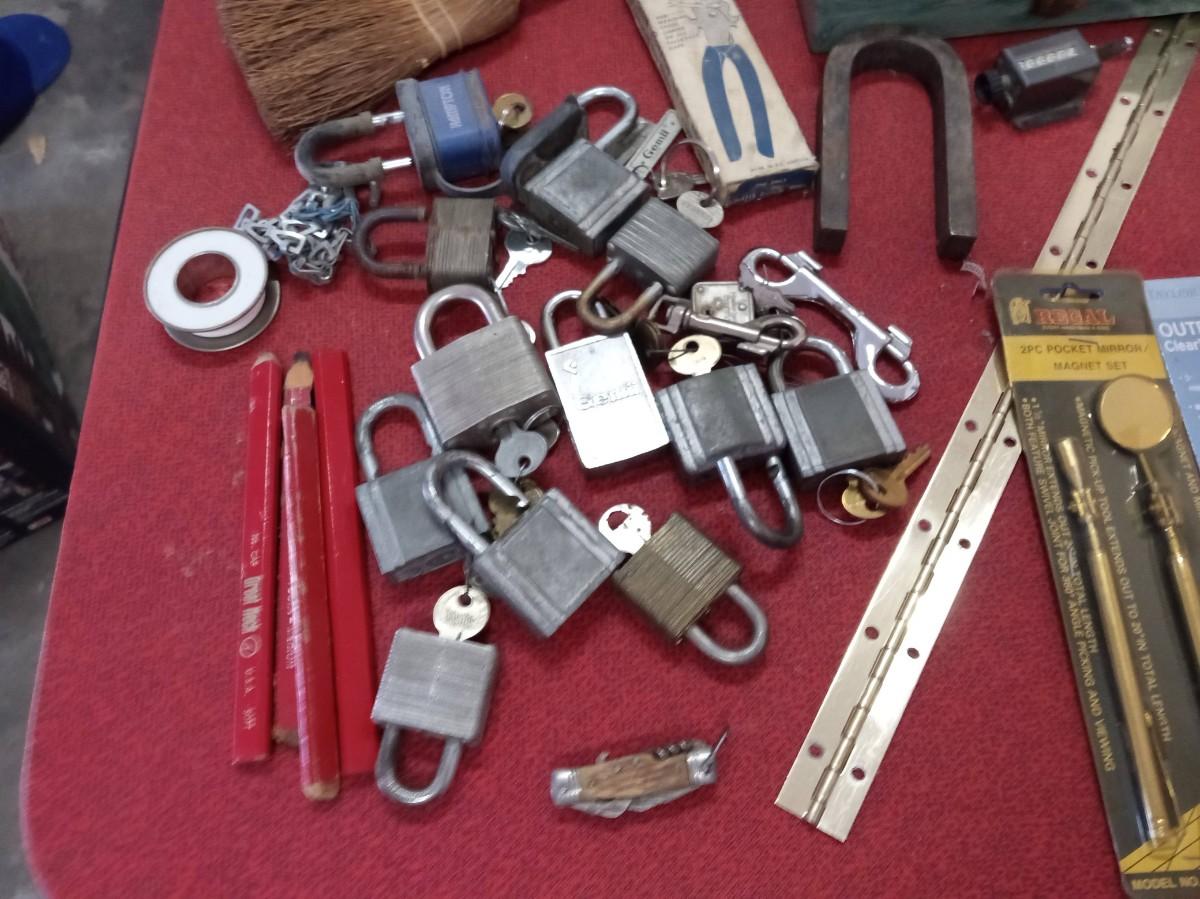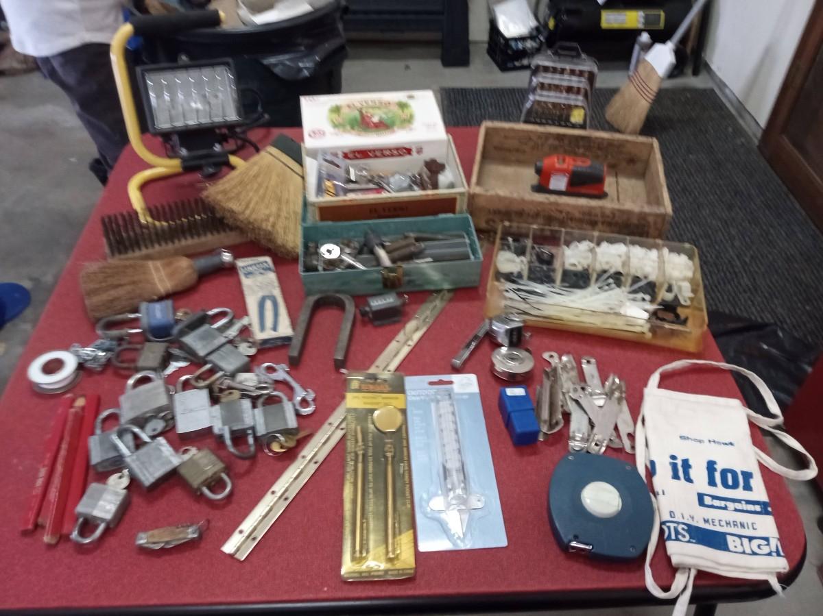HALOGEN WORK LIGHT, PADLOCKS W/KEYS, ZIP TIES AND MORE
