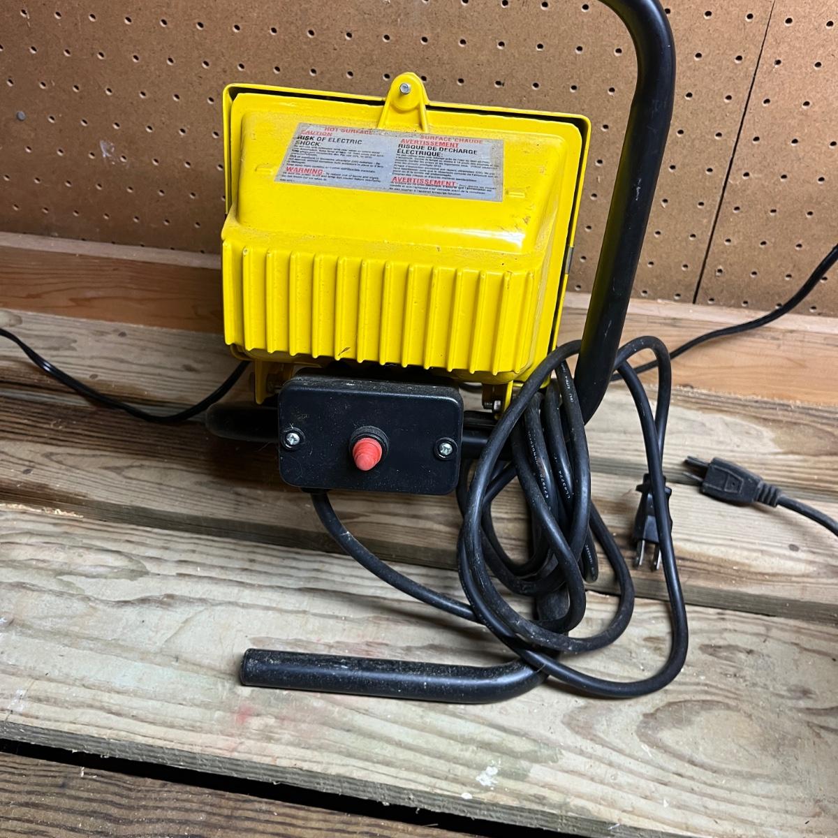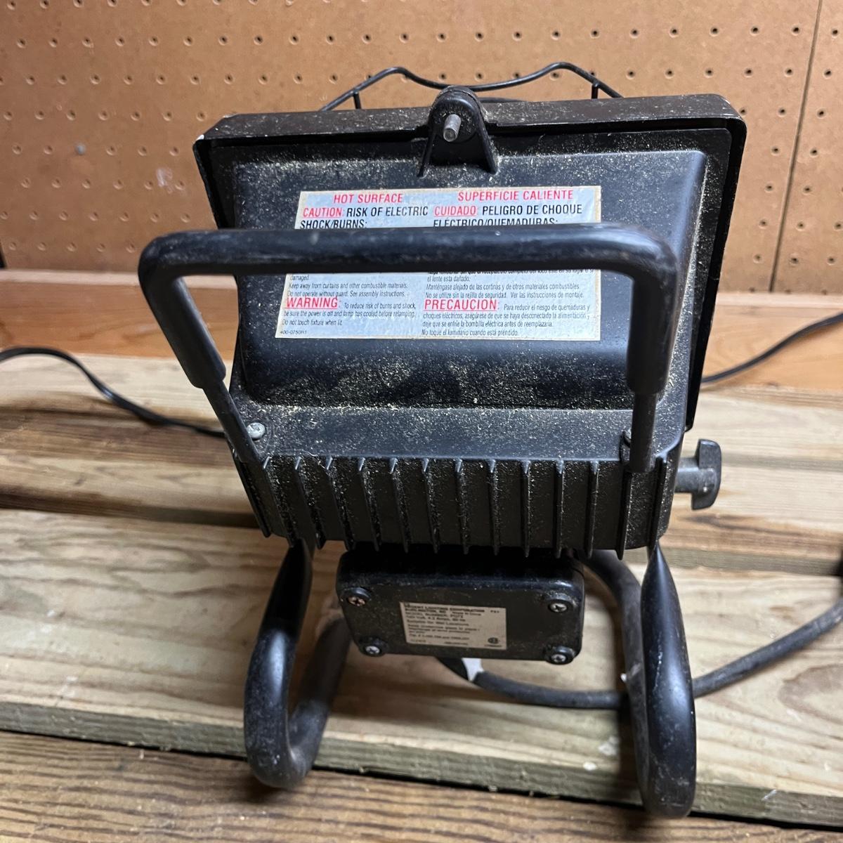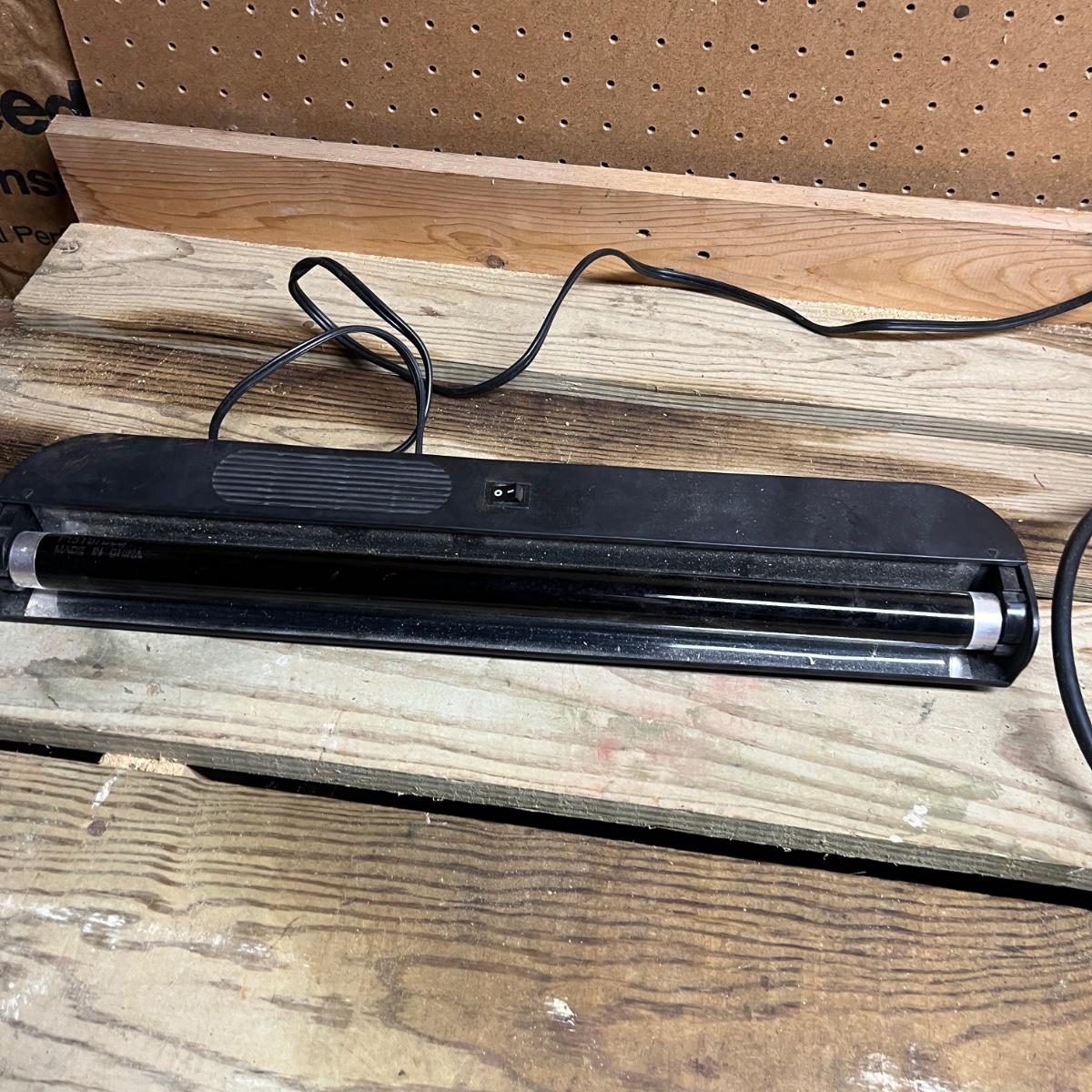 Lot includes four halogen work lights, two spotlights and a Fluorescent black light that measures 18” x 3” x 1.75”H. All lights powered except one halogen and one spotlight is 12v and was not tested.