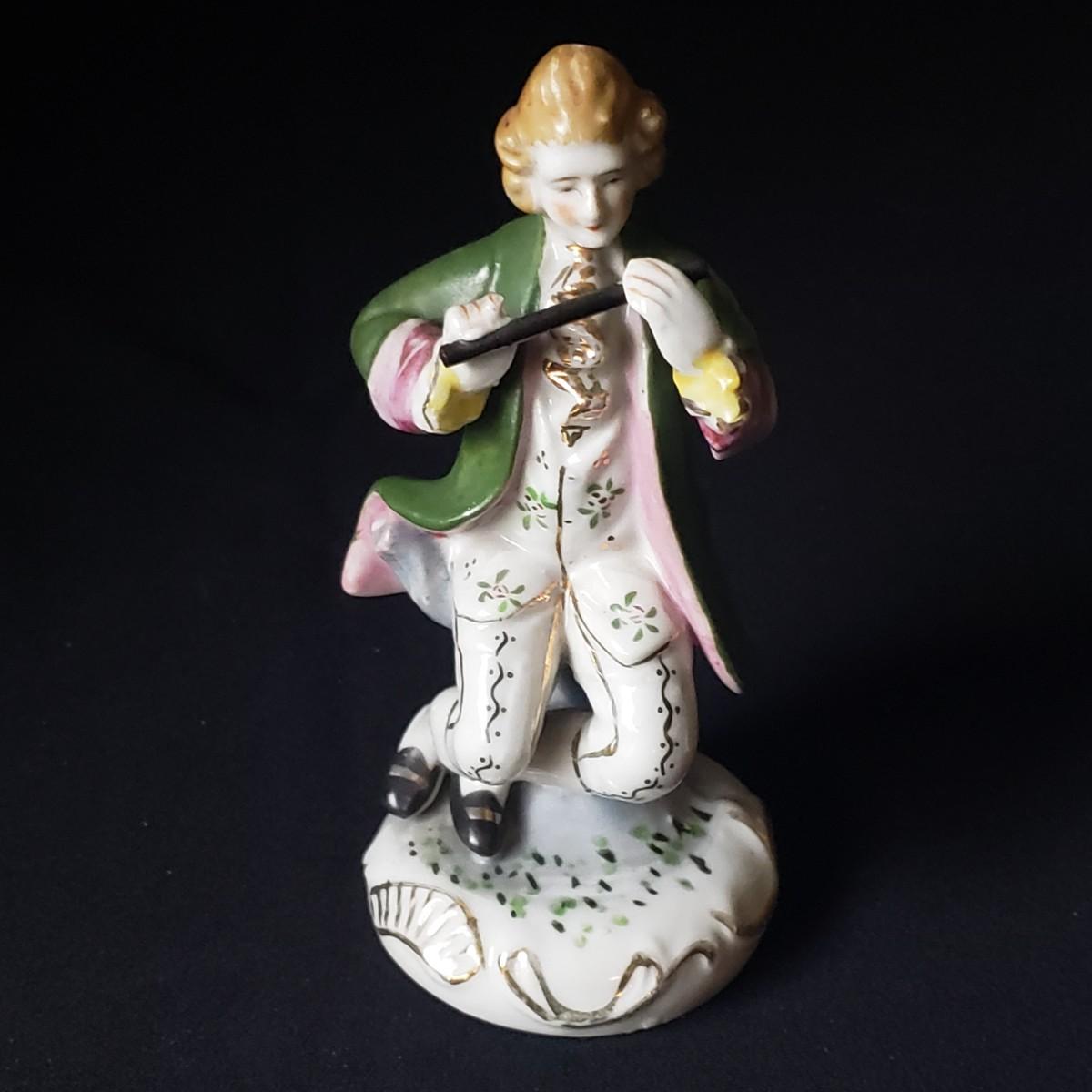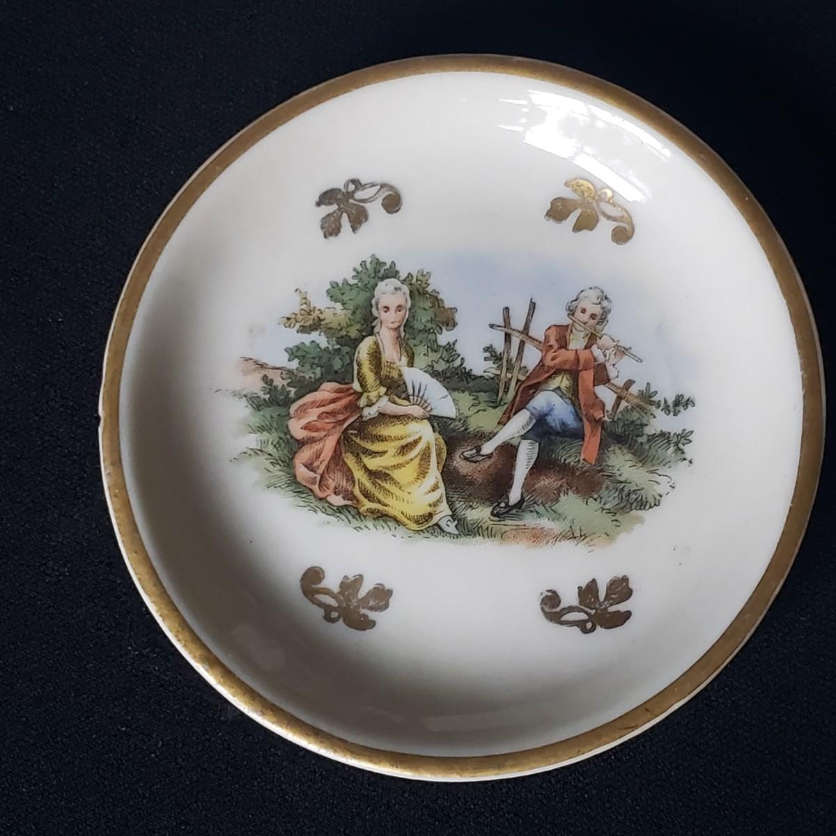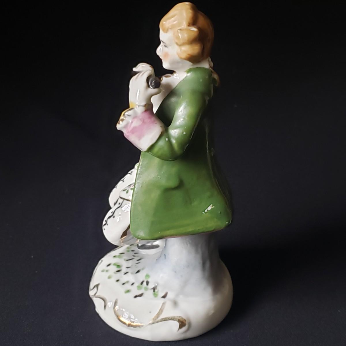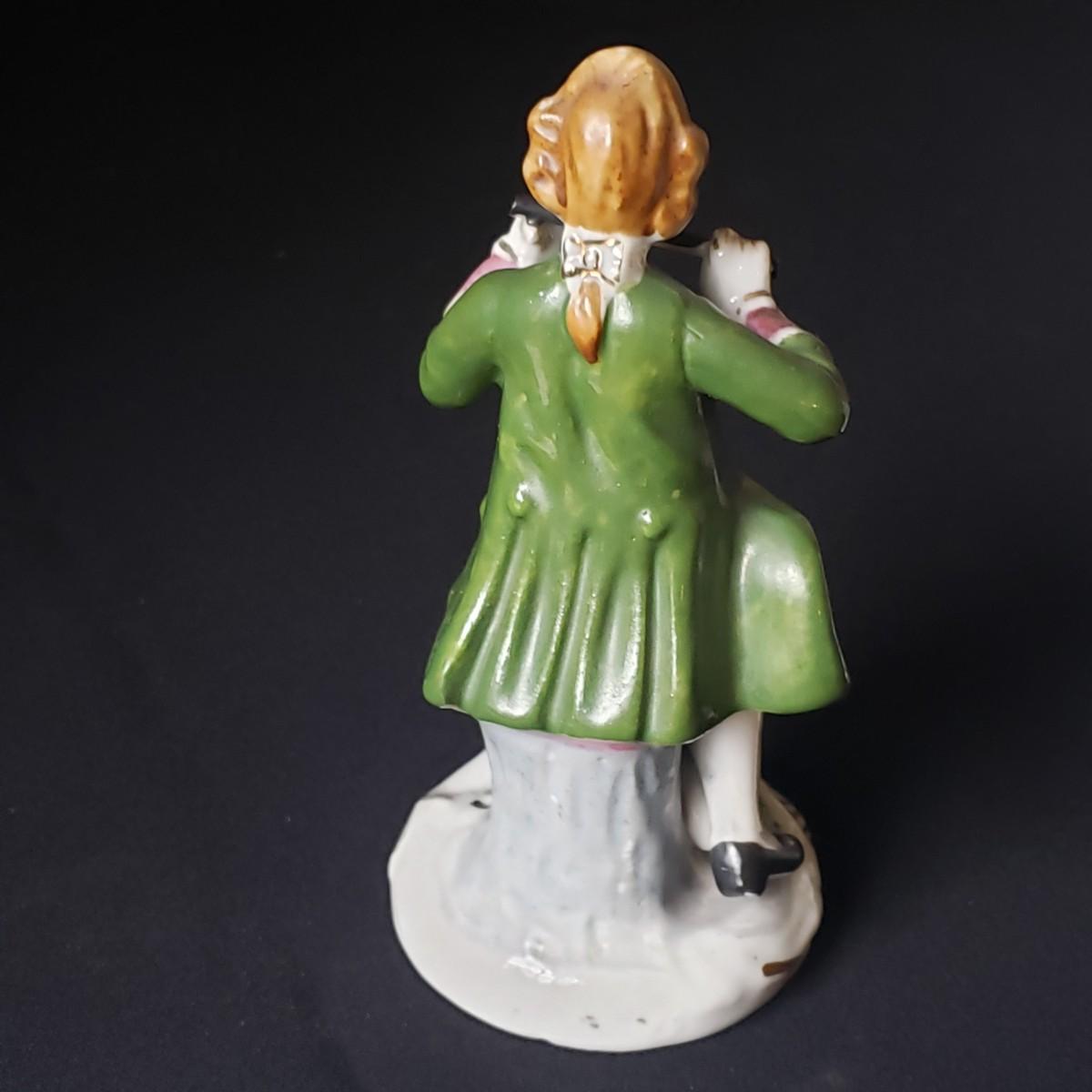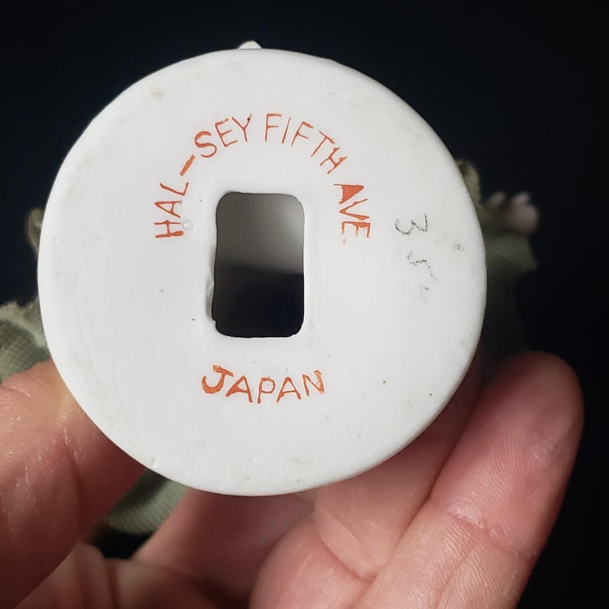 This three-piece lot features two porcelain figurines and a small dish. The Hey-Sey ballerina has a cloth crinoline atop her porcelain figure. The figurine measures 3" x 6"H. The "Made in Occupied Japan" figurine appears to be blemish free.